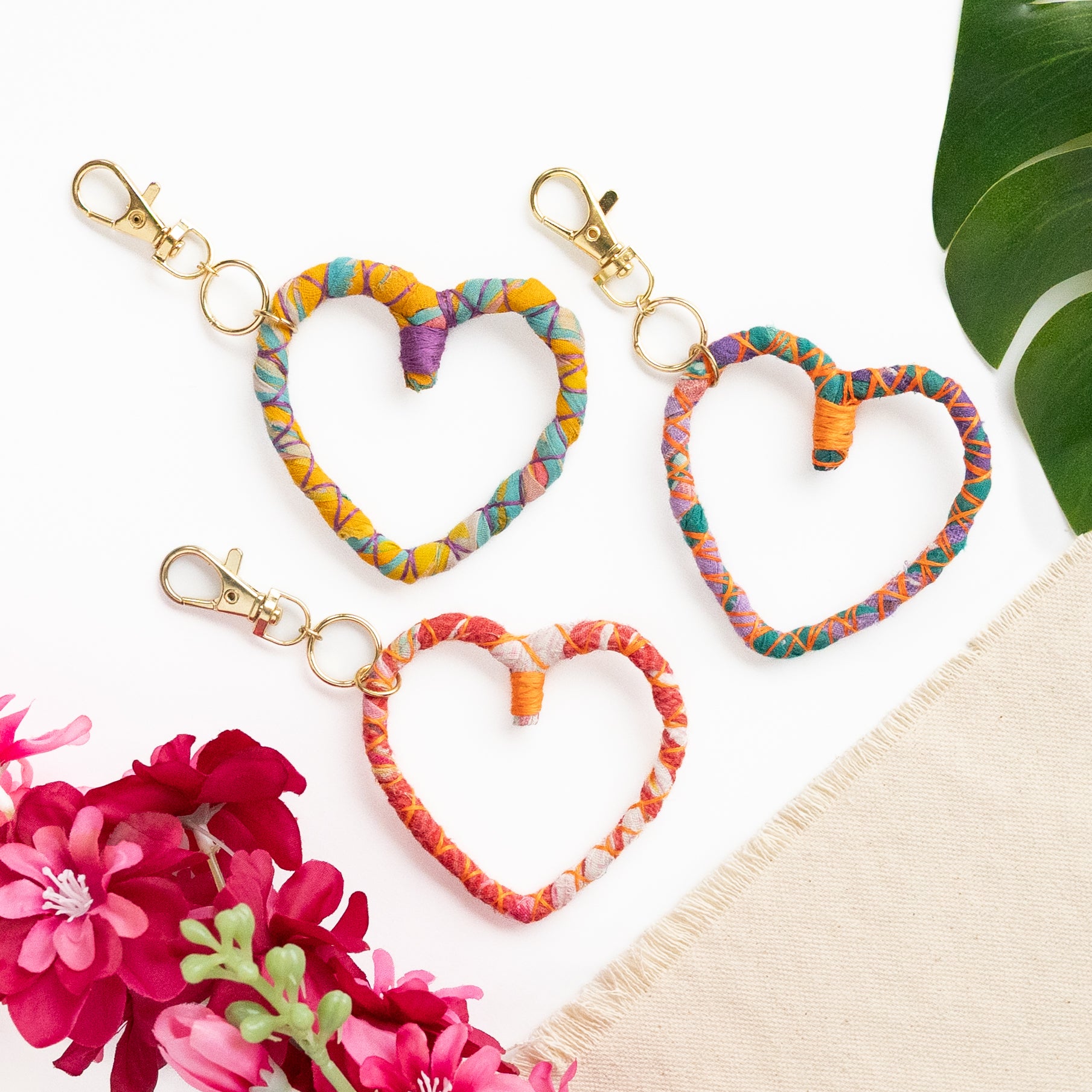 Kantha Heart Keychain Clip