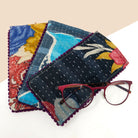 Functional and sustainable, this eyeglass case will keep your shades safe and stylish! Handcrafted from upcycled Kantha materials, it's adorned with a picot trim. Each case is unique, made from repurposed Sari fabric with its own special tones and designs.