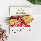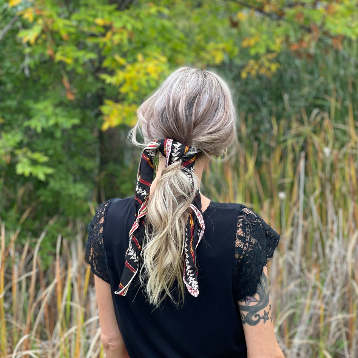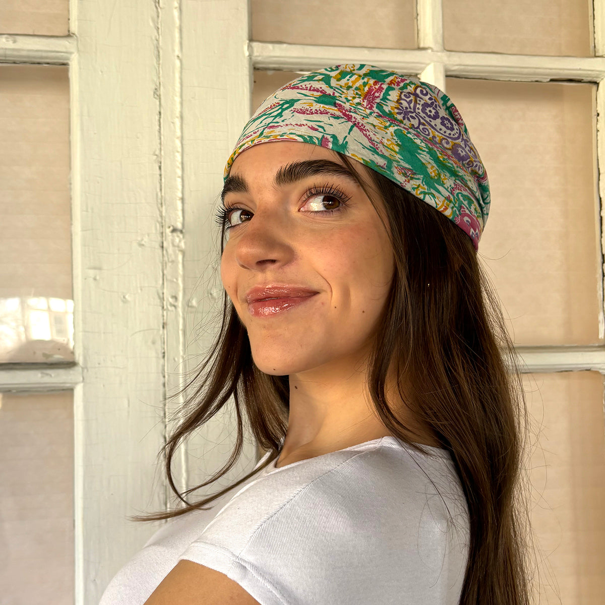Select a specific colorway (numbered), or select the Surprise Me! option to receive a random color and pattern, not pictured. Each bandana is handmade using upcycled textiles, so each piece is unique!