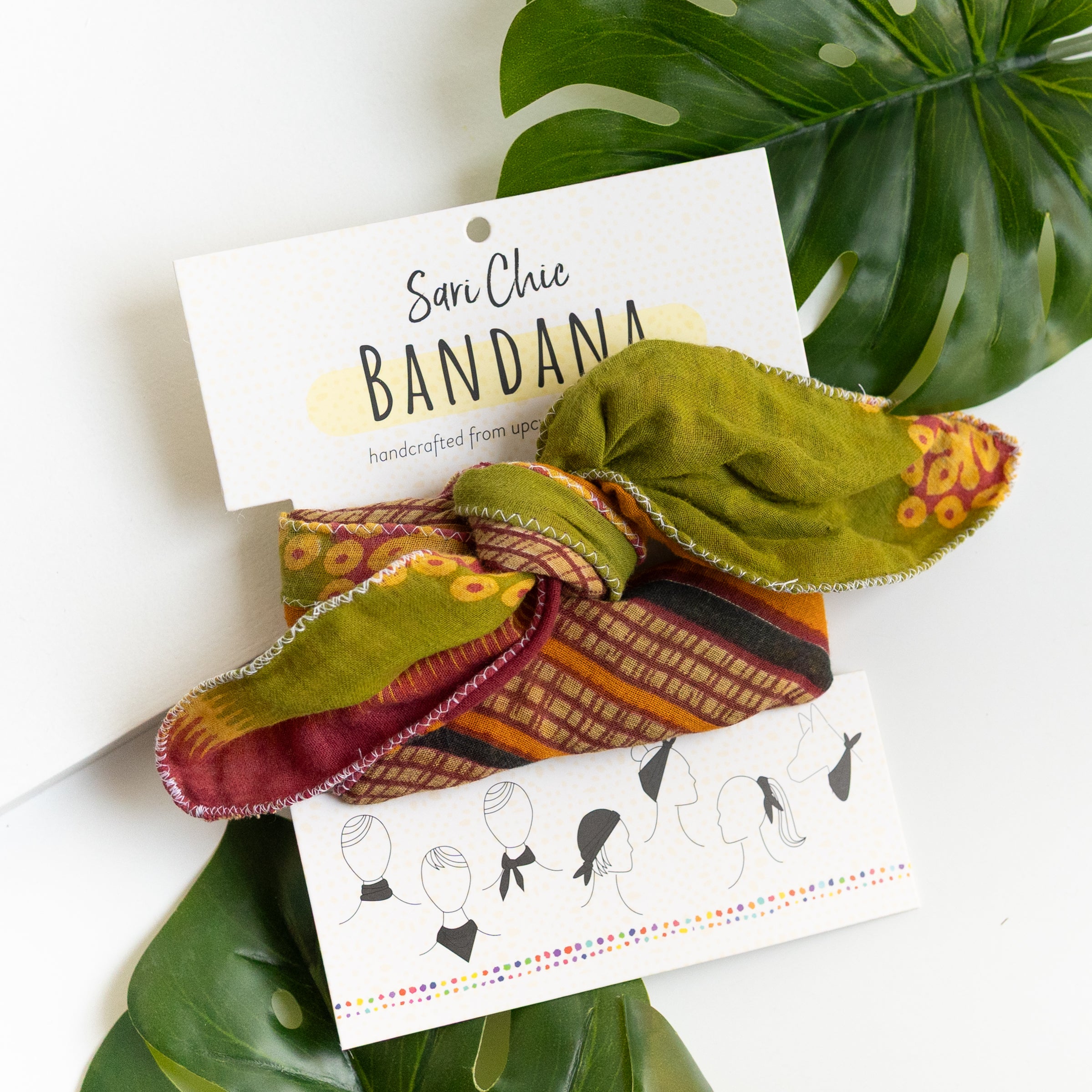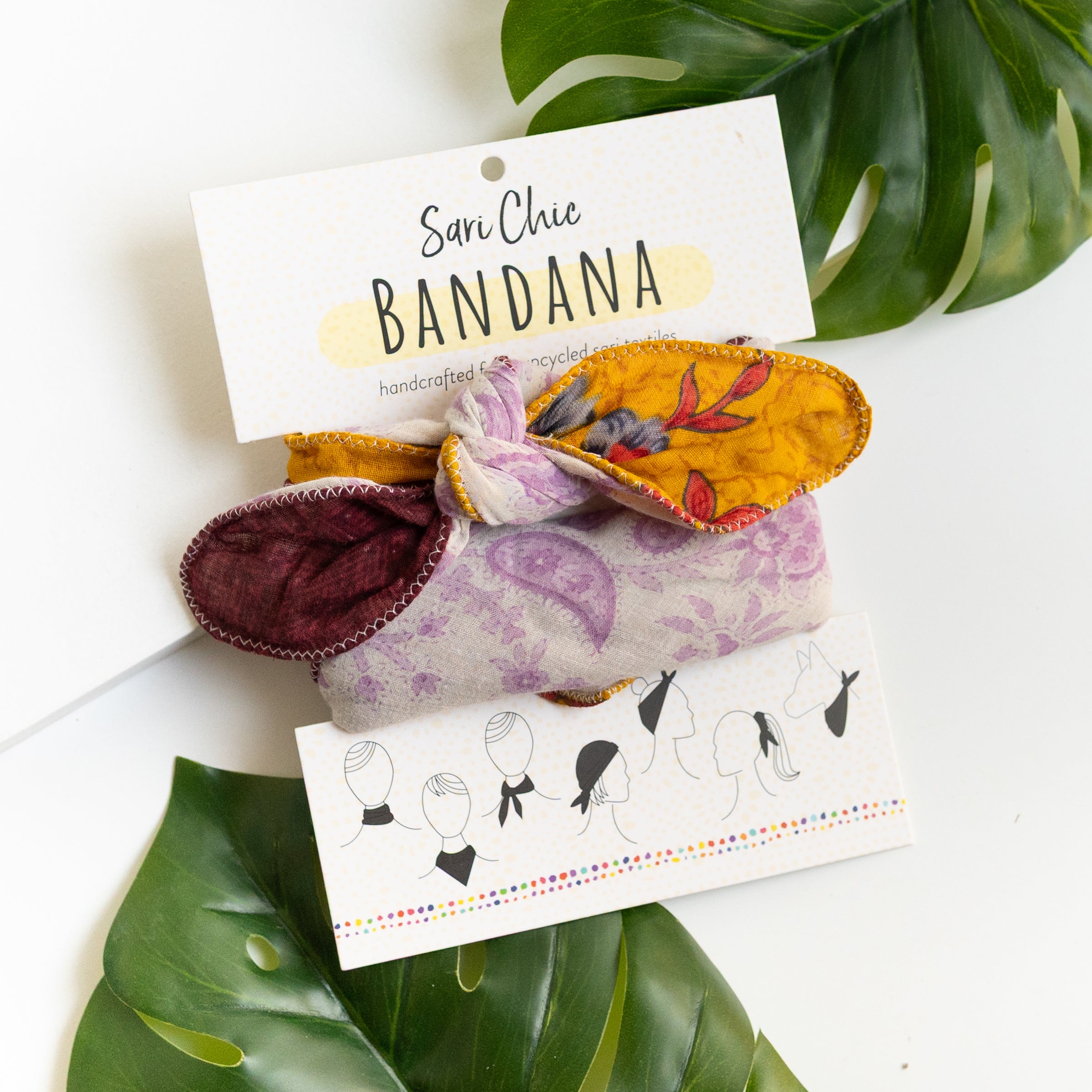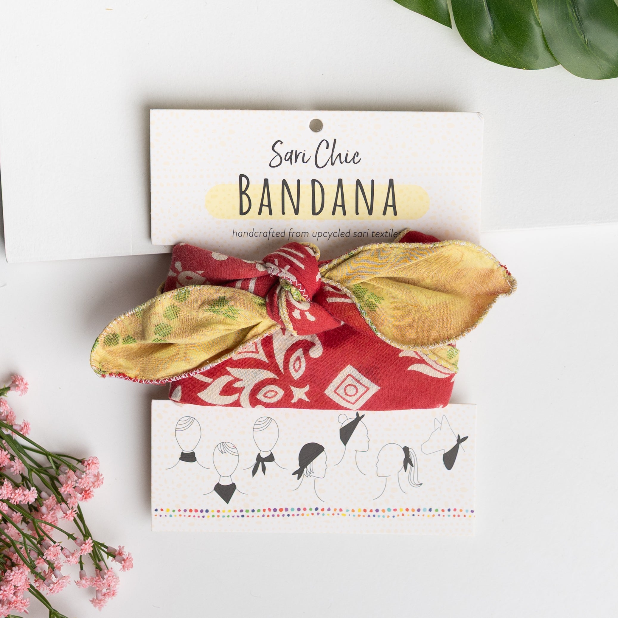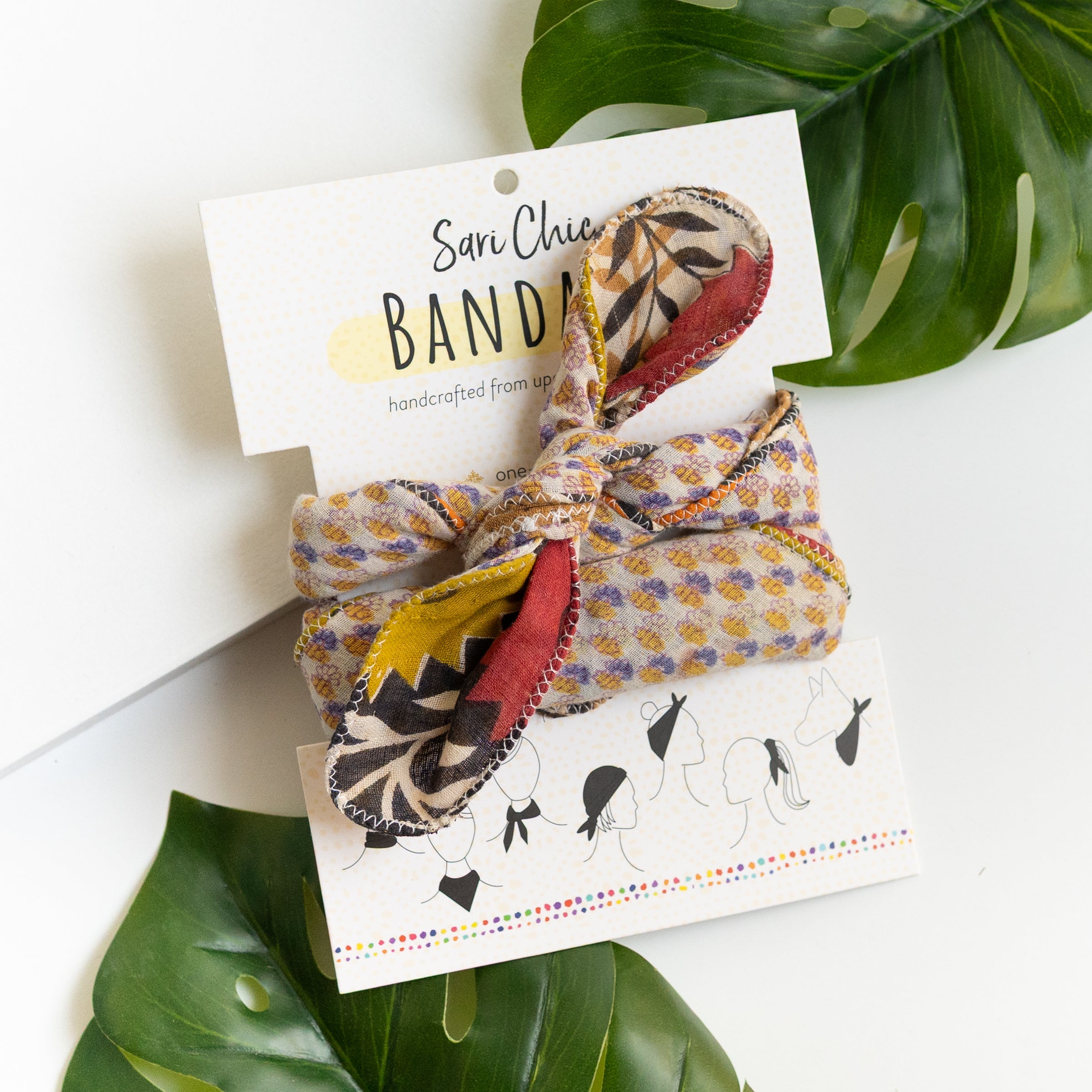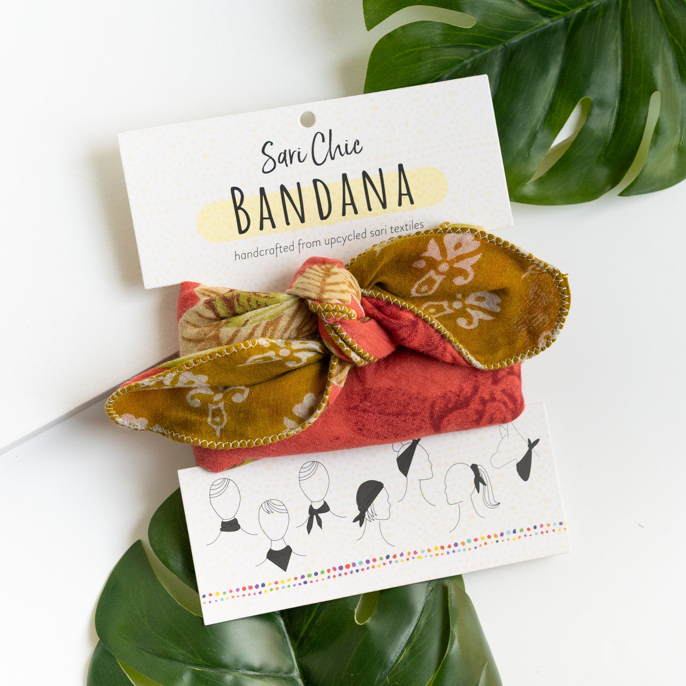 A unique, eco-friendly spin on a timeless design, this Sari Chic Bandana is crafted from repurposed sari fabric and can add just the right amount of pizazz to any ensemble. Style it as a head scarf, around your neck, or even on your four-legged pal!