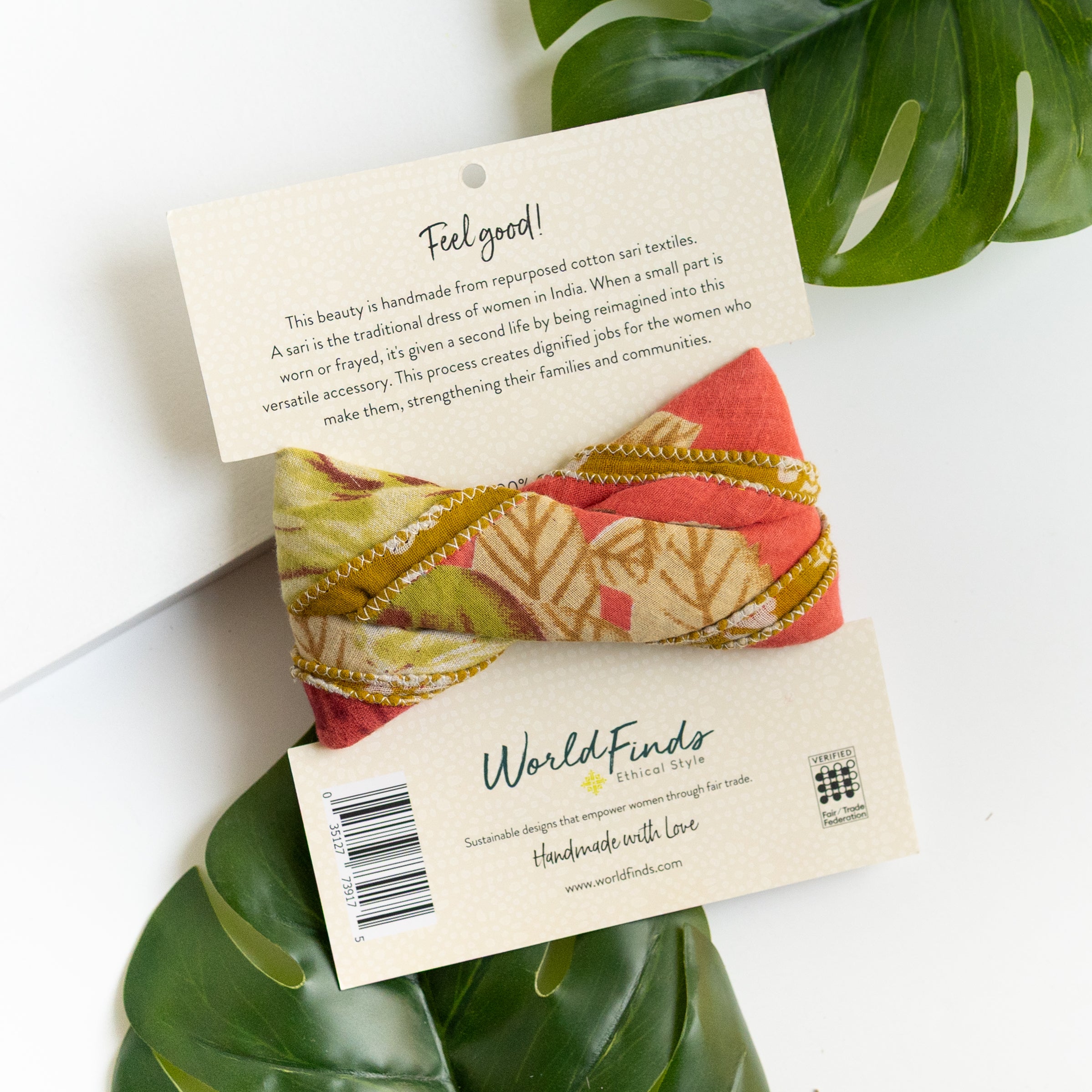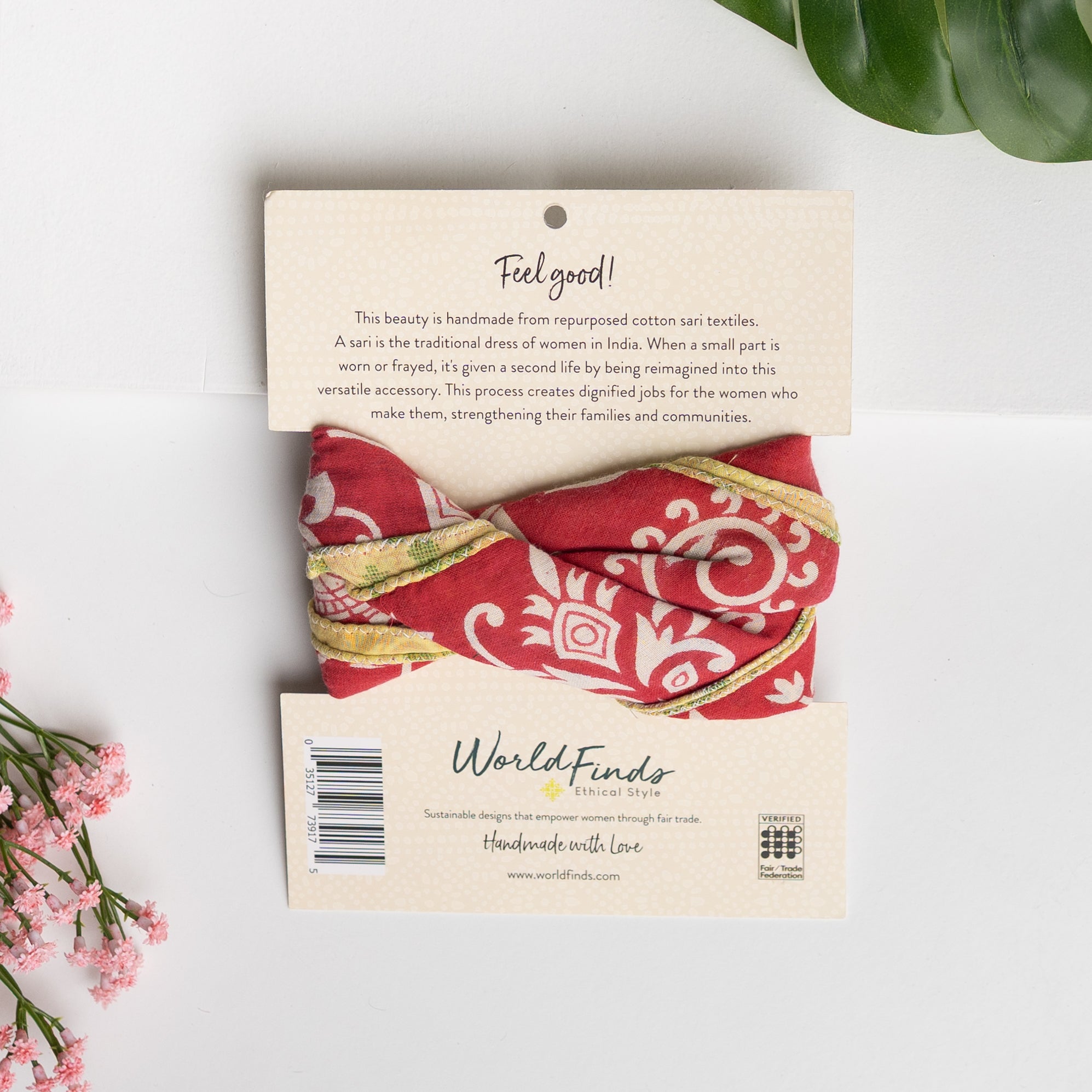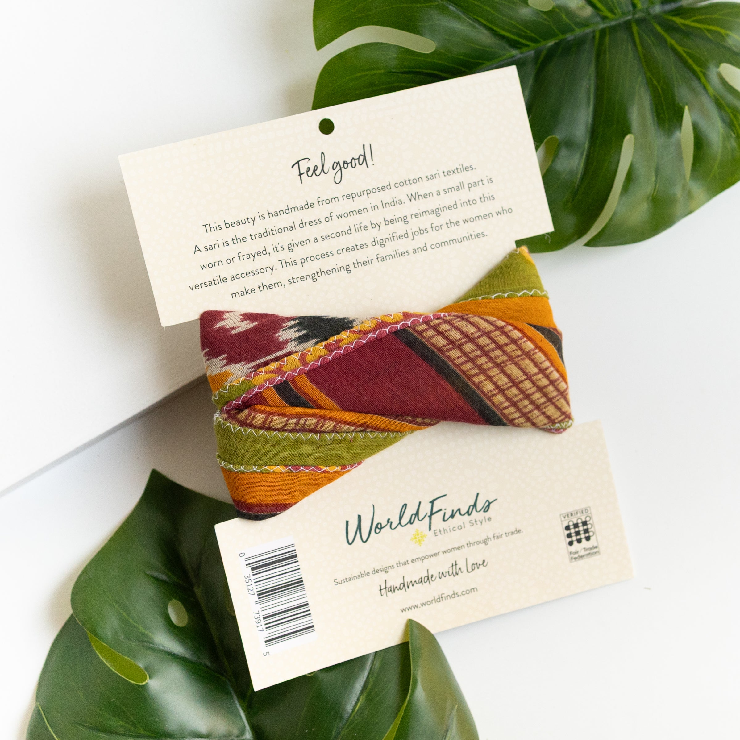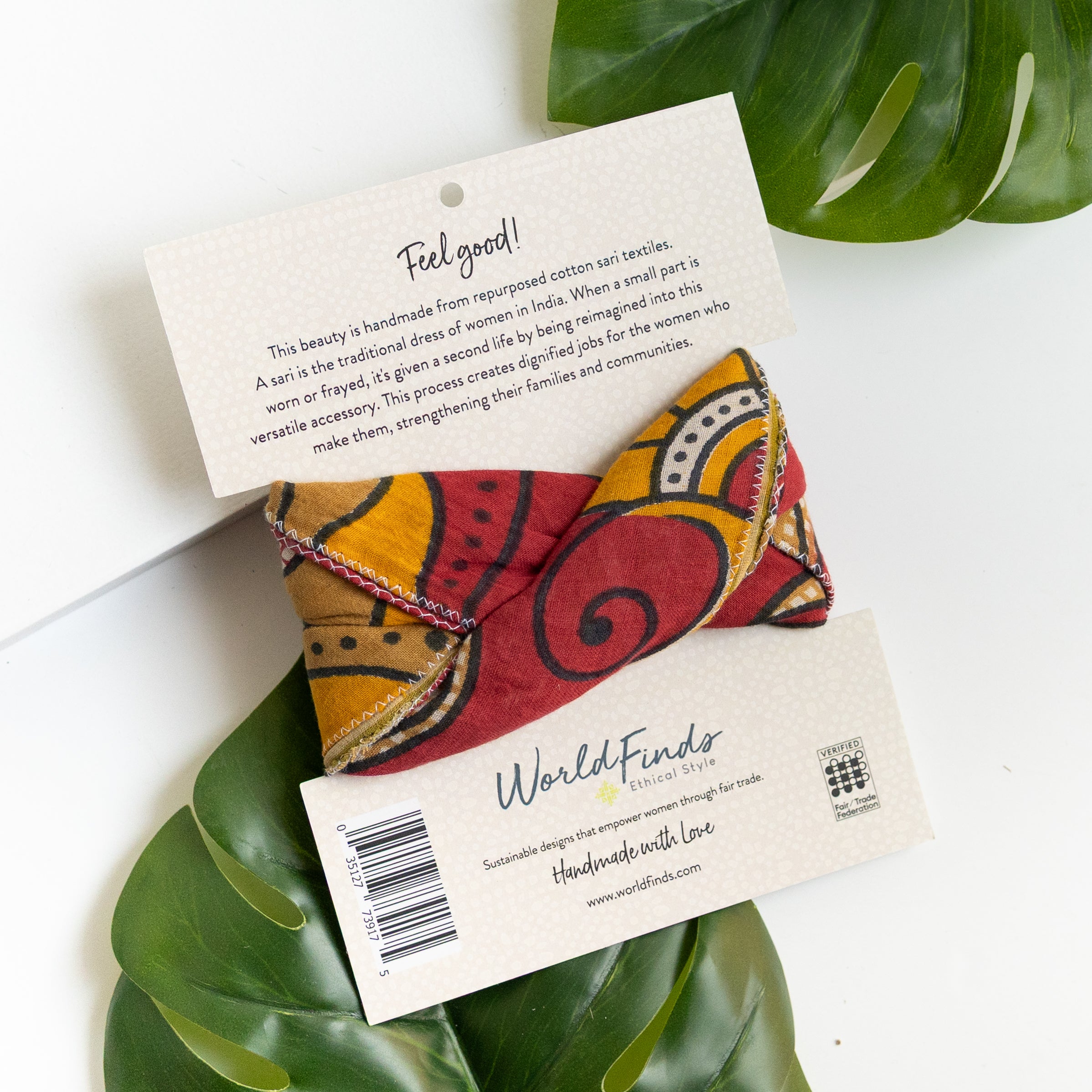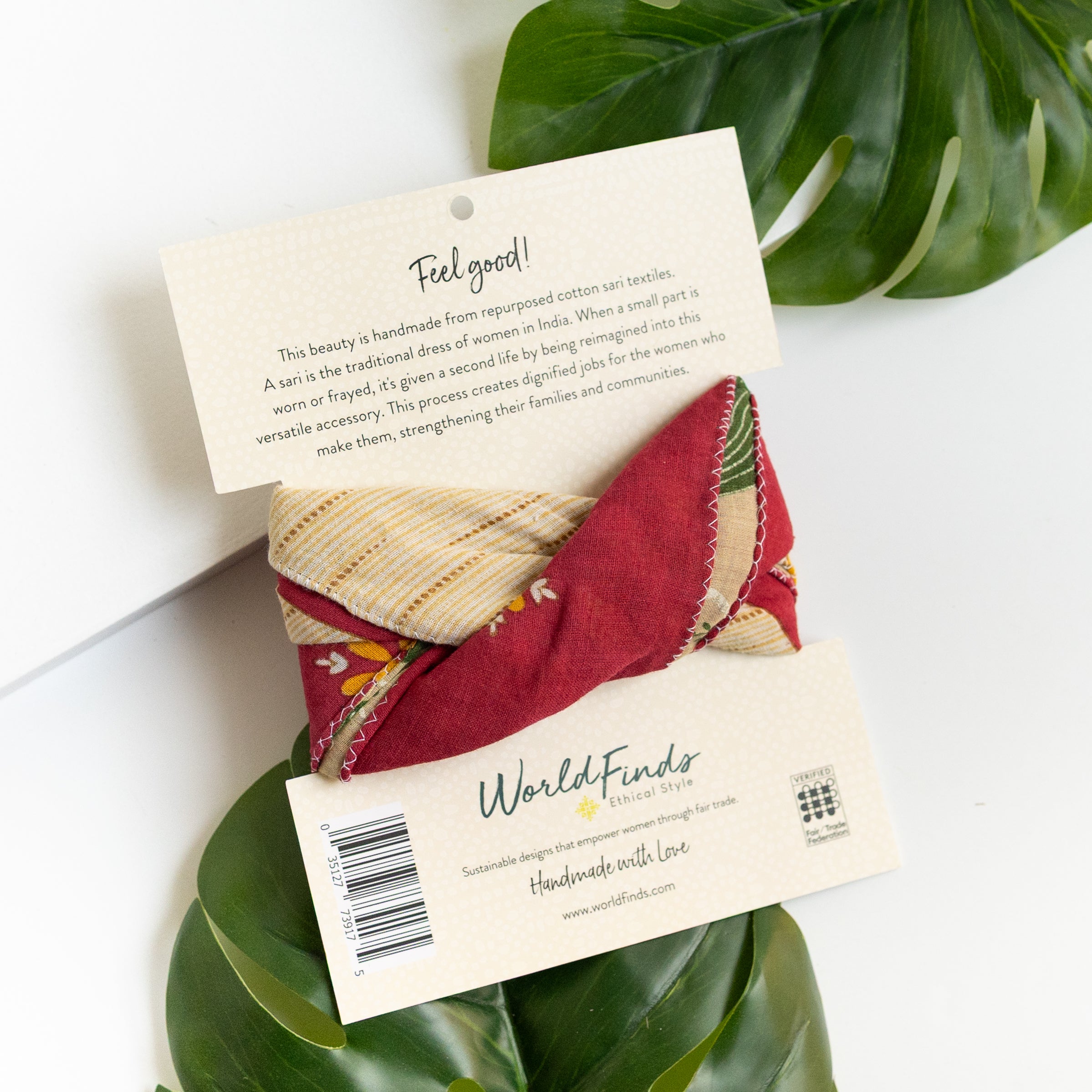 A unique, eco-friendly spin on a timeless design, this Sari Chic Bandana is crafted from repurposed sari fabric and can add just the right amount of pizazz to any ensemble. Style it as a head scarf, around your neck, or even on your four-legged pal!