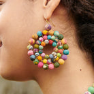 Up your earring game with this standout style! Three circular layers of colorful Kantha beads form this large statement hoop that’s topped with a single bead.