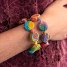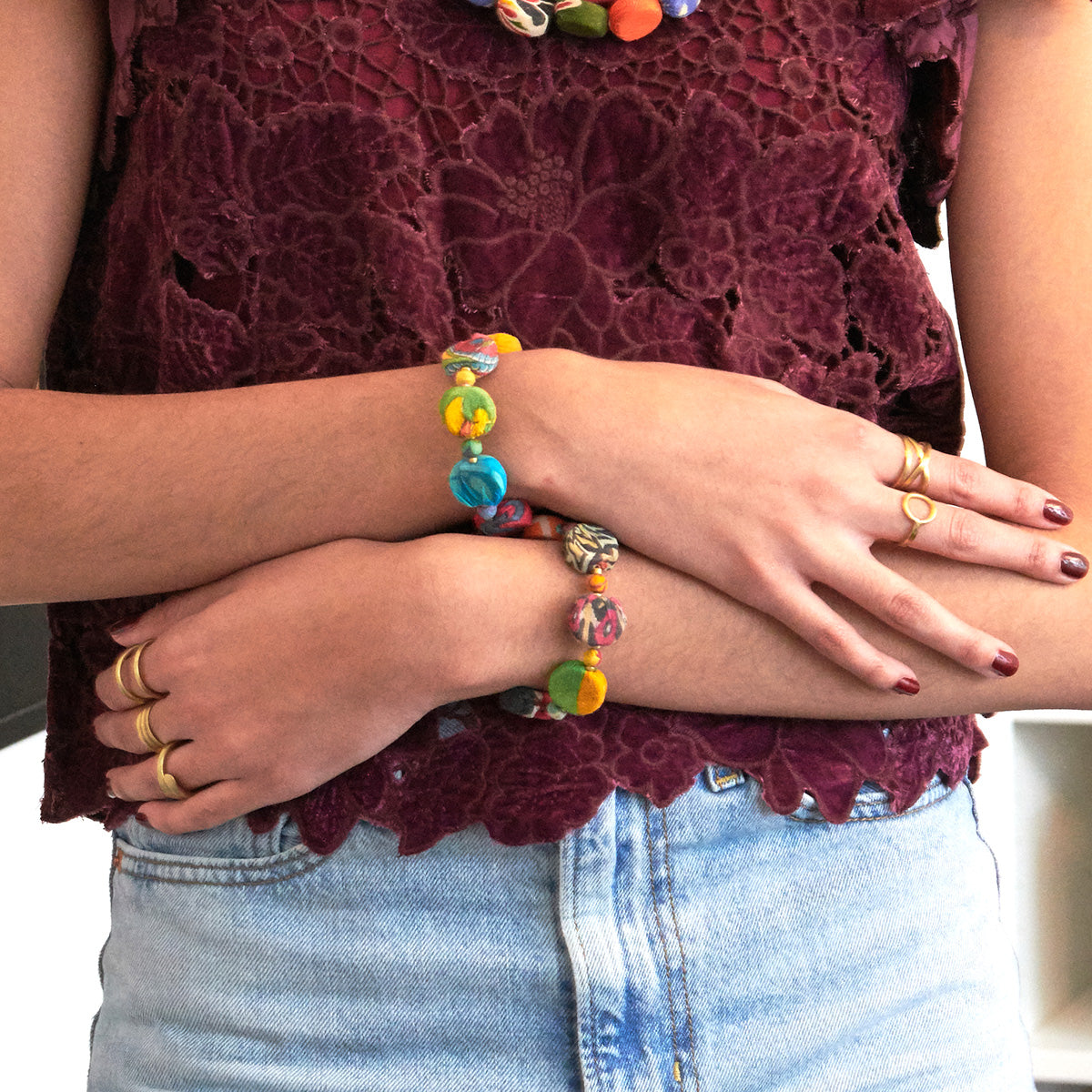 Each bracelet is crafted from repurposed Sari and Kantha fabric so the colors and patterns of the beads will vary.