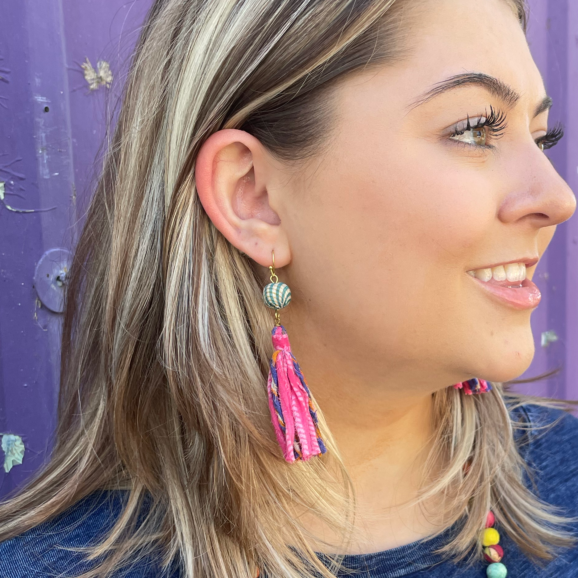Kantha Dangling Tassel Earrings