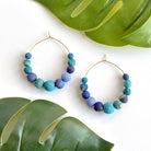 Graduated sizes of Kantha beads in brilliant shades of blue give these hoops a simple yet textured look.