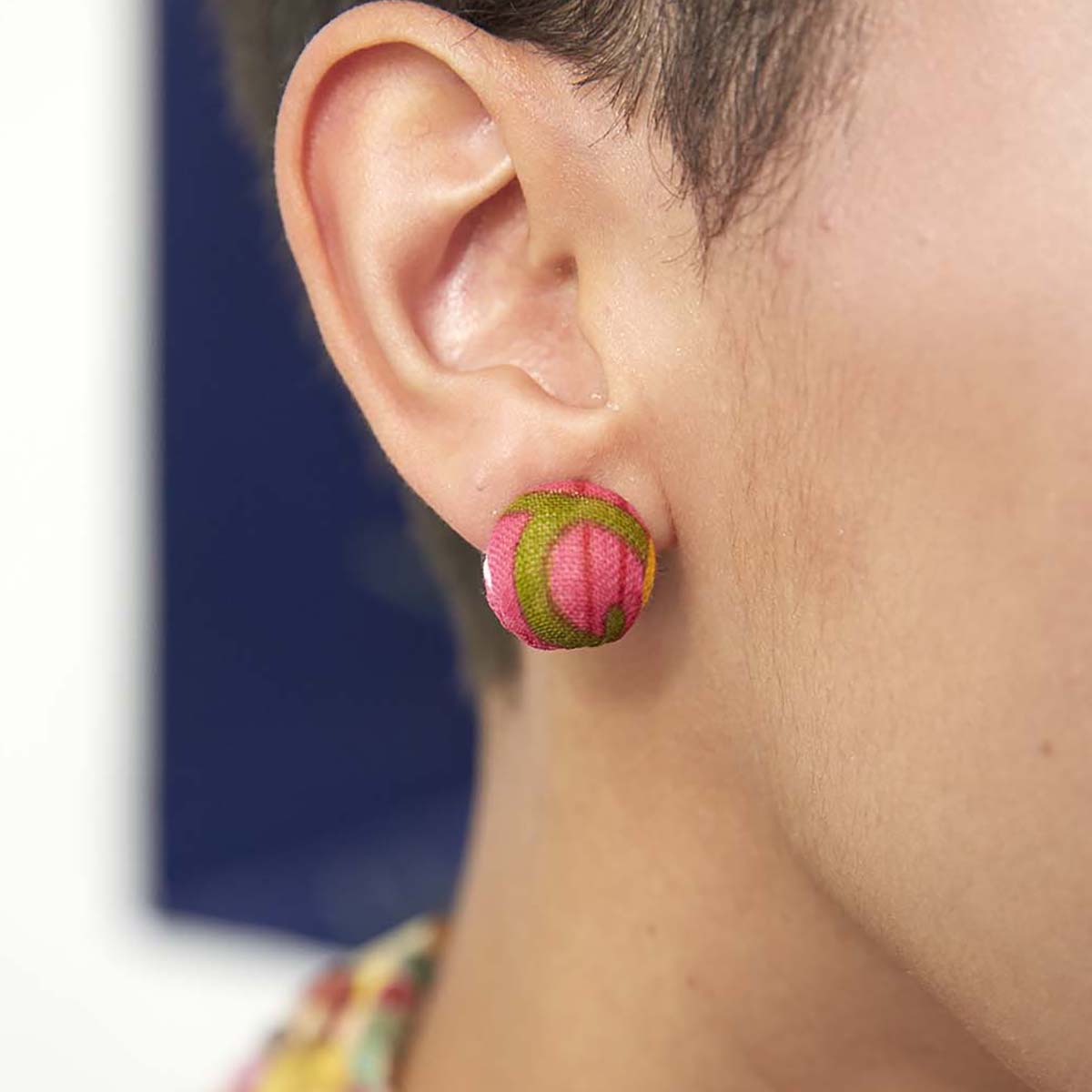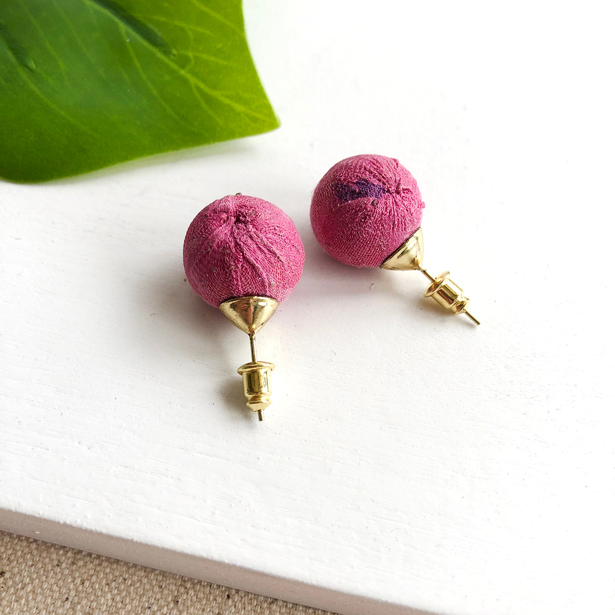 Channel Betty or Wilma with this fun take on the traditional post. Repurposed Kantha textiles give it a modern pop of color and pattern. Colors and patterns will vary as they're made from upcycled fabric. Finished with nickel-free and lead-free post wires.
