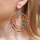 Three concentric circles of our tiniest beads hang independently for lots of movement in this statement style. Finished with nickel-free and lead-free French ear wires. Crafted from repurposed Sari and Kantha fabric, each is one-of-a-kind so exact colors and patterns will vary.