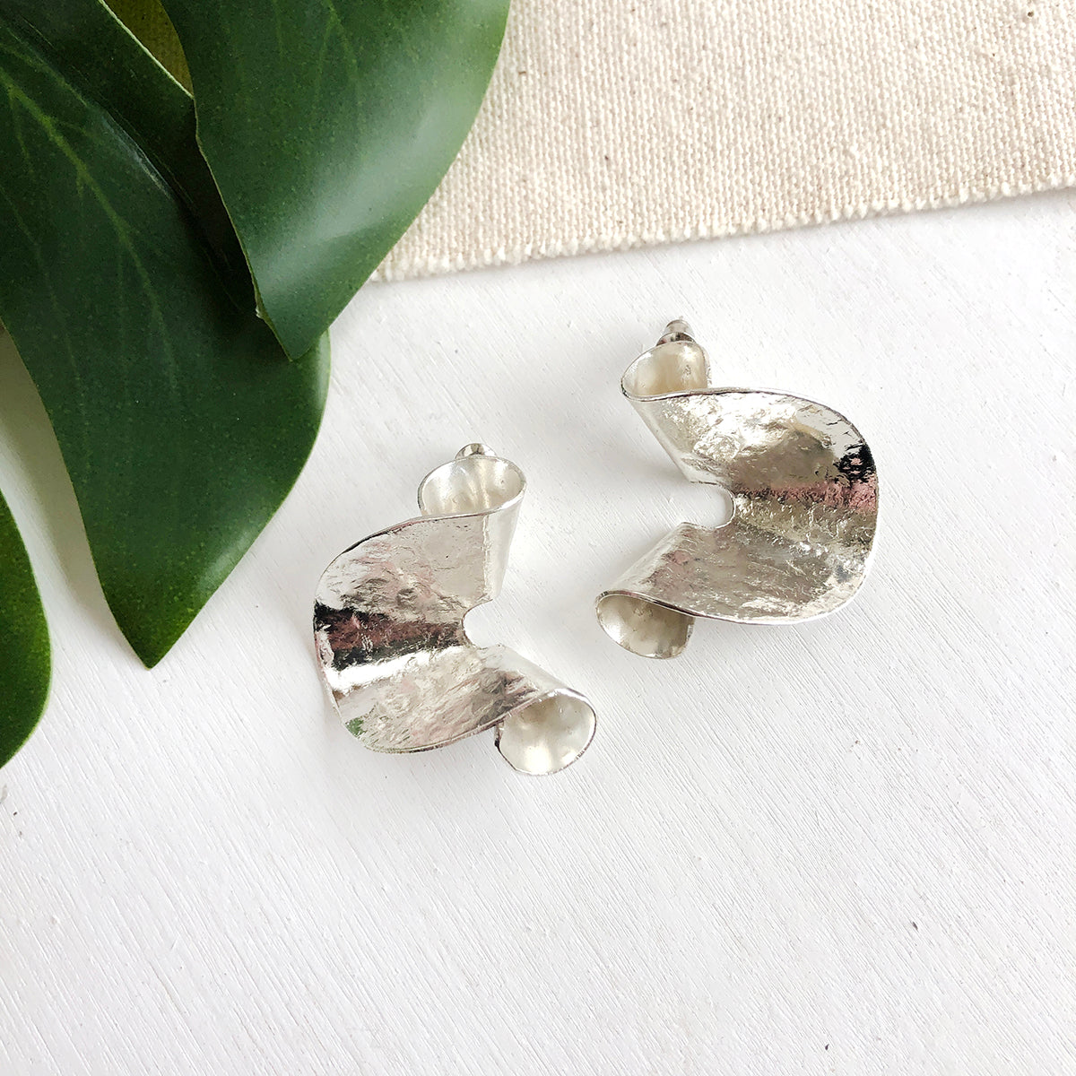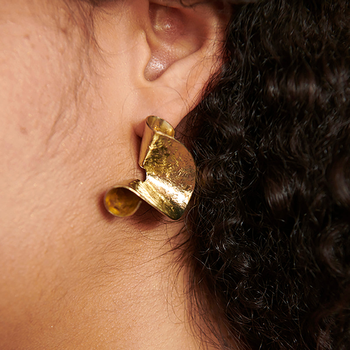 Hammered brass folds, twists and curls to form these sculptural statement earrings. Finished with nickel-free/lead-free post wires.