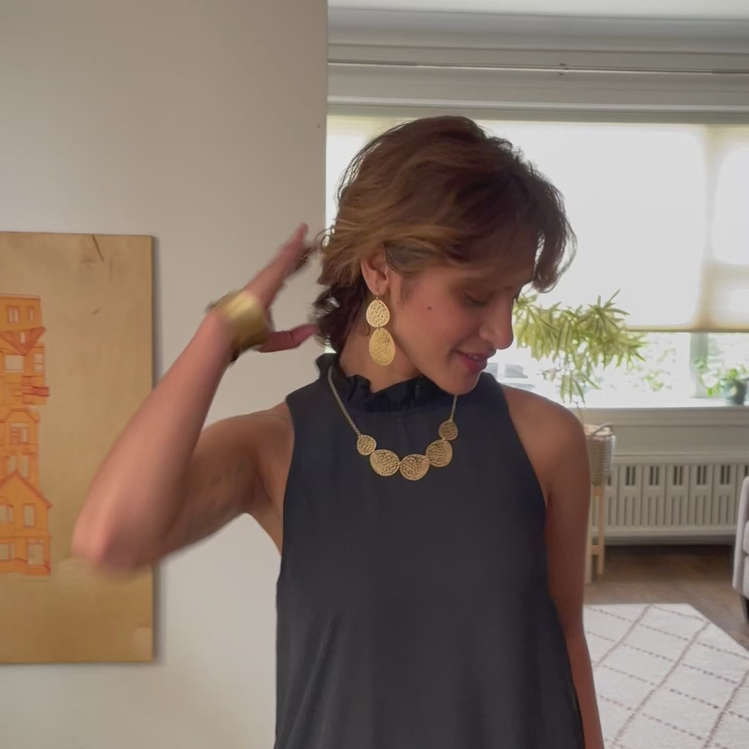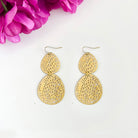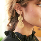 Two leaf-shaped medallions are embellished with a cutout abstract pattern decor and linked together to create lightweight, statement-making earrings. They have a satiny-matte finish.