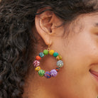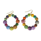 A fresh take on our Kantha Jewelry, the Threaded Kantha Collection features a colorful, textured wrap technique. The artisans first cut the repurposed Kantha fabric into long strips, wrap them with colorful cotton thread, and then cover oval-shaped beads with the textured strips. The Kantha and thread-wrapped beads are incredibly colorful, and are interspersed with traditional round Kantha beads to form the Threaded Kantha Hoops.