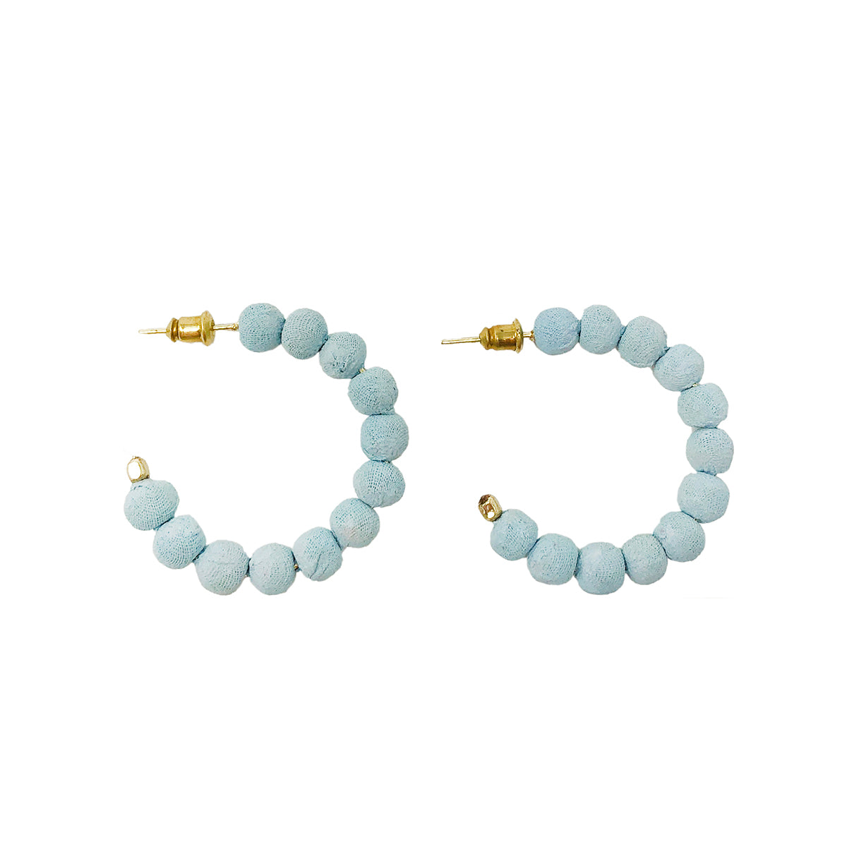 Light and airy, these Kantha Mini hoops have 12 small beads in the palest shade of blue.