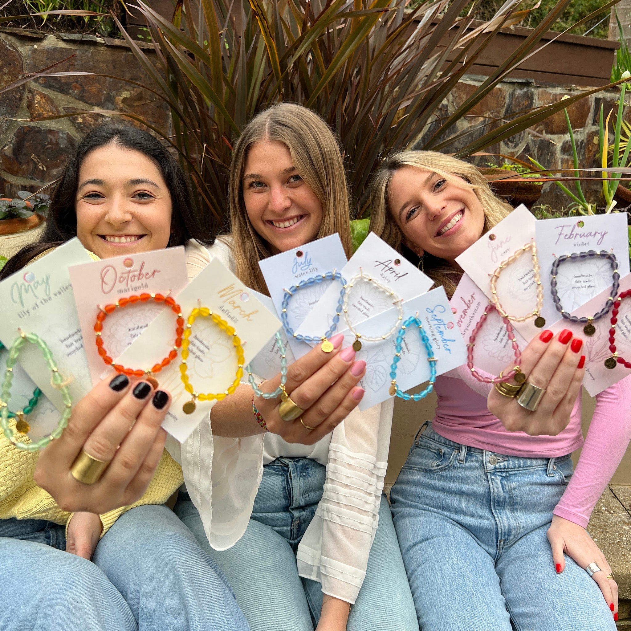Hello, February! š Part of our Botanical Collection, the February Bracelet is crafted from rich purple glass beads, brass accent beads, and features a violet charm. Great for gifting, the card features the violet and it's symbols of truth, sincerity and loyalty, along with a garden-inspired quote.Ā This braceletĀ also benefits an urban community garden project!