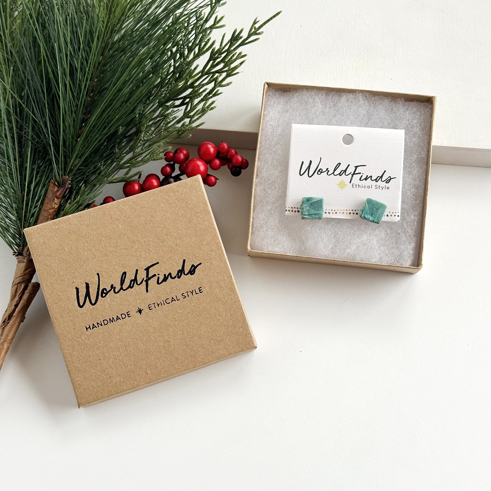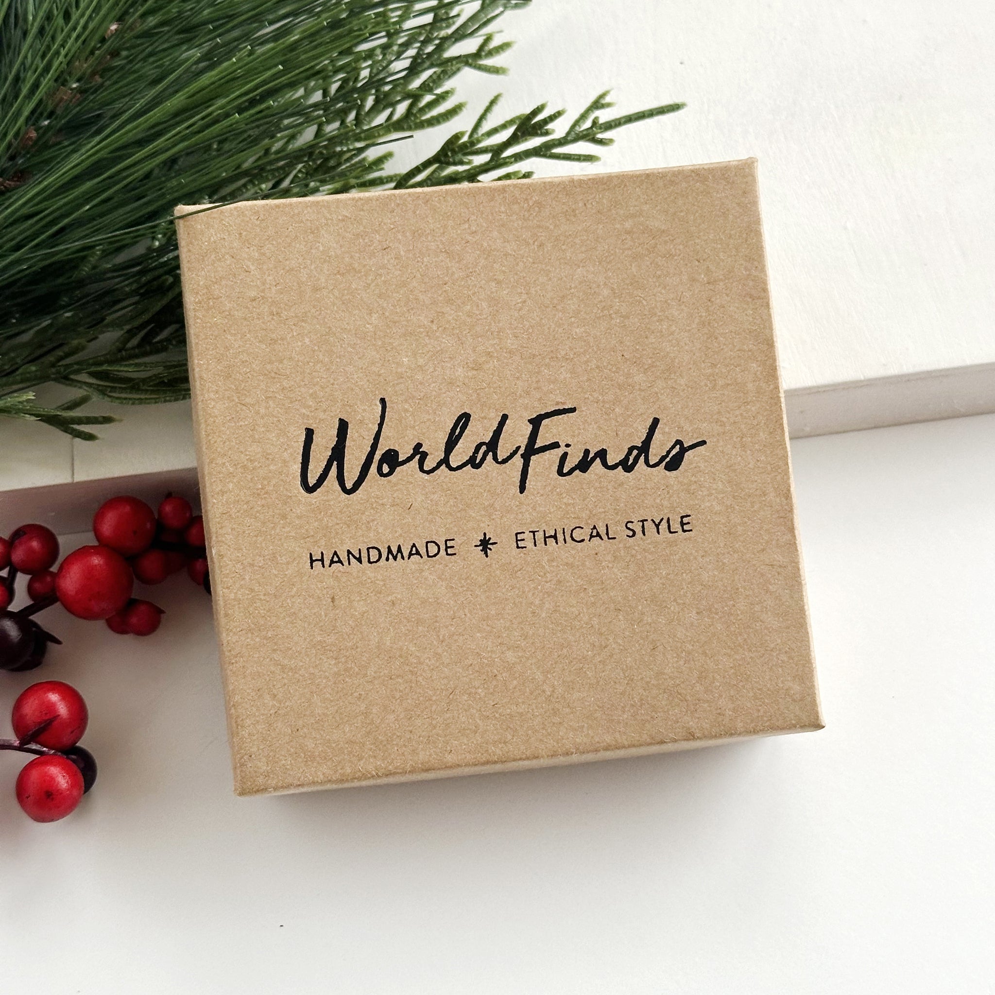 Wrap your gift in sustainable goodness! This gift box is great for elastic bracelets and small earrings. This box does not fit carded bracelets.