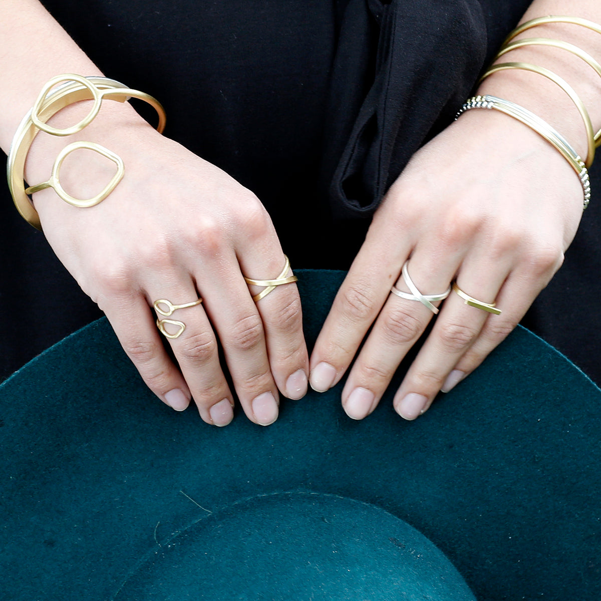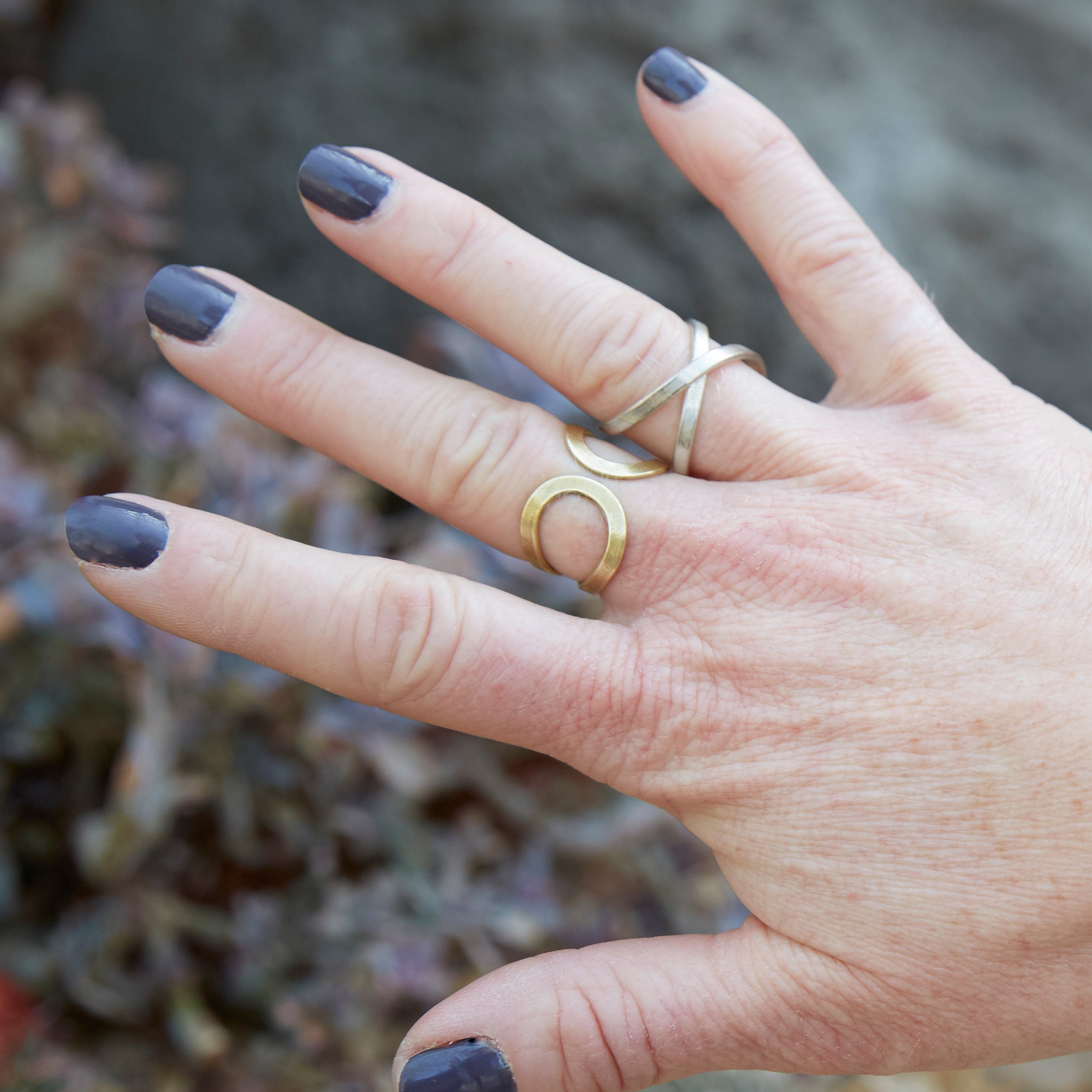 Sleek, brushed metal crosses in the center and loops around the edges. Looks great with the "X" in front or back.