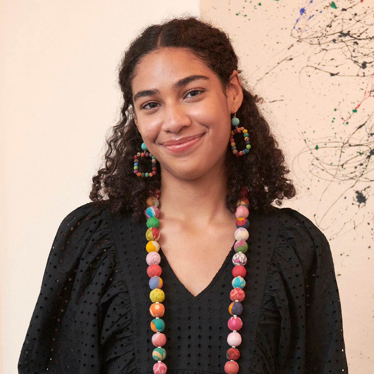 Finished with nickel-free and lead-free French earring wires. Made from repurposed Kantha textiles; colors and patterns of the beads will vary.