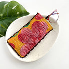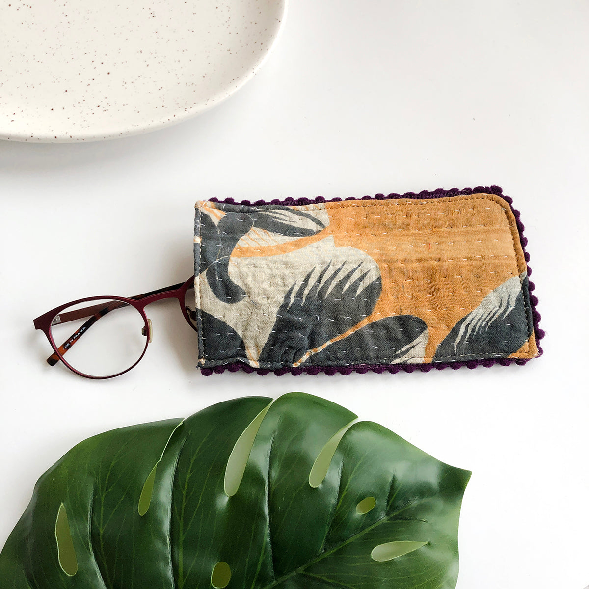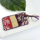 Functional and sustainable, this eyeglass case will keep your shades safe and stylish! Handcrafted from upcycled Kantha materials, it's adorned with a picot trim. Each case is unique, made from repurposed Sari fabric with its own special tones and designs.