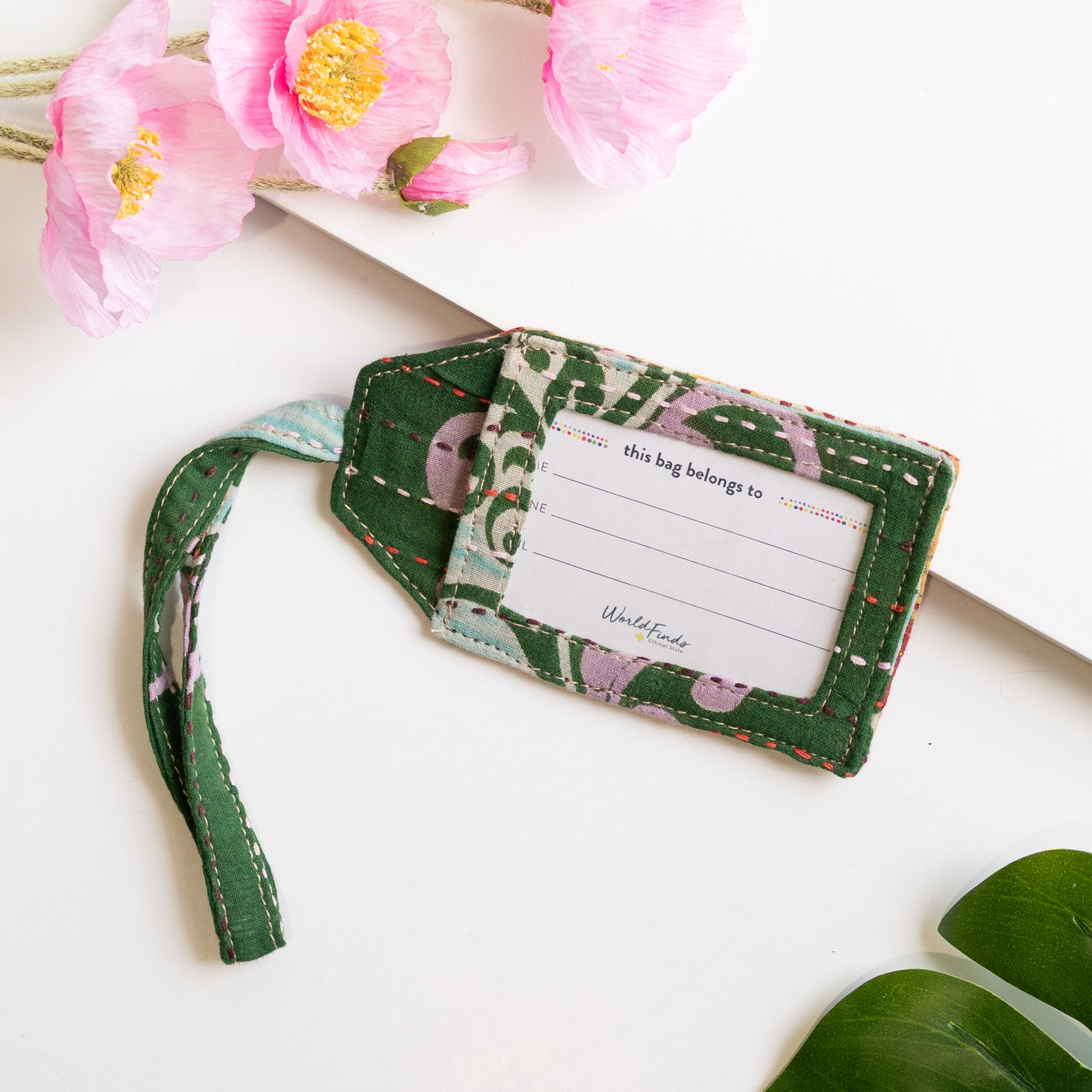 Travel in style & easily identify your luggage with these Kantha beauties. Each tag is made from recycled Kantha textiles, so colors and patterns are all one-of-a-kind and will vary. This luggage tag also includes an insert for writing contact information.