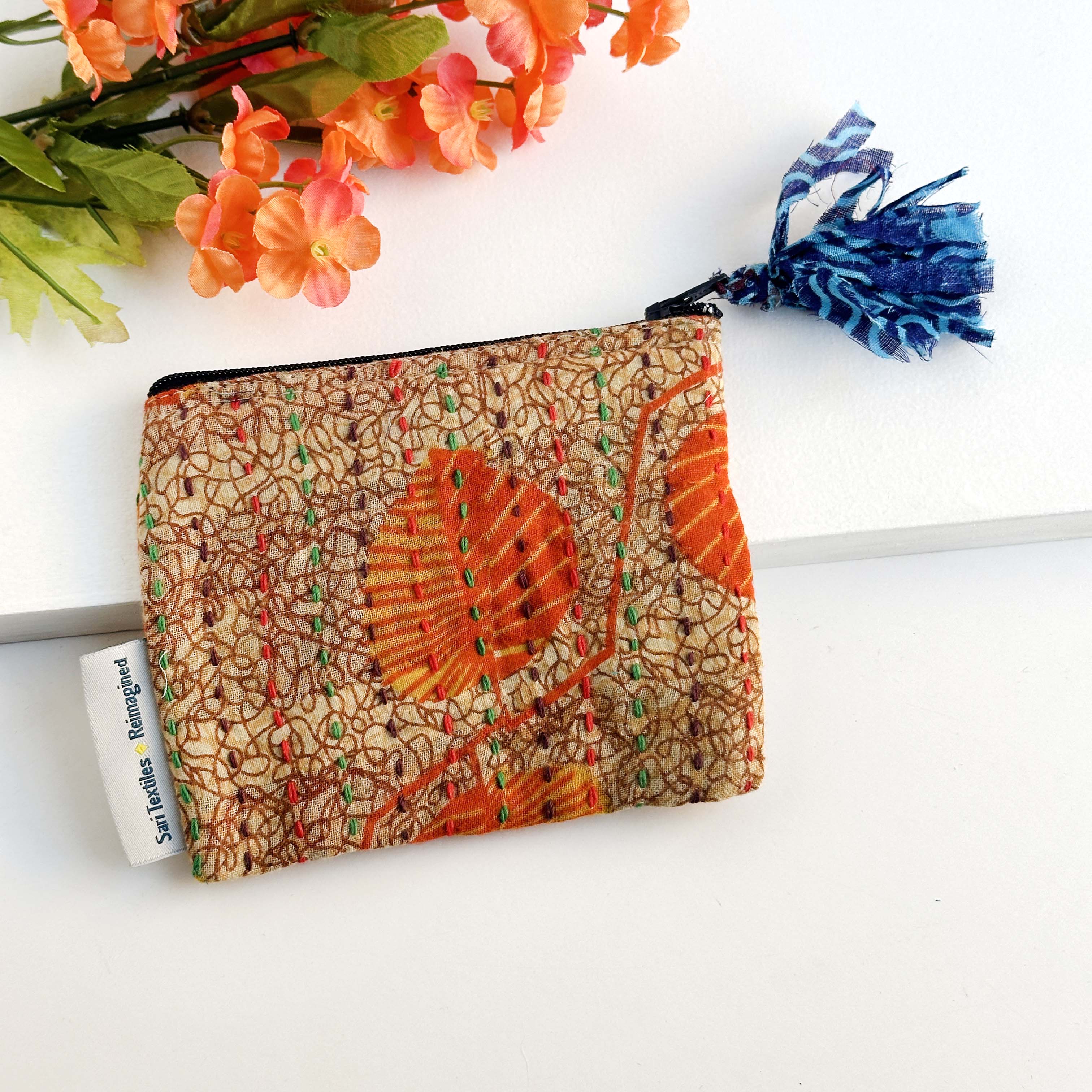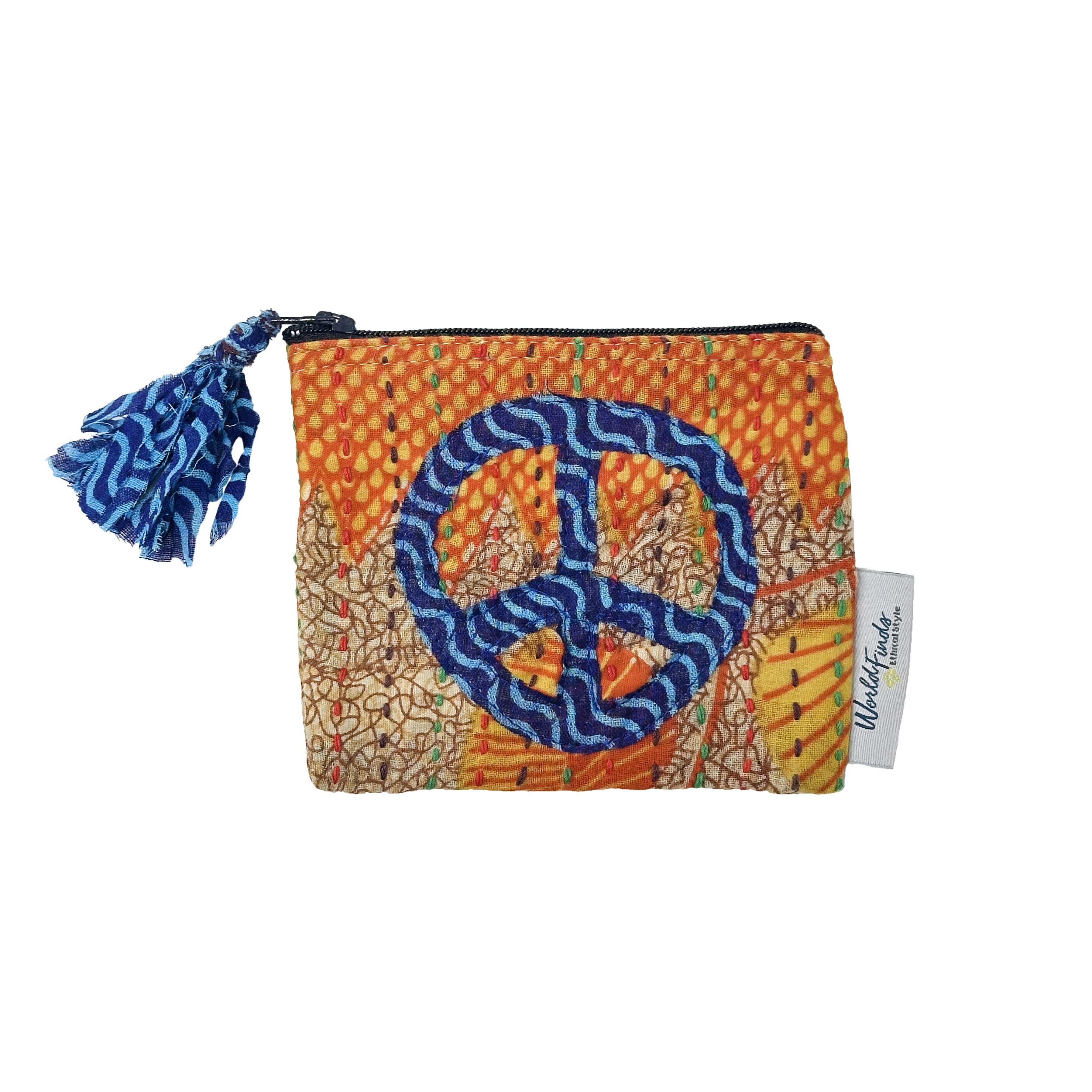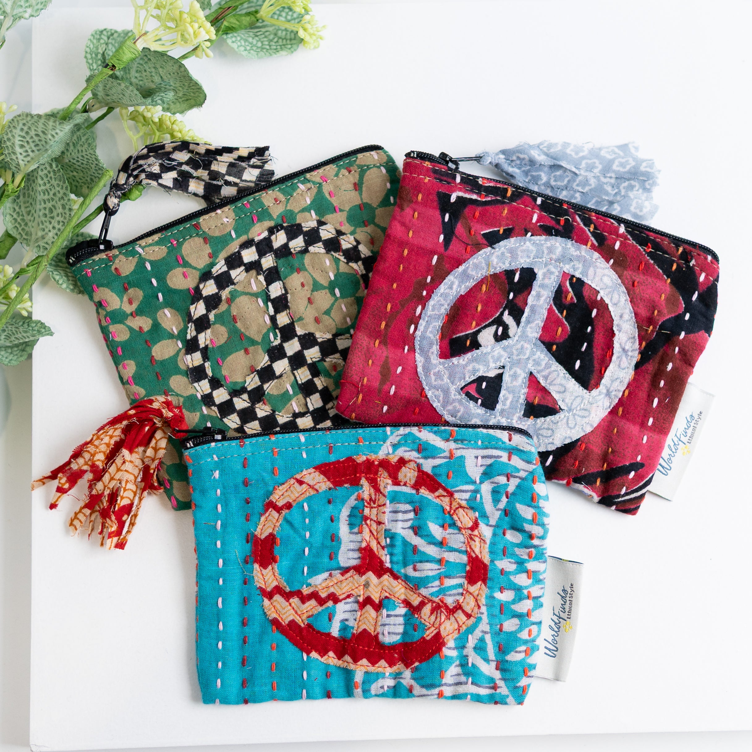 We've updated our classic zip pouch with playful motifs! This coin purse features a peace sign applique. Each piece is made from recycled Kantha textiles, so colors and patterns are all one-of-a-kind and will vary.