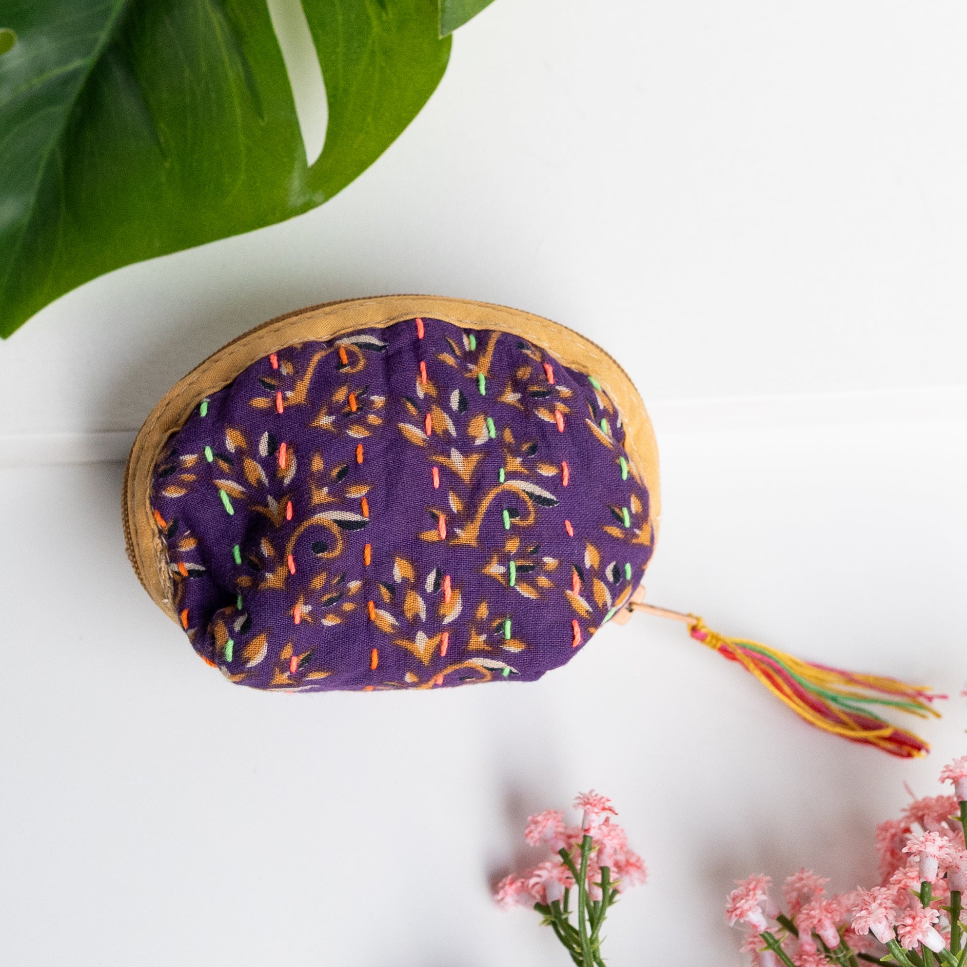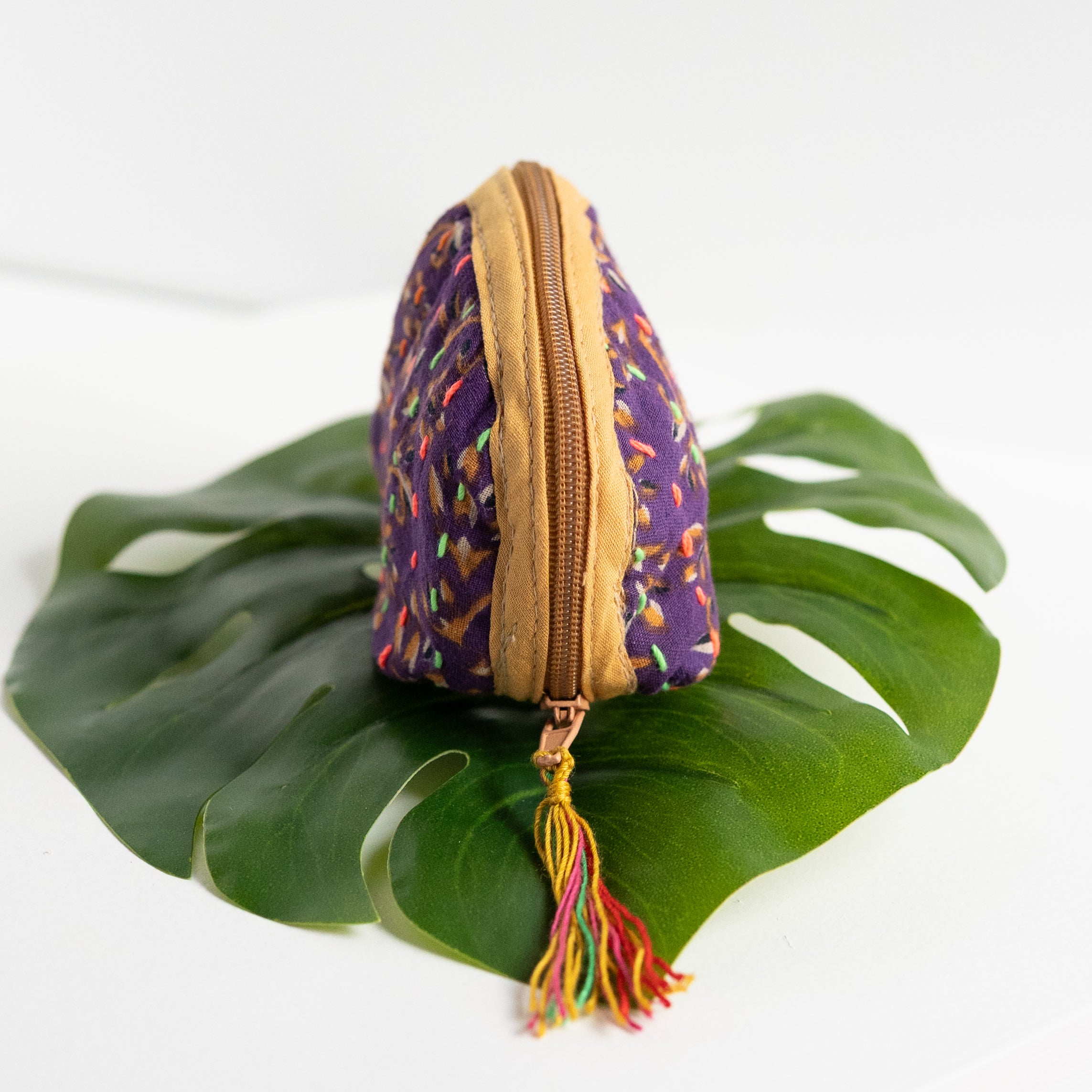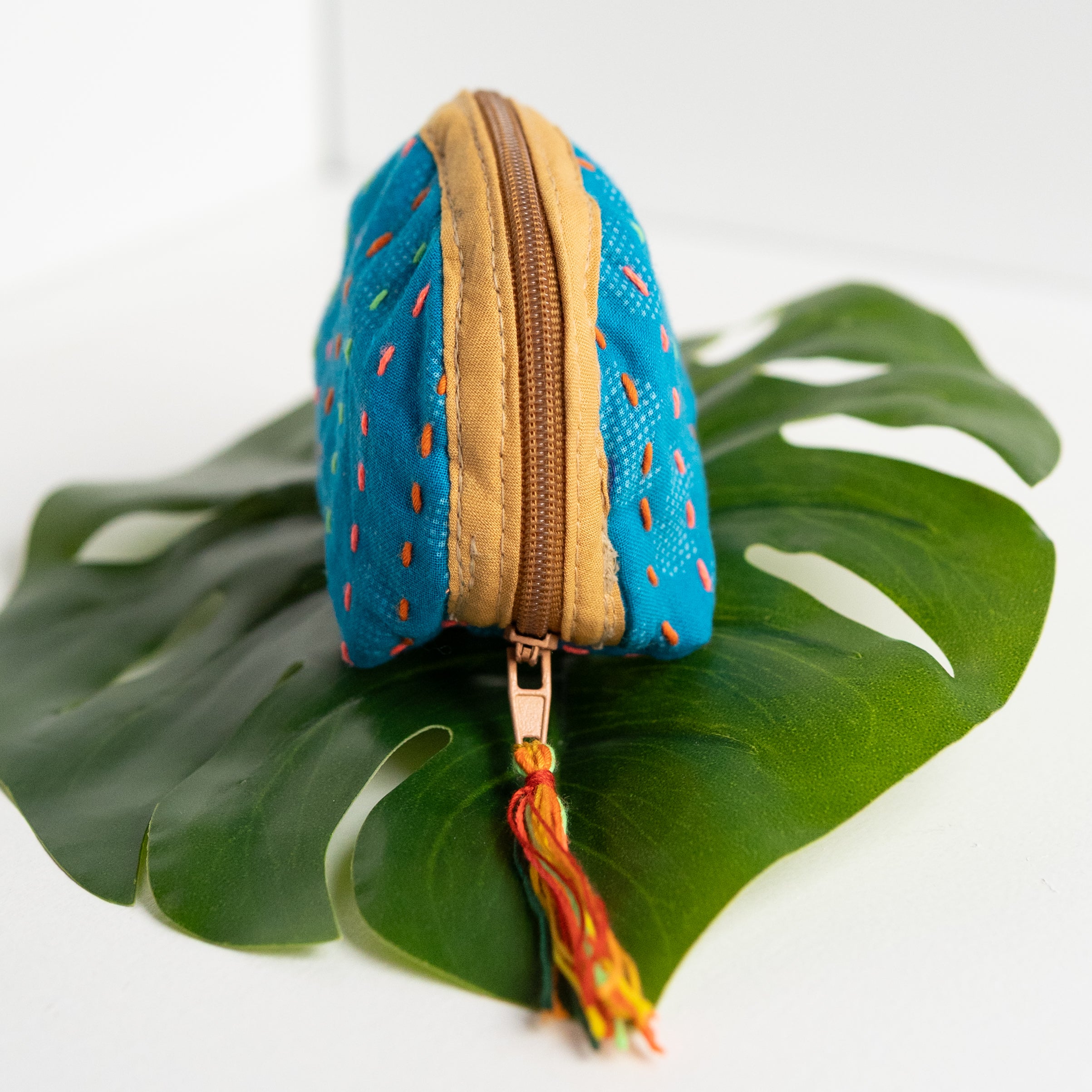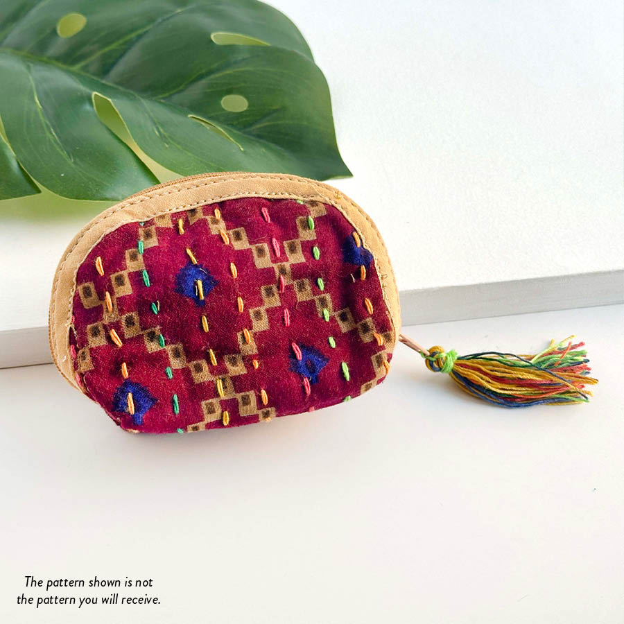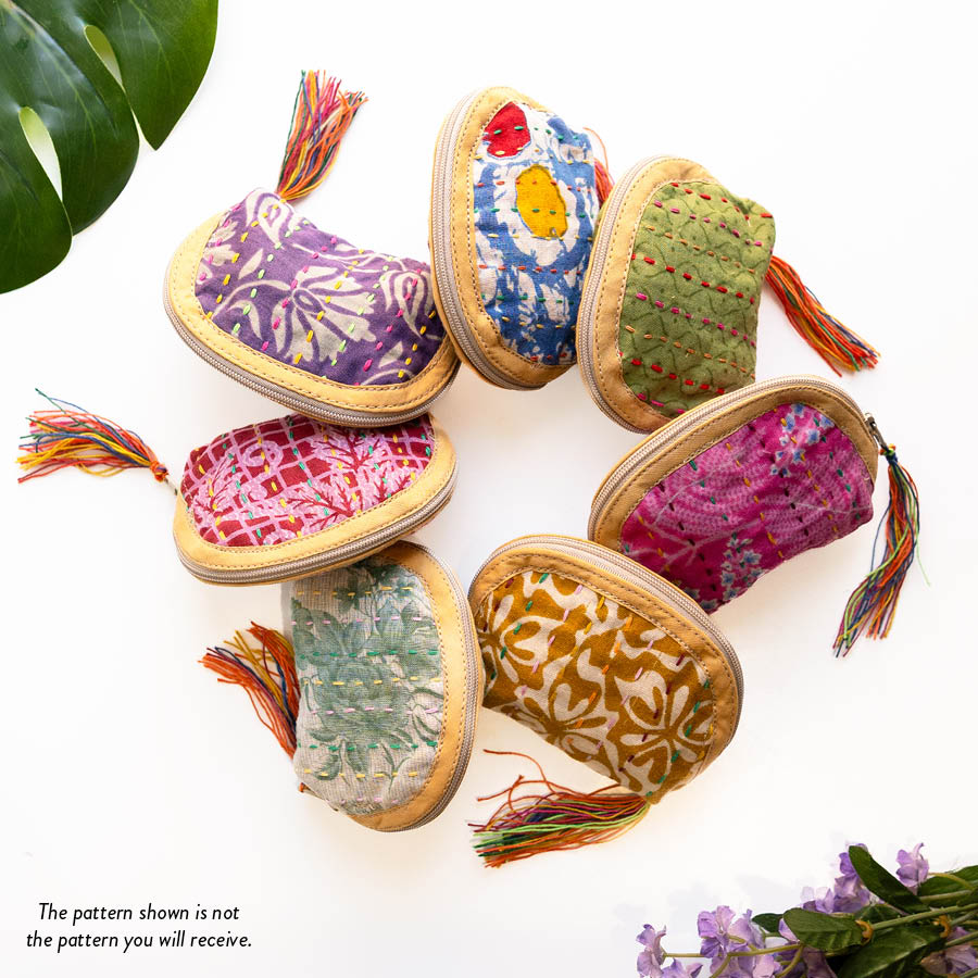 Our classic pouch just got tinier! This tiny bag is handmade from upcycled Kantha quilts and is finished with a decorative tassel on the zipper. This stash bag is perfect for organizing small cosmetics, headphones, or charging cords.