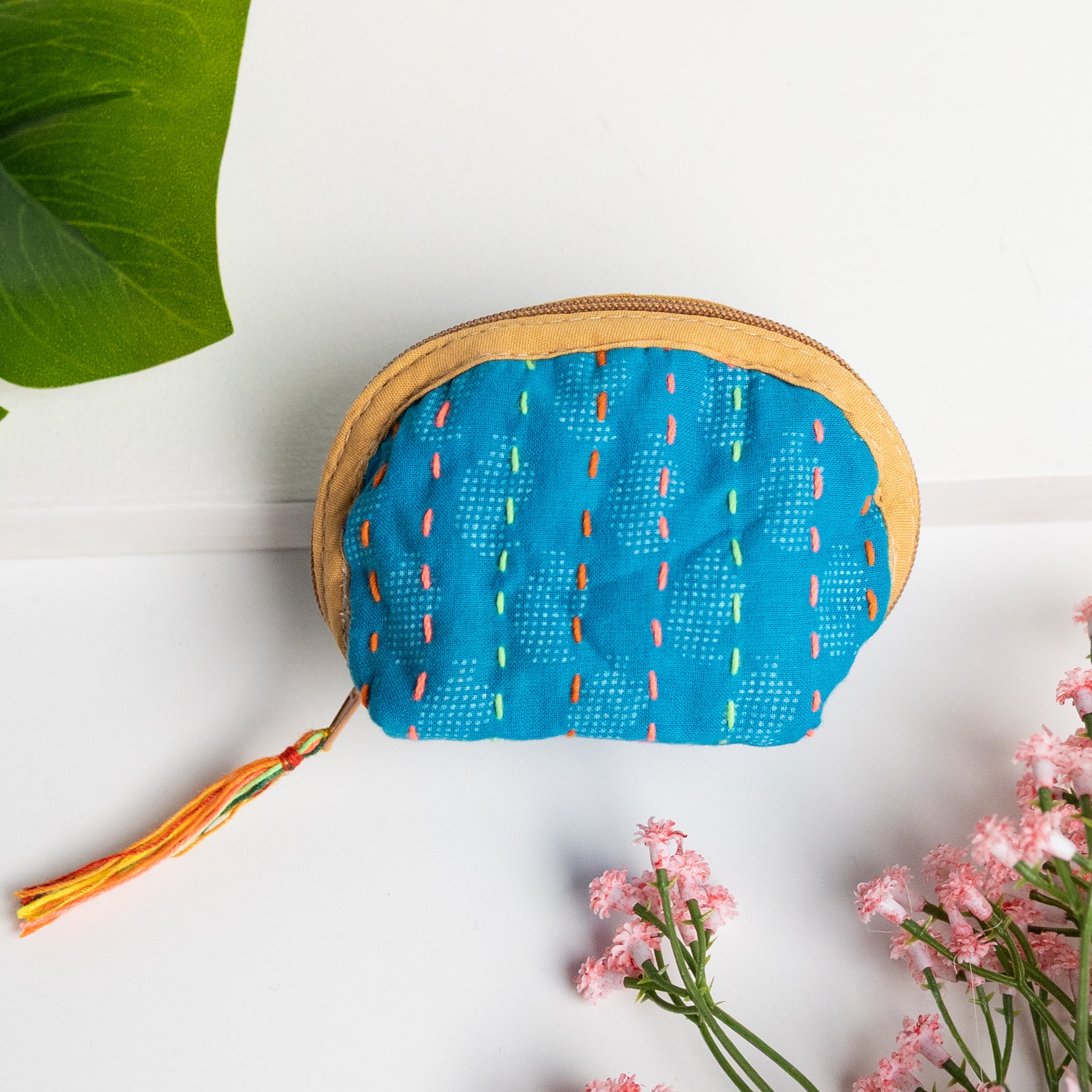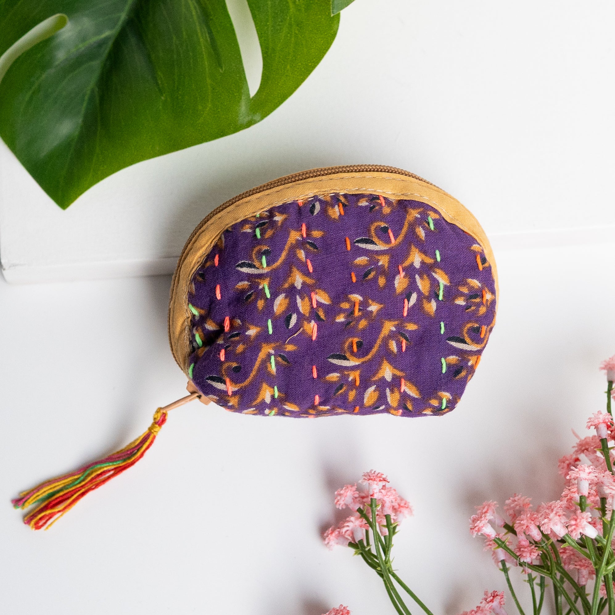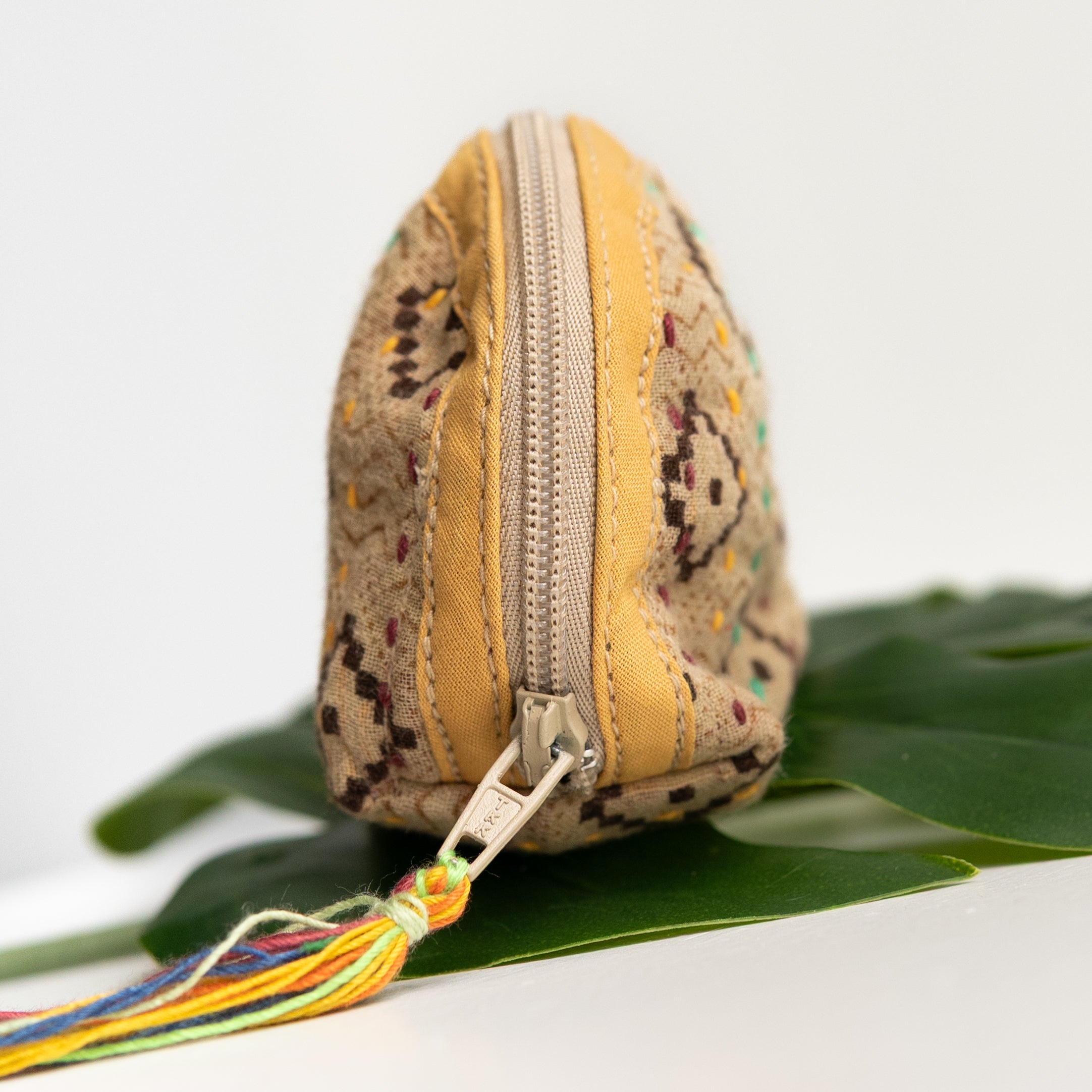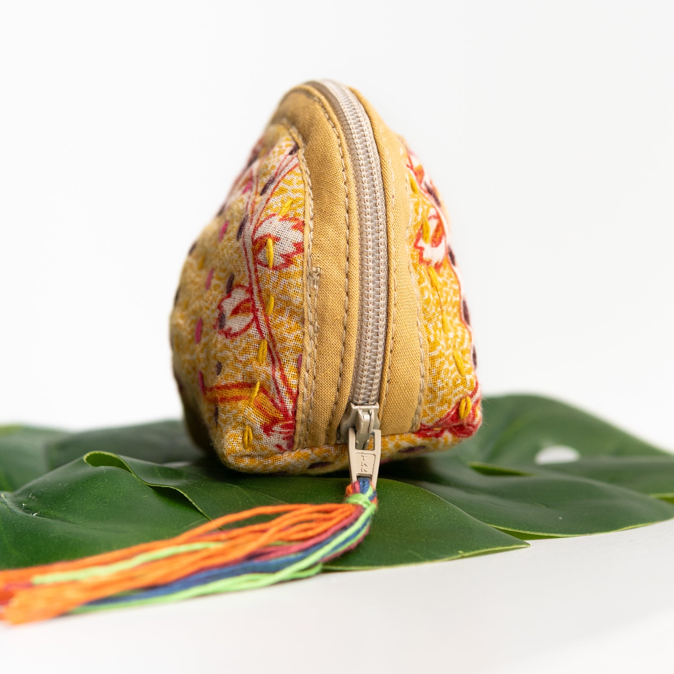 Our classic pouch just got tinier! This tiny bag is handmade from upcycled Kantha quilts and is finished with a decorative tassel on the zipper. This stash bag is perfect for organizing small cosmetics, headphones, or charging cords.