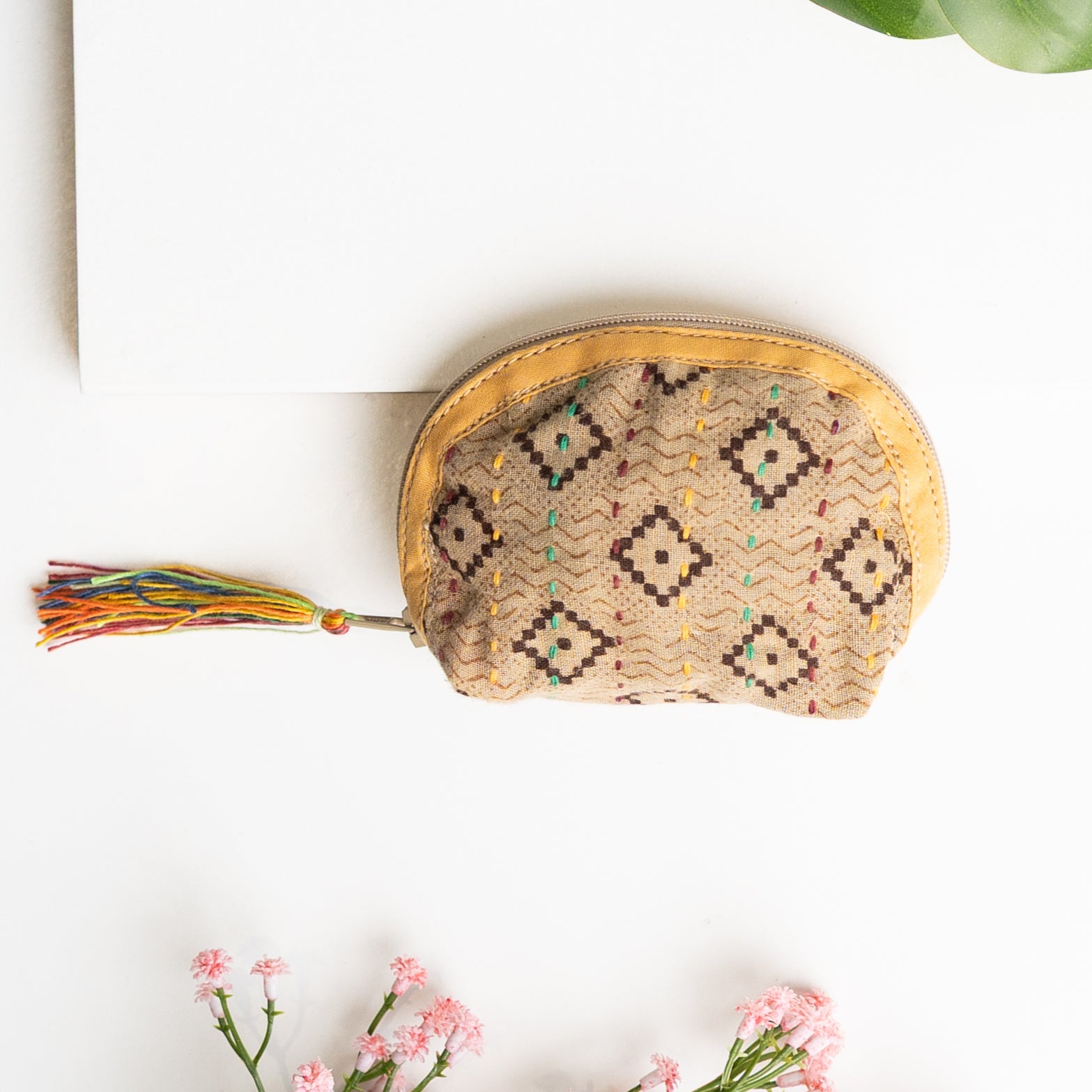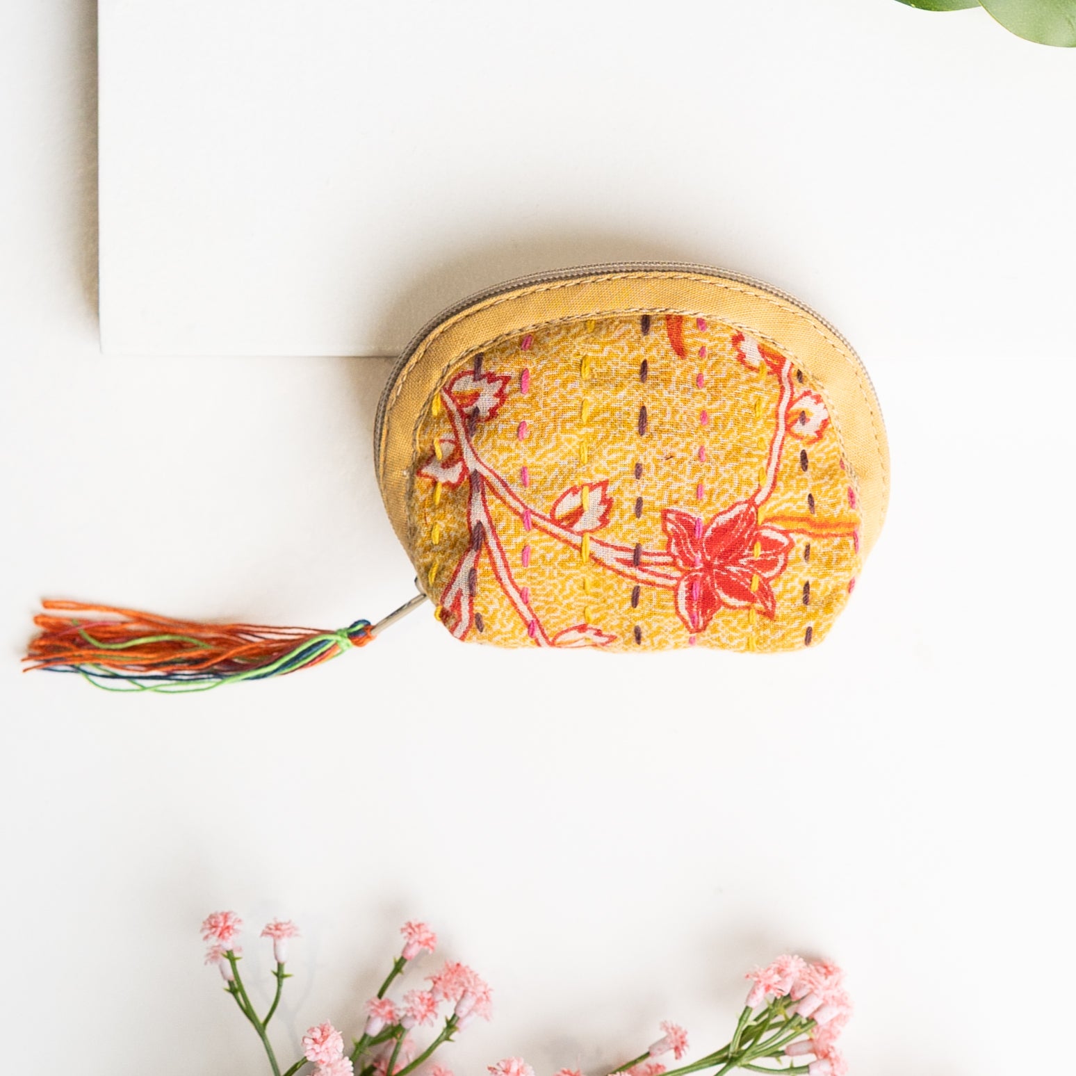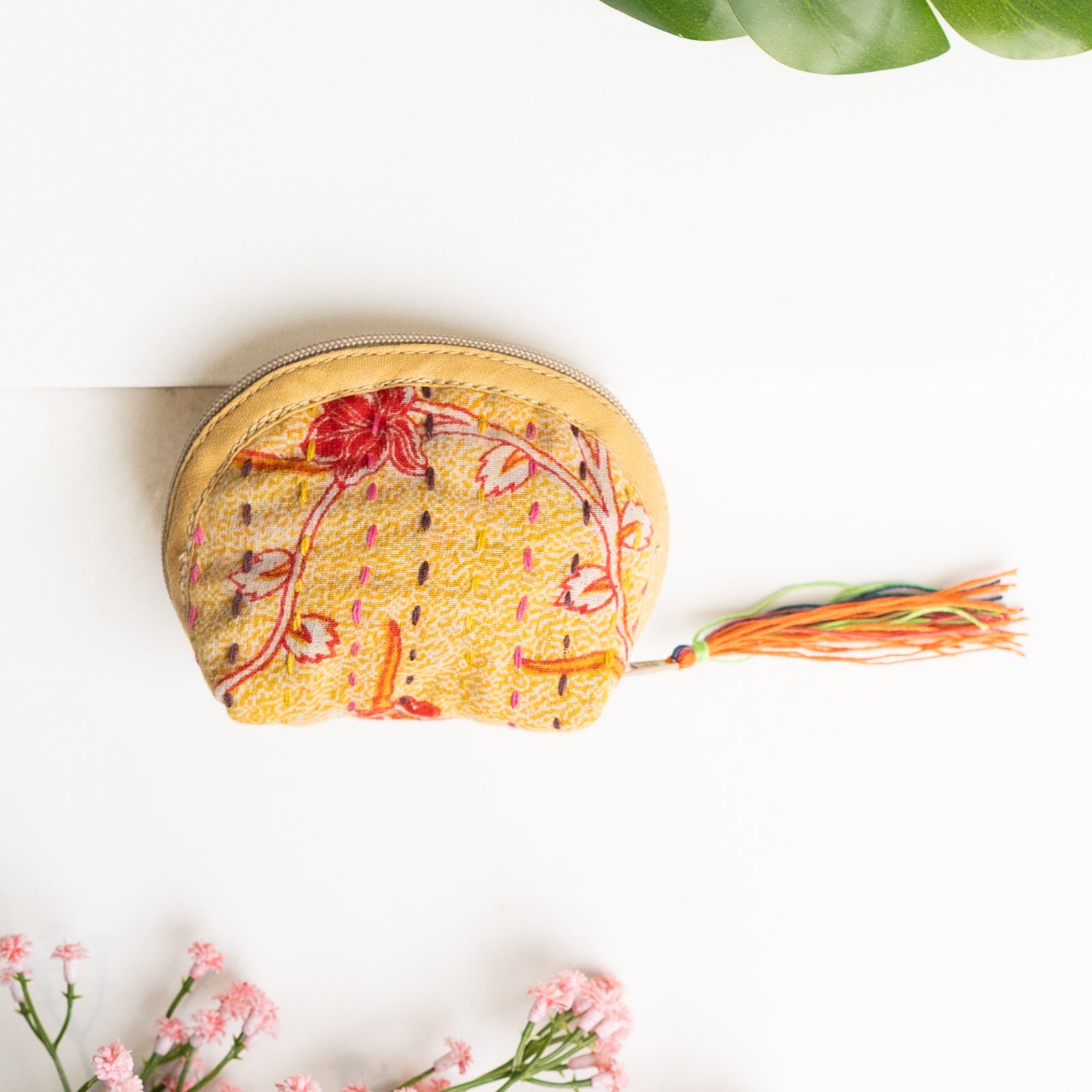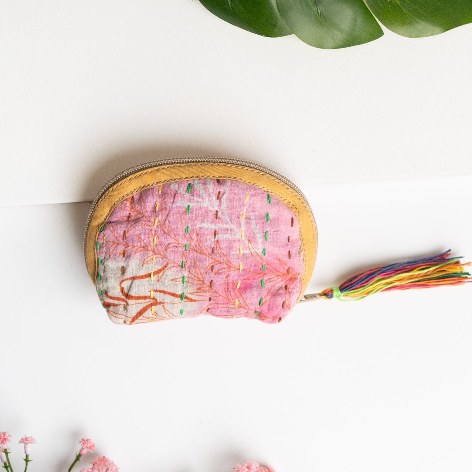 Our classic pouch just got tinier! This tiny bag is handmade from upcycled Kantha quilts and is finished with a decorative tassel on the zipper. This stash bag is perfect for organizing small cosmetics, headphones, or charging cords.