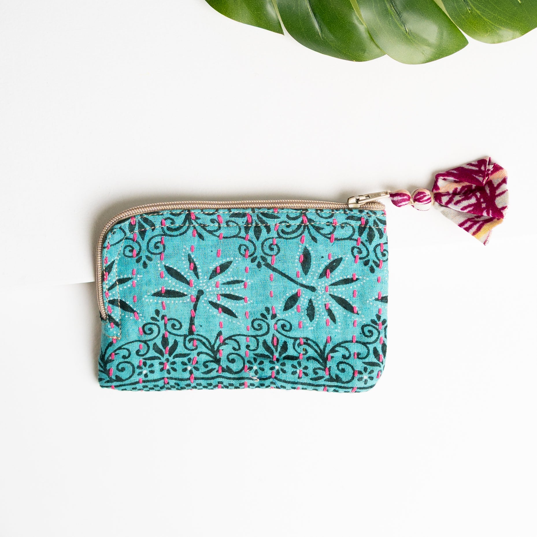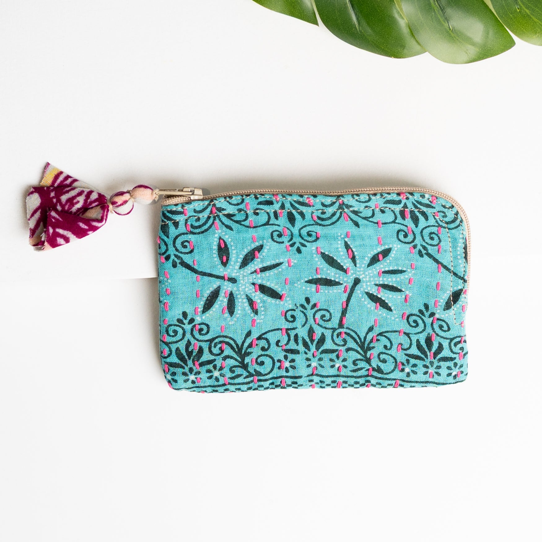 Perfect for adding a little order to your bag, this colorful zip-around pouch makes your cards super easy to find. Handcrafted from repurposed Kantha textiles, this take-everywhere pouch is too cute to keep hidden away.