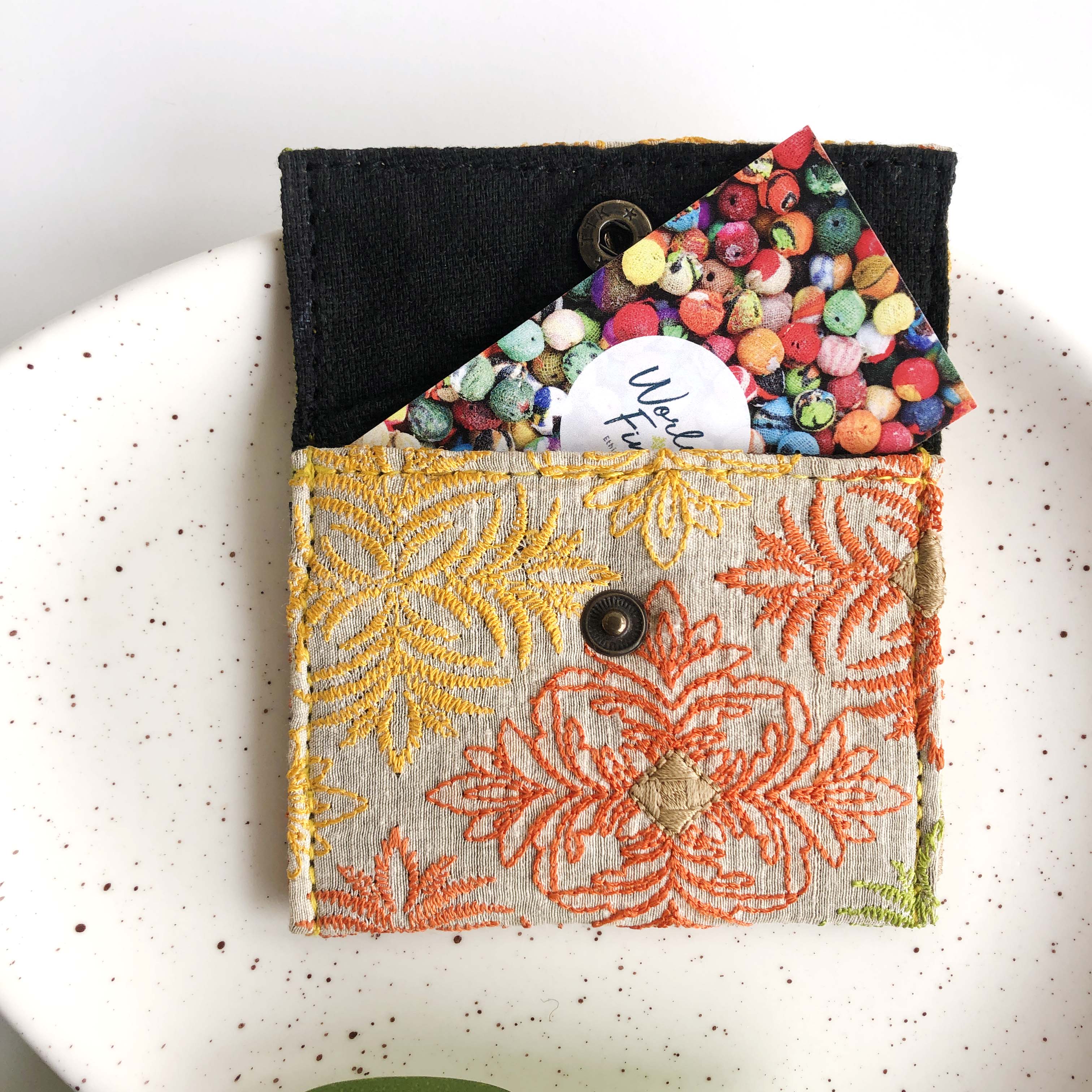 Exquisite Kutch weaves are handpicked to craft these exciting card holders. Ideal for your business cards or used as a wallet! Interior is lined in sleek black cotton.