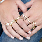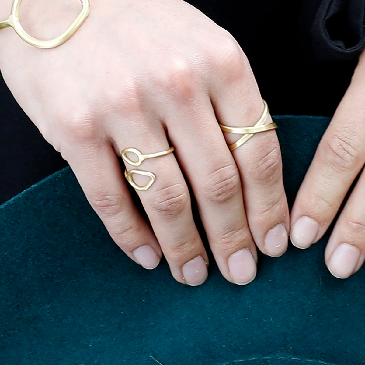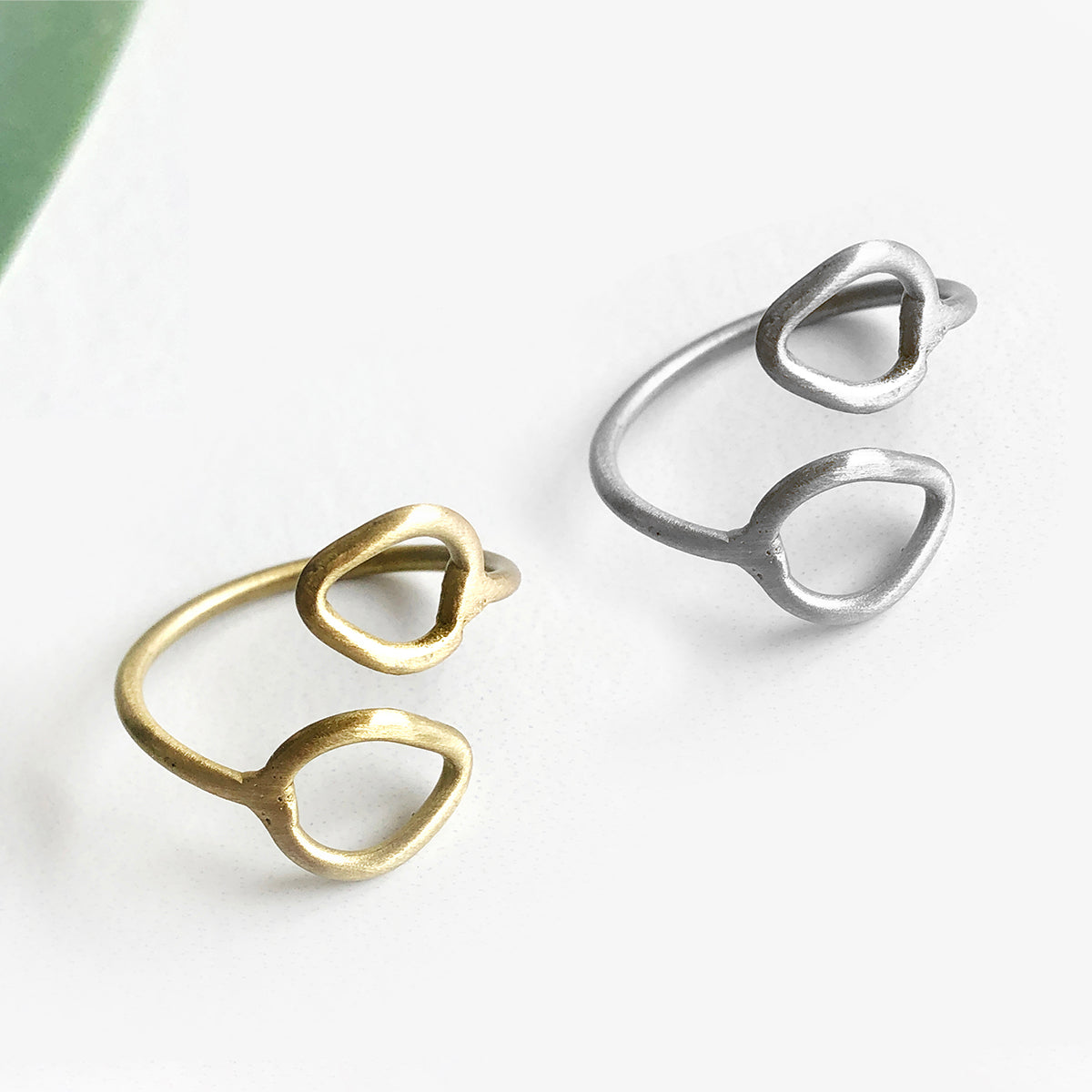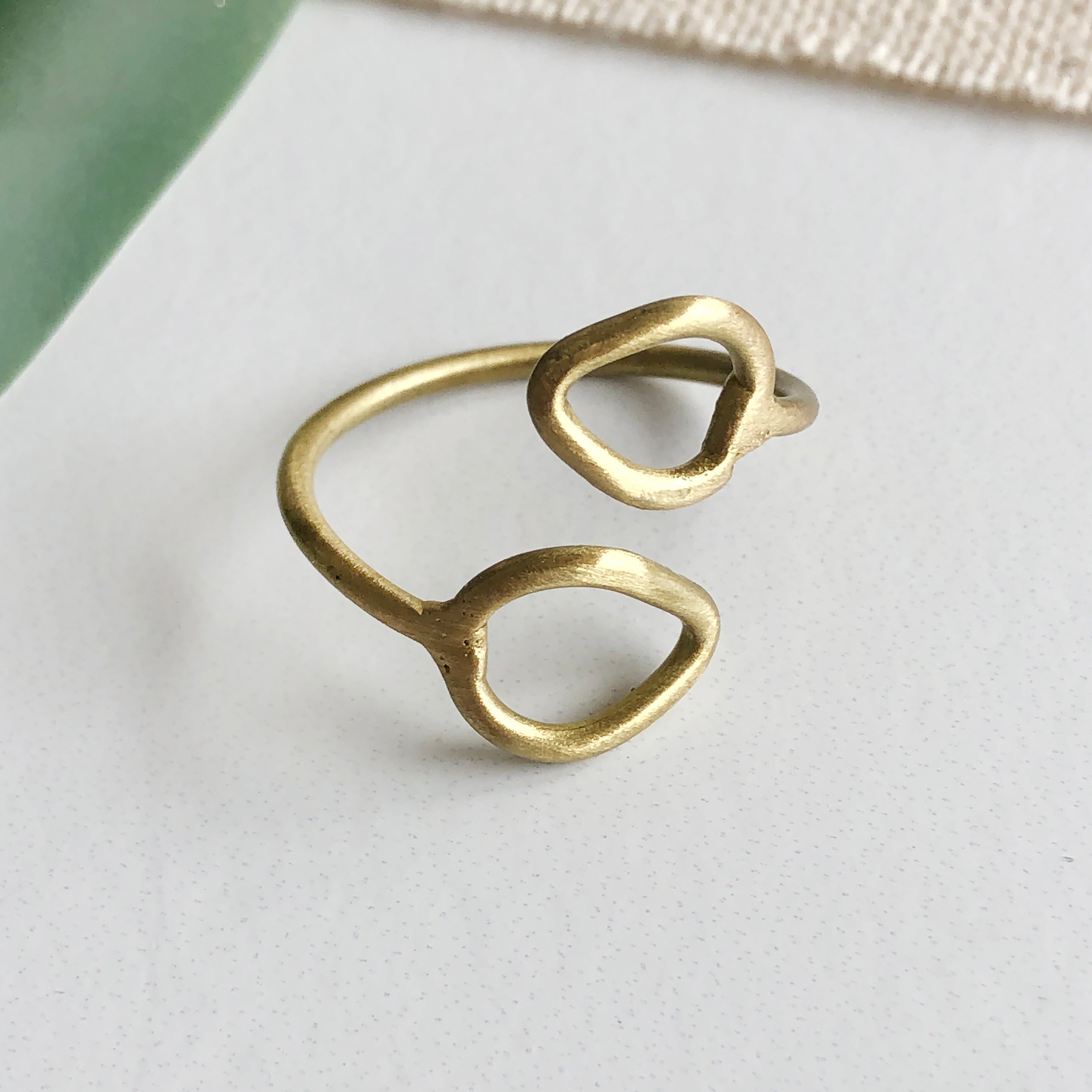 This adjustable brass mix ring features two graceful leaf shapes that meet in the center, electroplated in beautiful metallic tones. Crafted by hand in India through fair trade partnerships, it is a stunning addition to any ensemble.