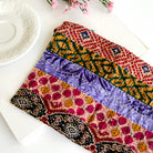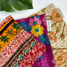 Crafted from recycled Sari and Kantha textiles, the Multi-Use Cloth features a loop for hooking it onto a cupboard knob or hook. This unique item boasts a patchwork of repurposed fabrics on the front, plus a single fabric on the back. Ready, set, clean up spills, wipe down surfaces, and dry off dishes – all without whipping out single-use paper towels. Each cloth is one-of-a-kind with its own colors and patterns.