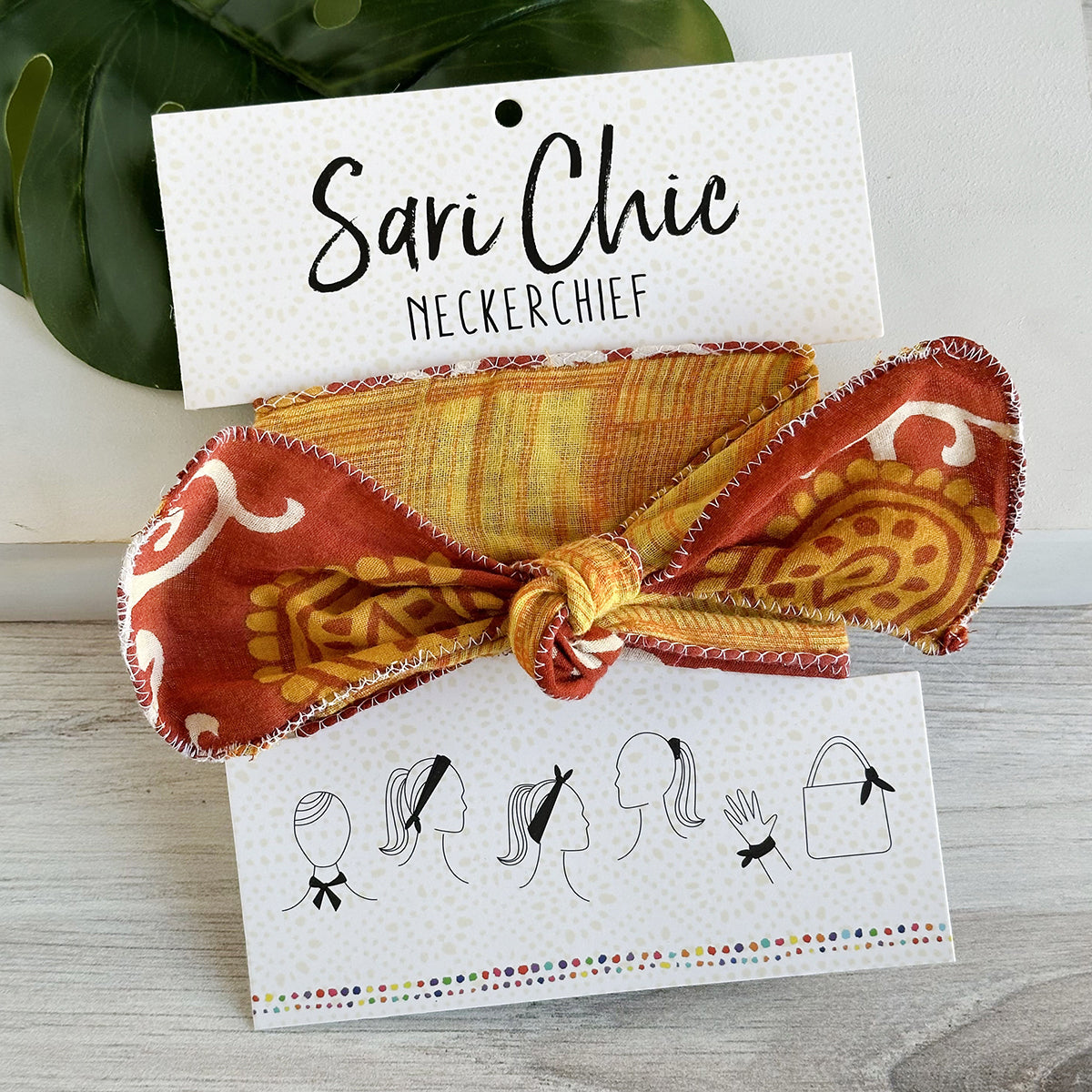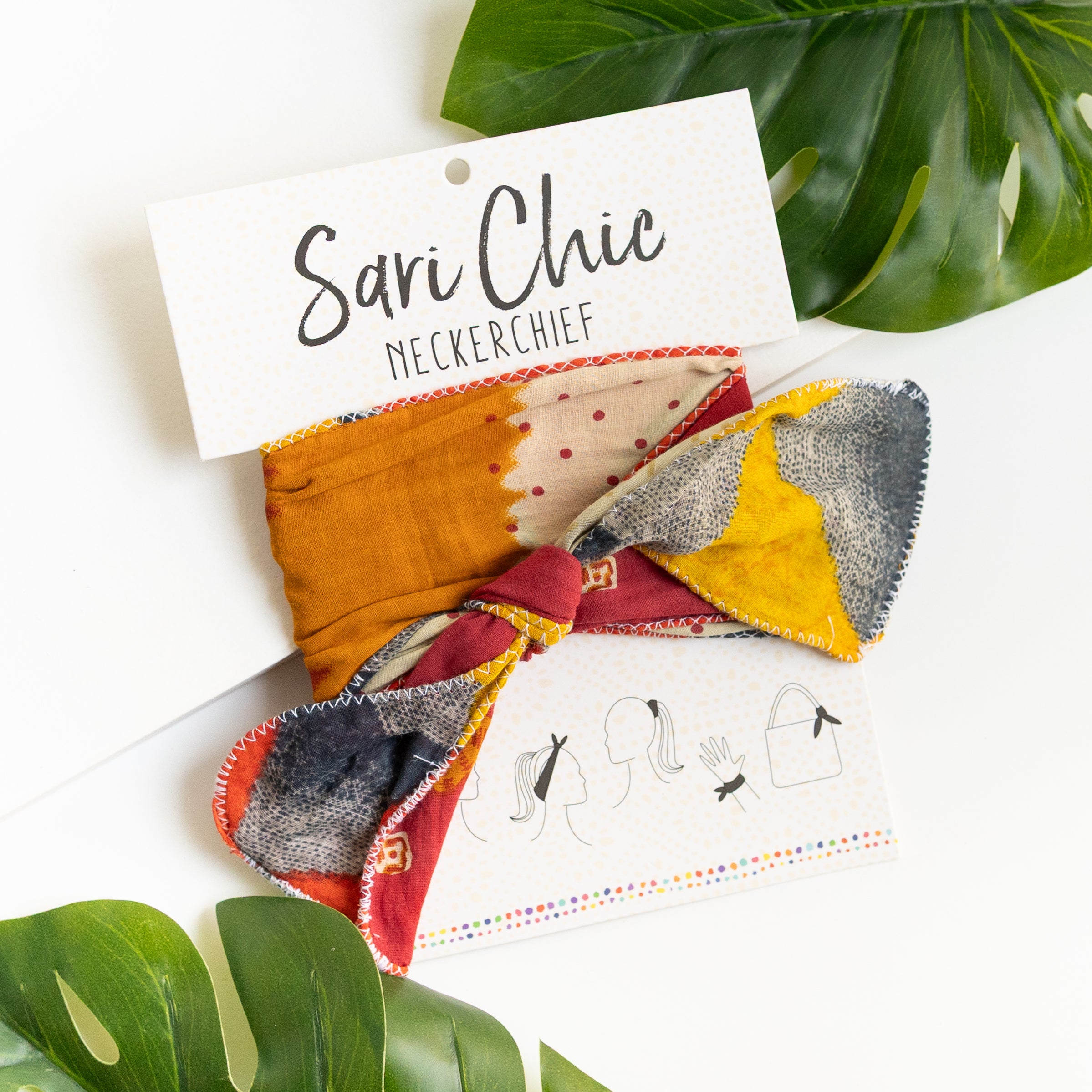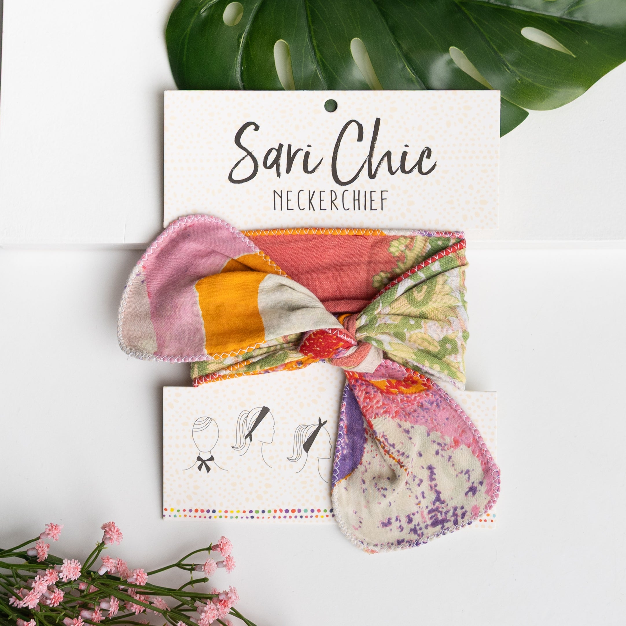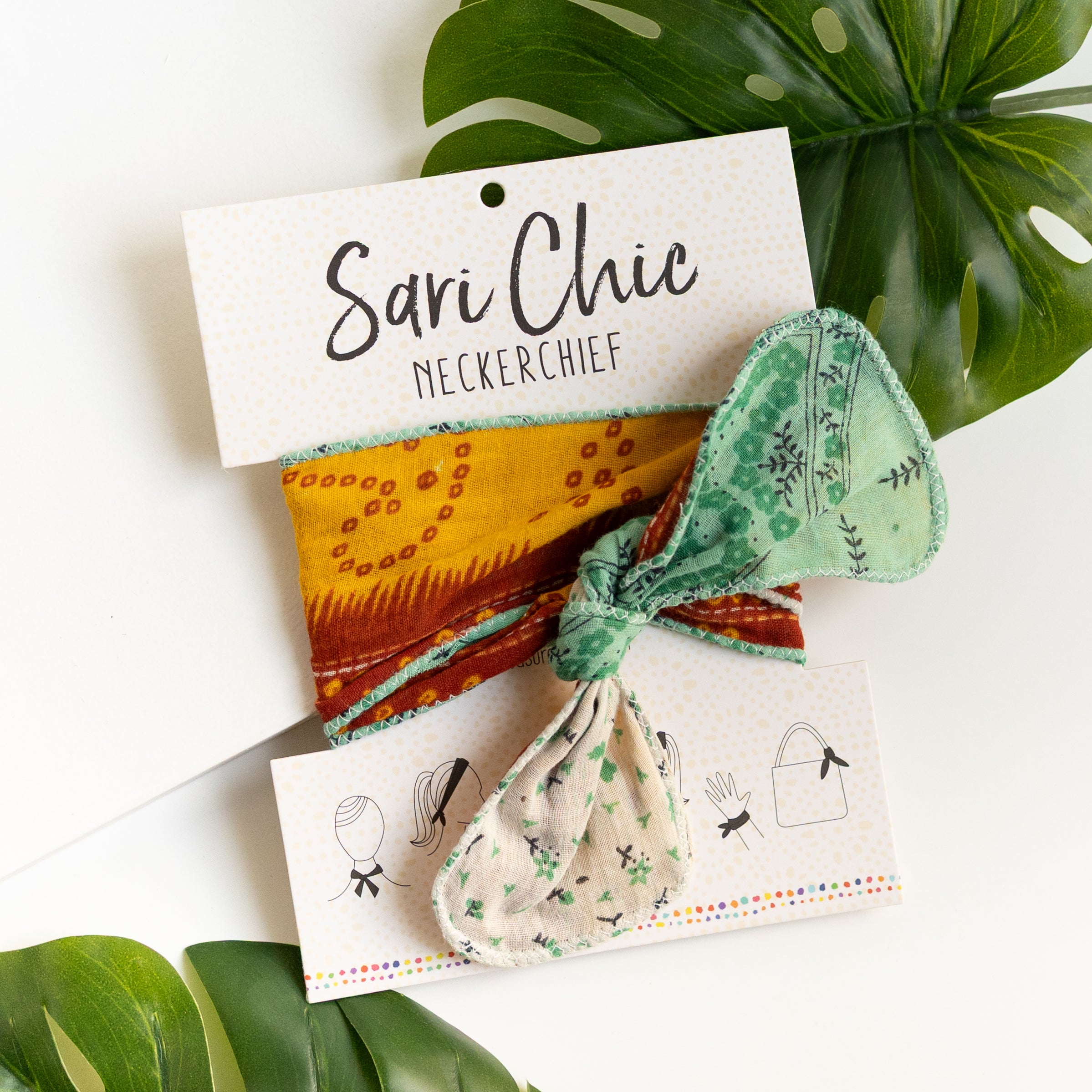 This neckerchief is handcrafted from upcycled Sari textiles so it's one-of-a-kind & kind to the Earth.