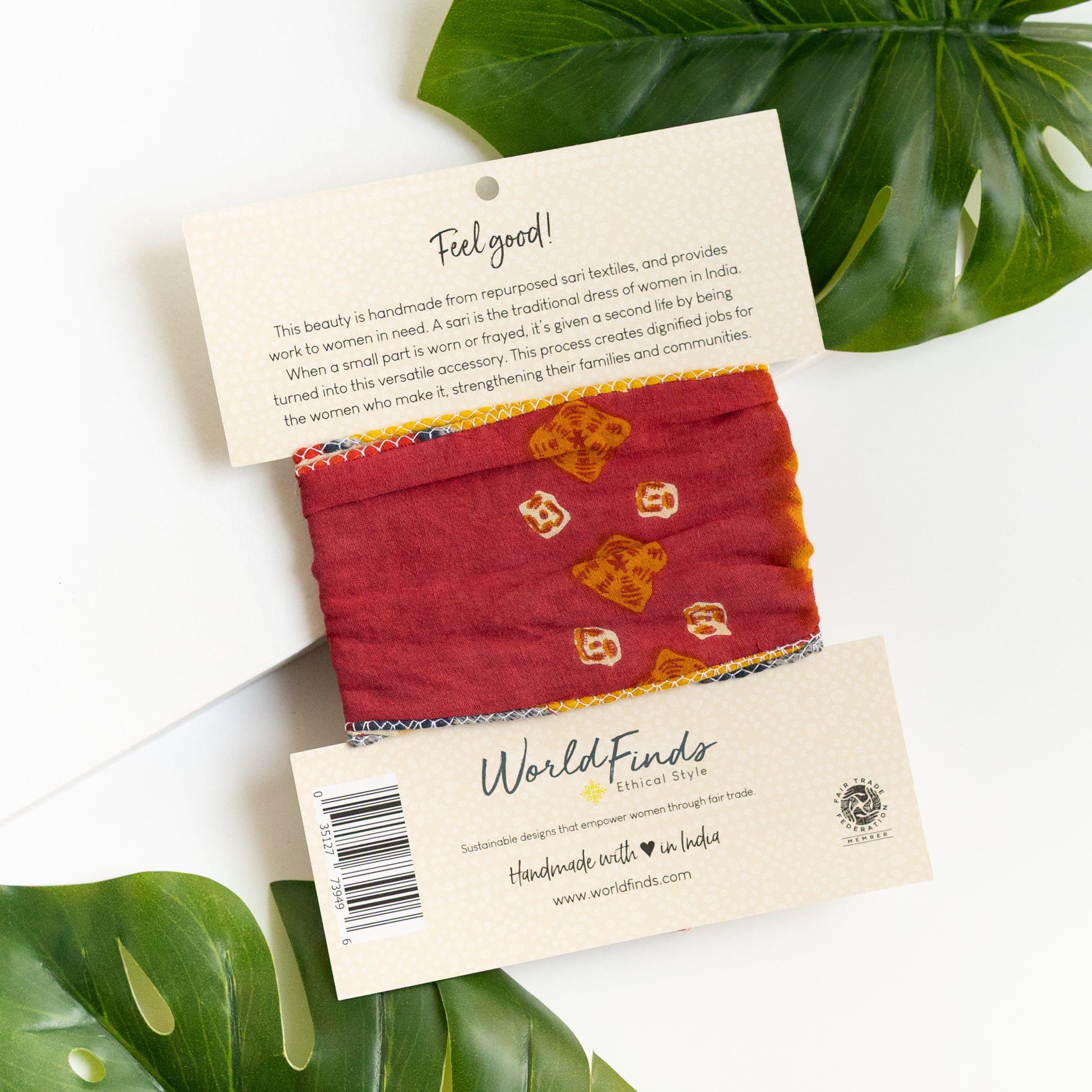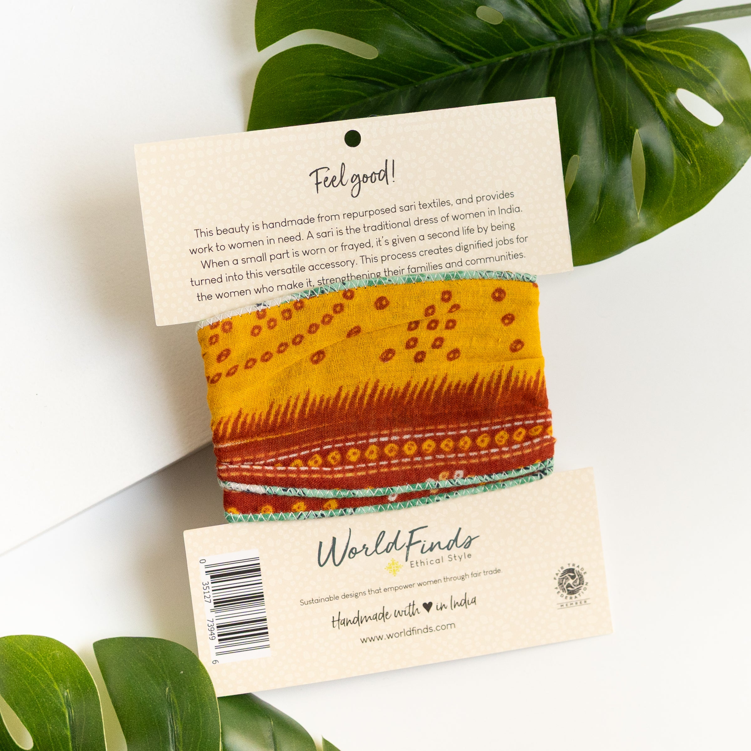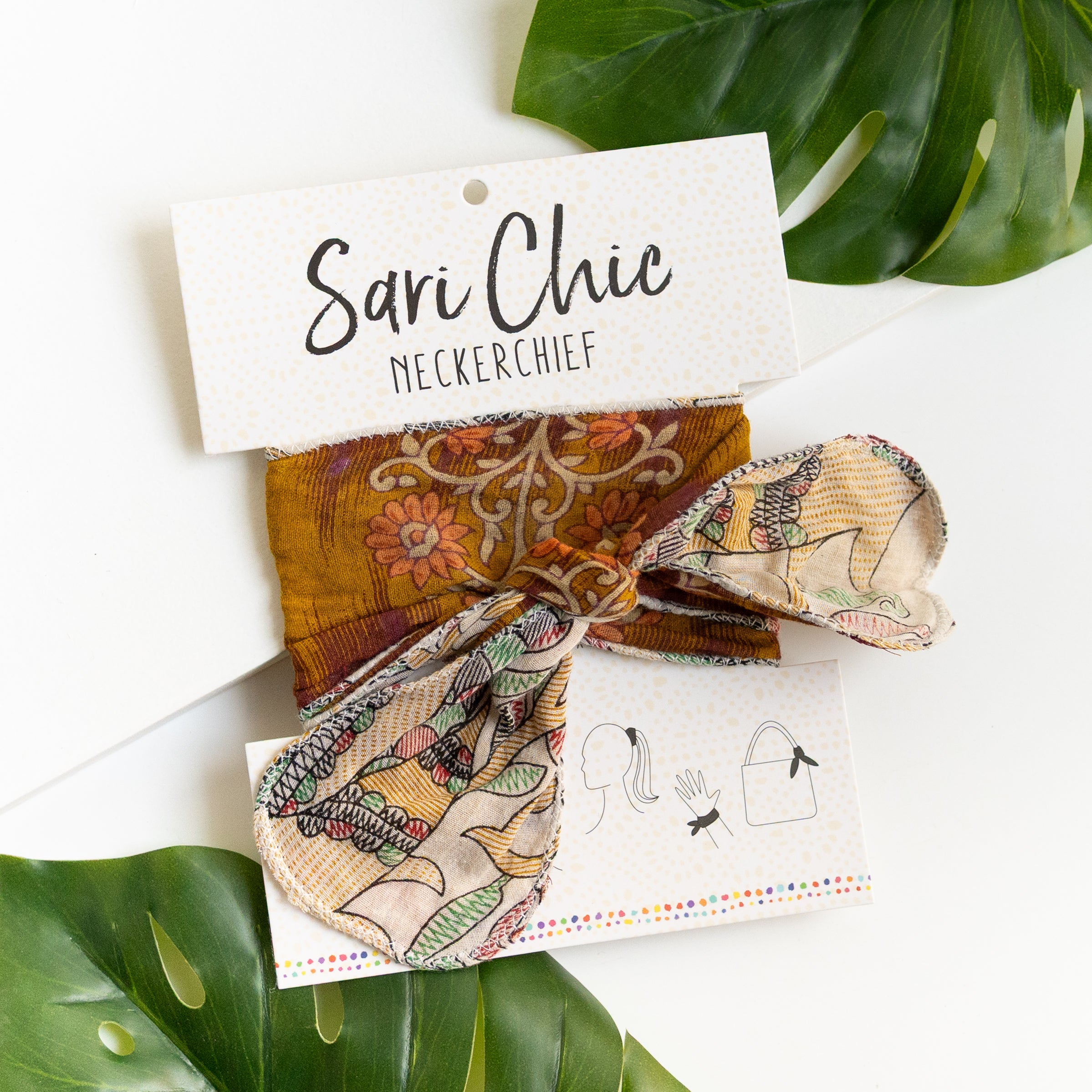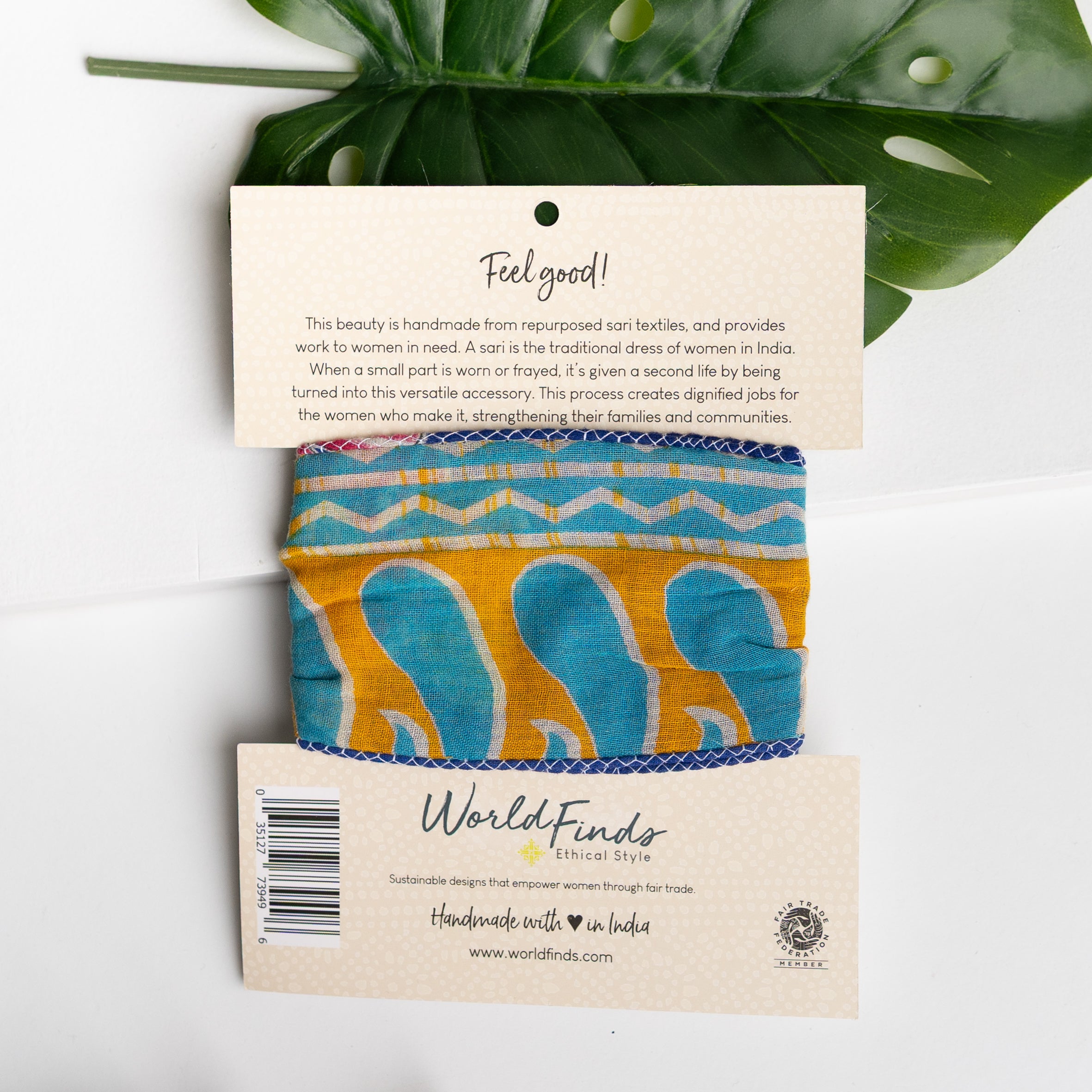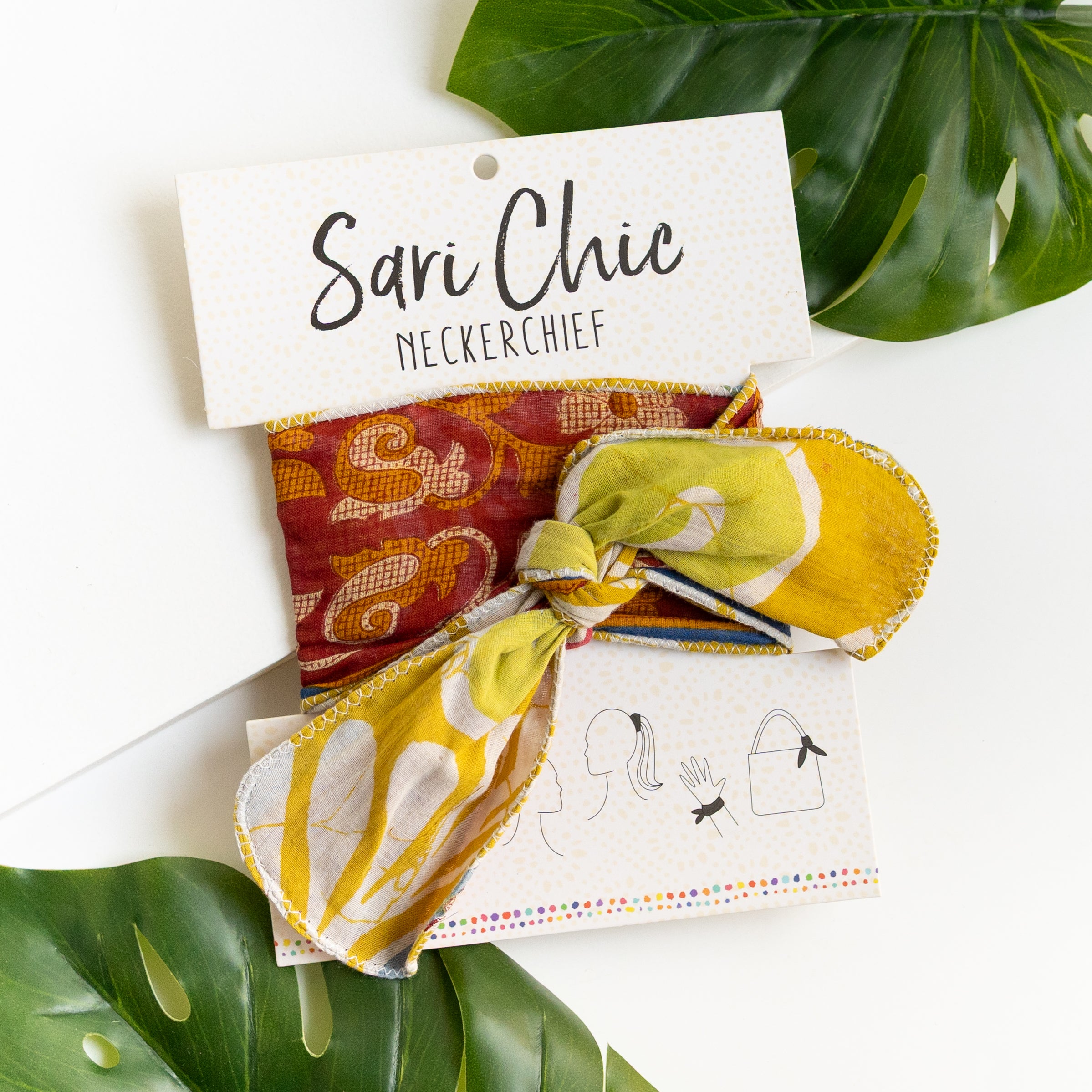This neckerchief is handcrafted from upcycled Sari textiles so it's one-of-a-kind & kind to the Earth.