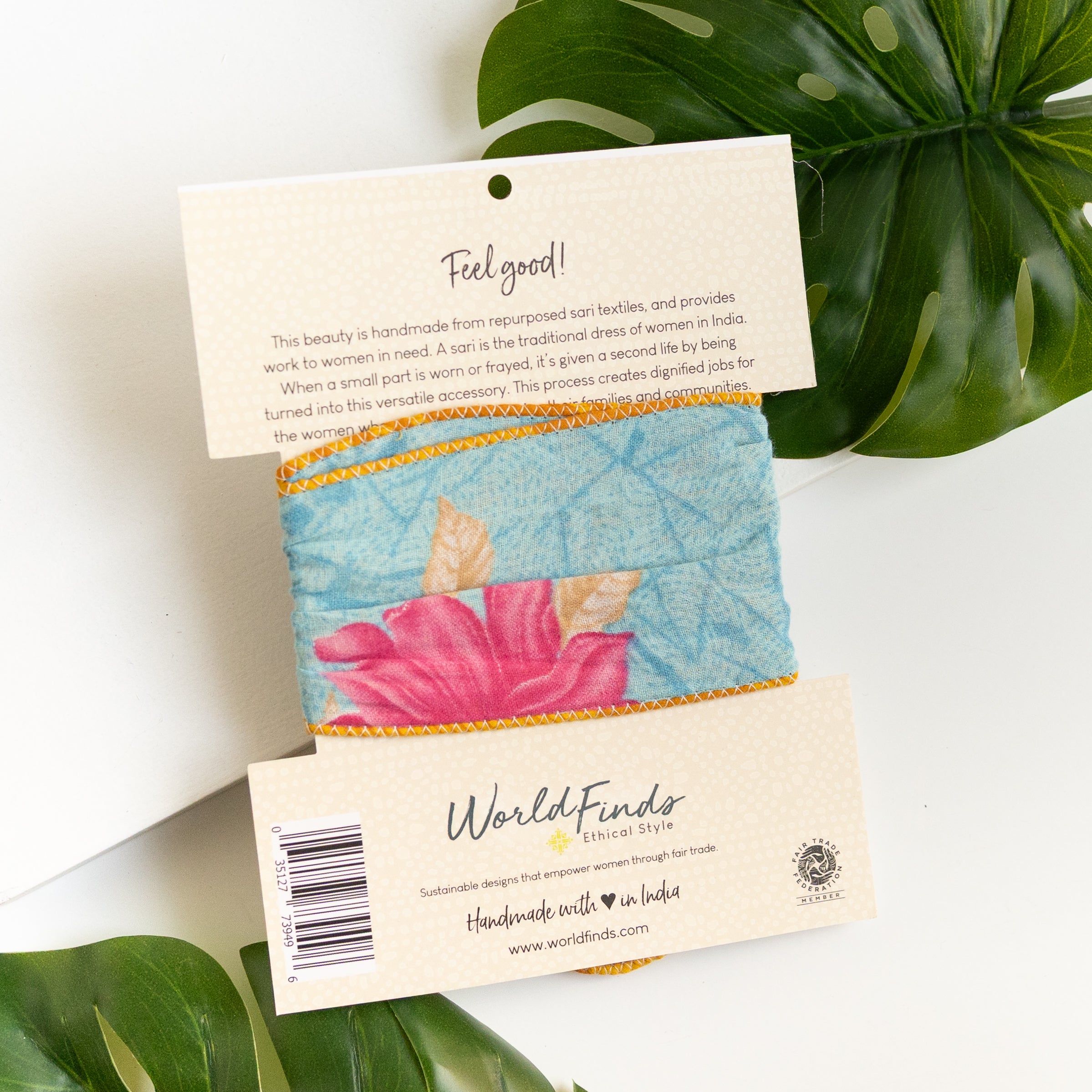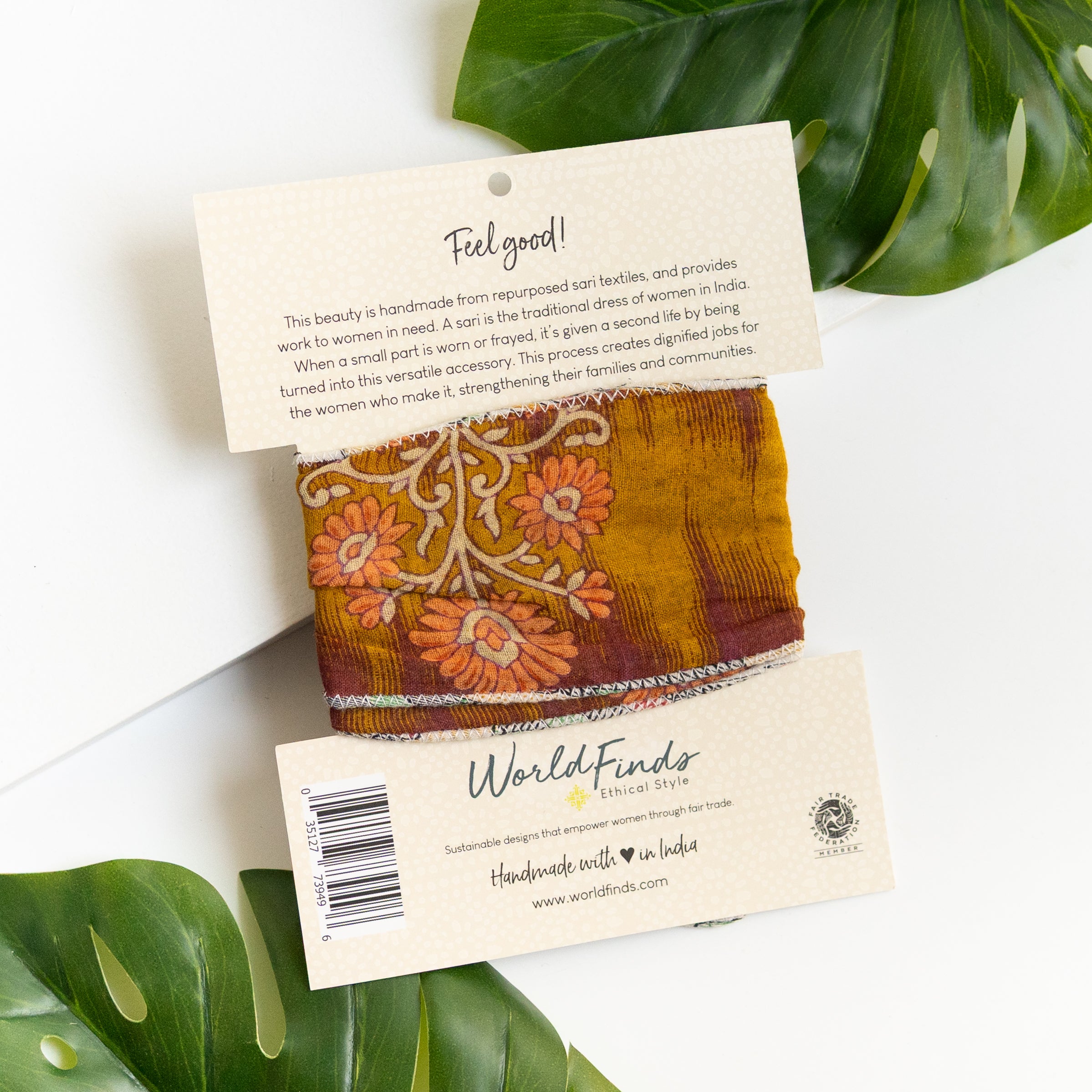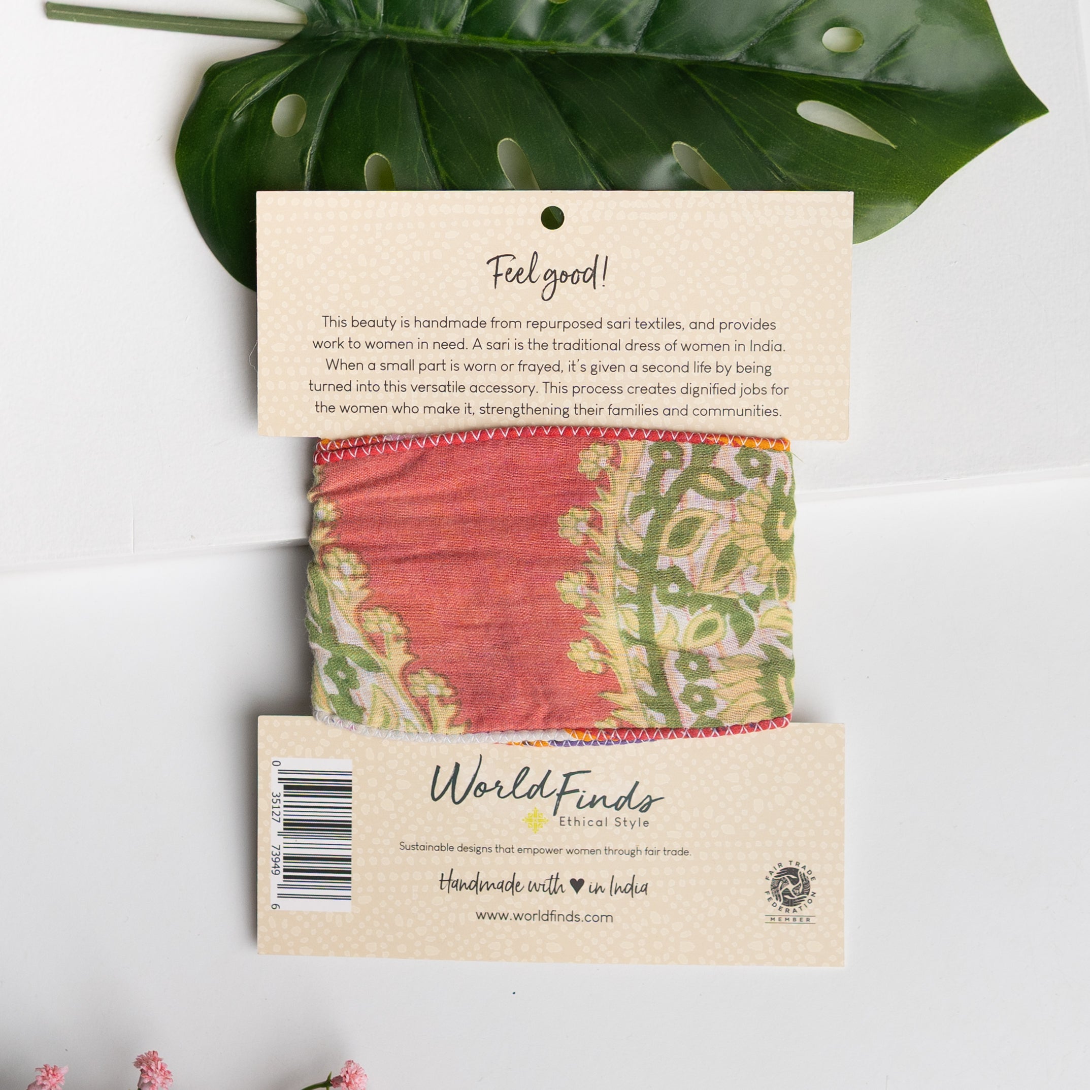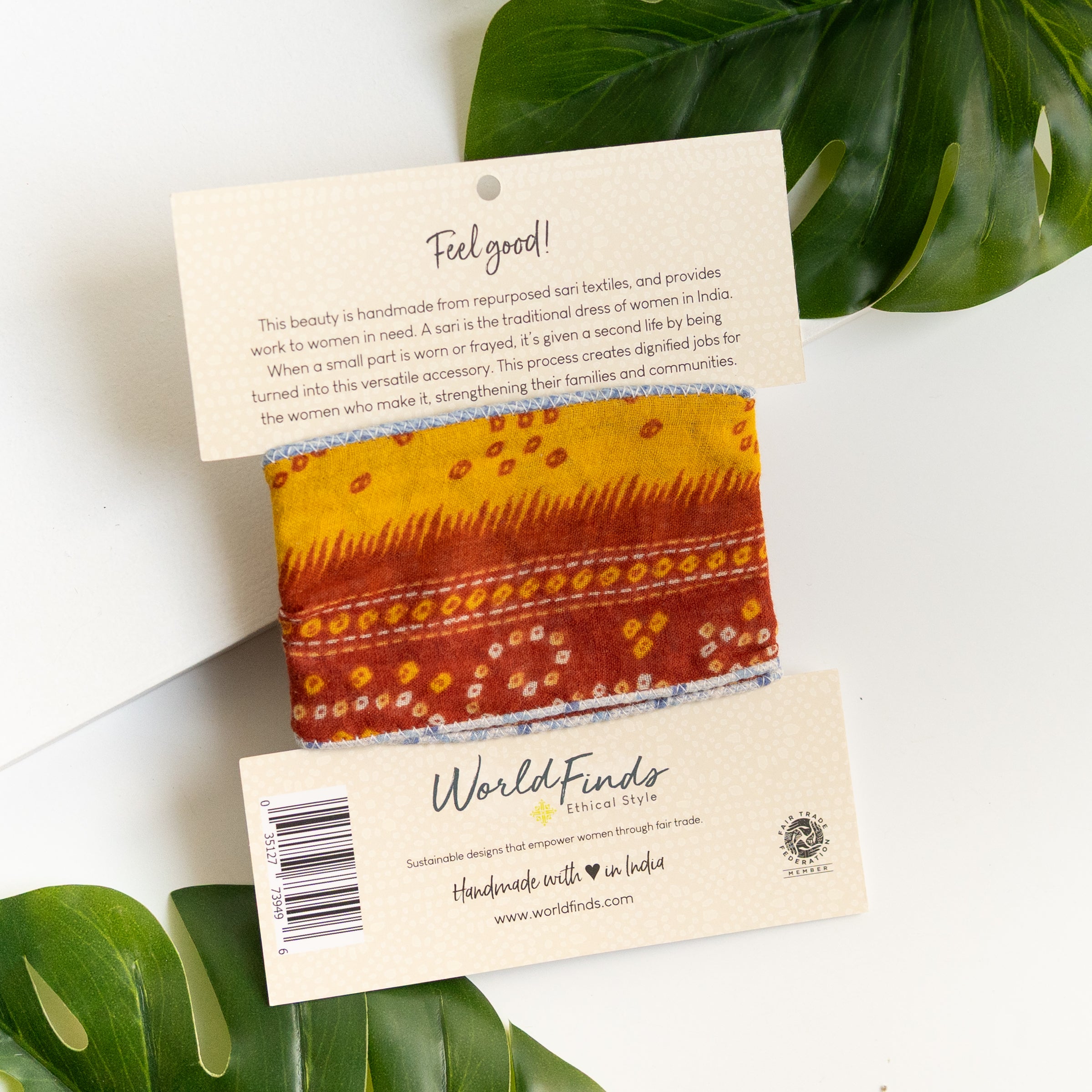This neckerchief is handcrafted from upcycled Sari textiles so it's one-of-a-kind & kind to the Earth.