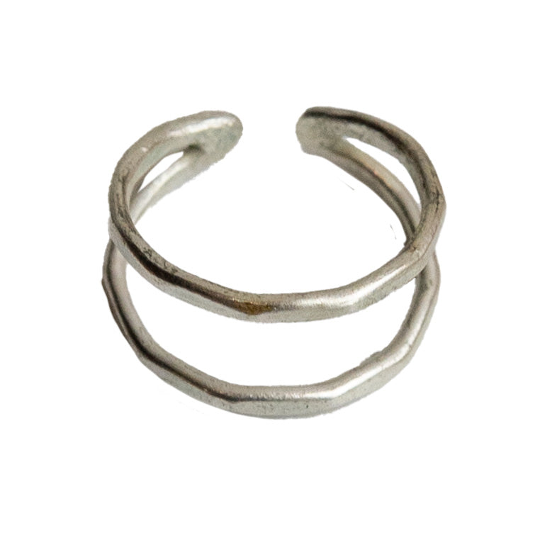 Subtly-textured matte metallic bands loop around fluidly to form this double layer ring.