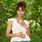 Slanting ripples adorn the front of this textured statement ring. It’s smooth surface has a satiny-matte finish, and each ring is substantial but lightweight.