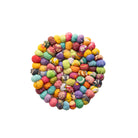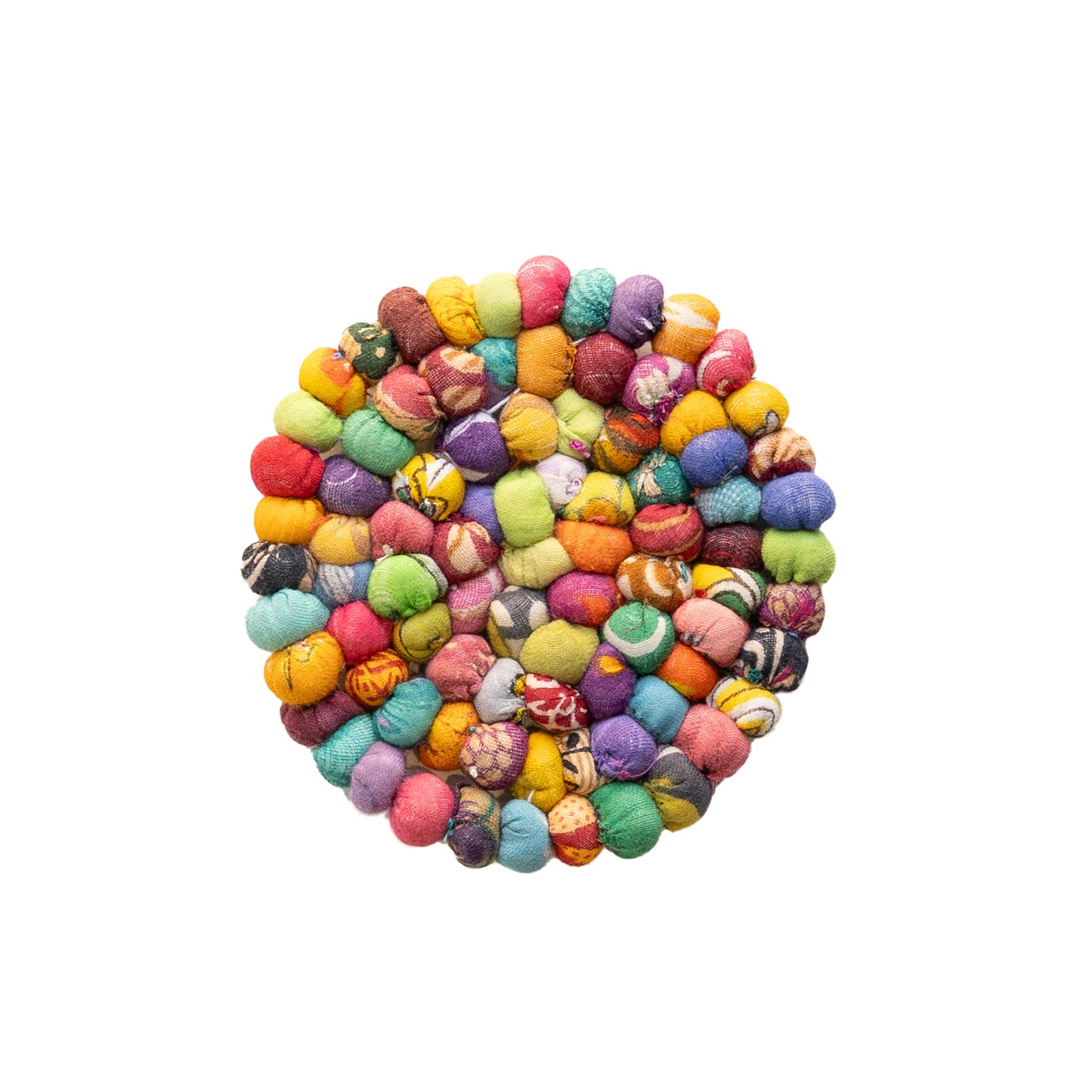 Brighten up your space with these unique circle coasters. Handcrafted from repurposed sari fabrics, these balls are stuffed with cotton and stitched together for a one-of-a-kind look. Due to the repurposed textiles, each piece's colors will vary.