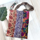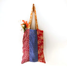 A colorful take on the classic shopper tote, this style is made from repurposed Sari textiles and folds up for easy storage. Colors and patterns are all one-of-a-kind.