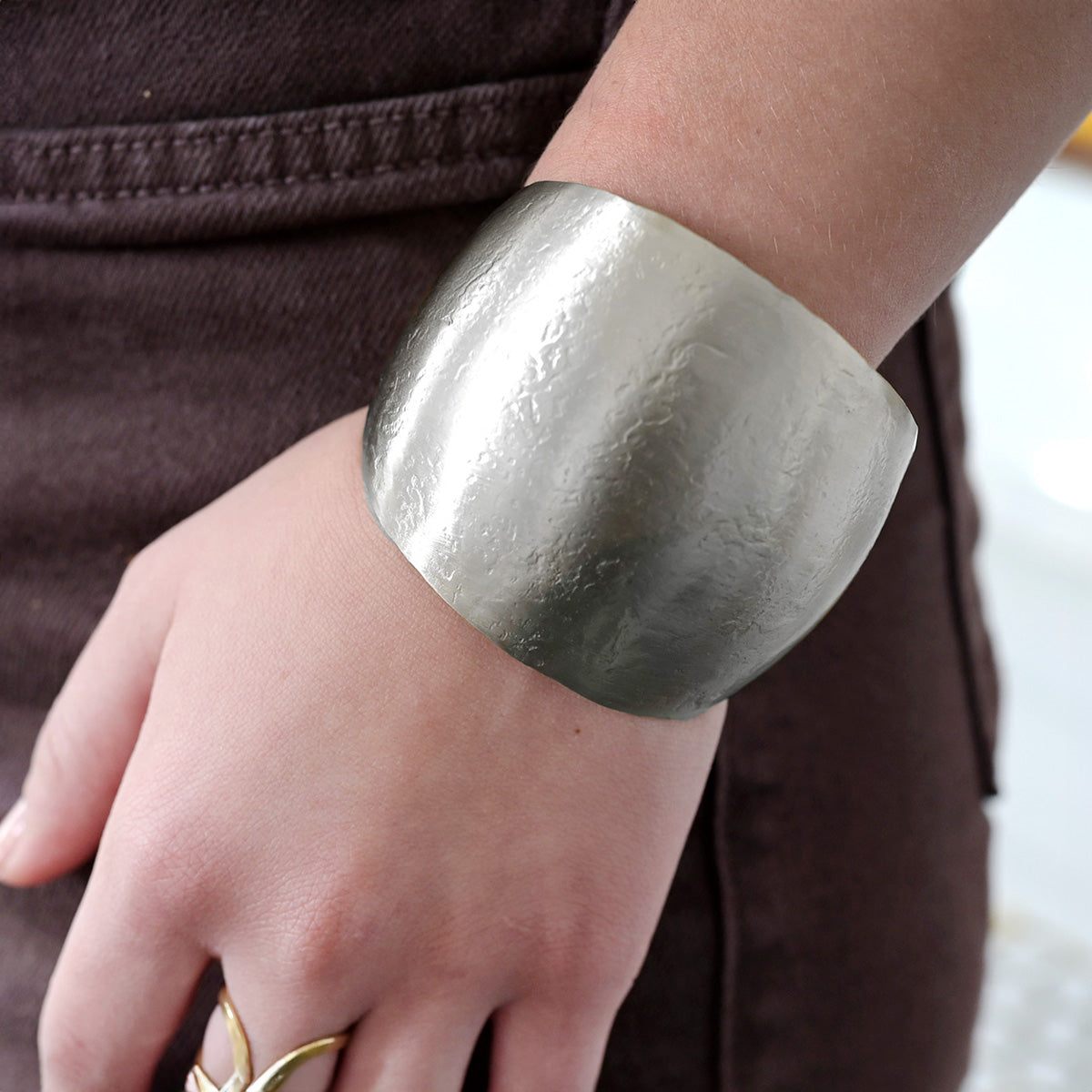 Be transported to Ancient Greece with this matte metallic cuff! With its sleek sculptural arch, it's a perfect showstopper. Complete the look with our Kantha jewelry or mix it with other metallic pieces.