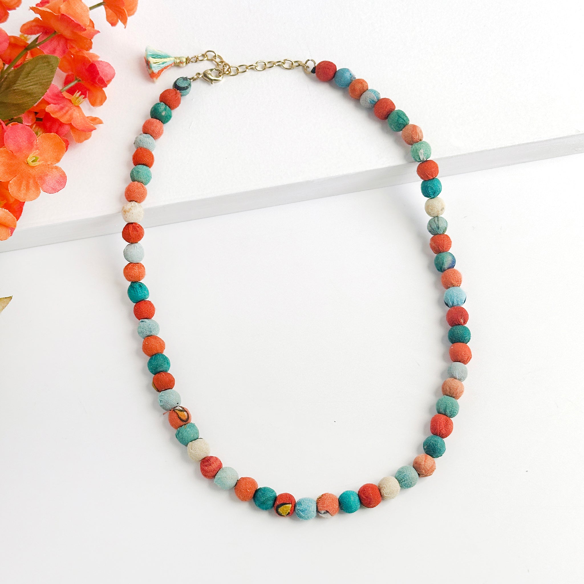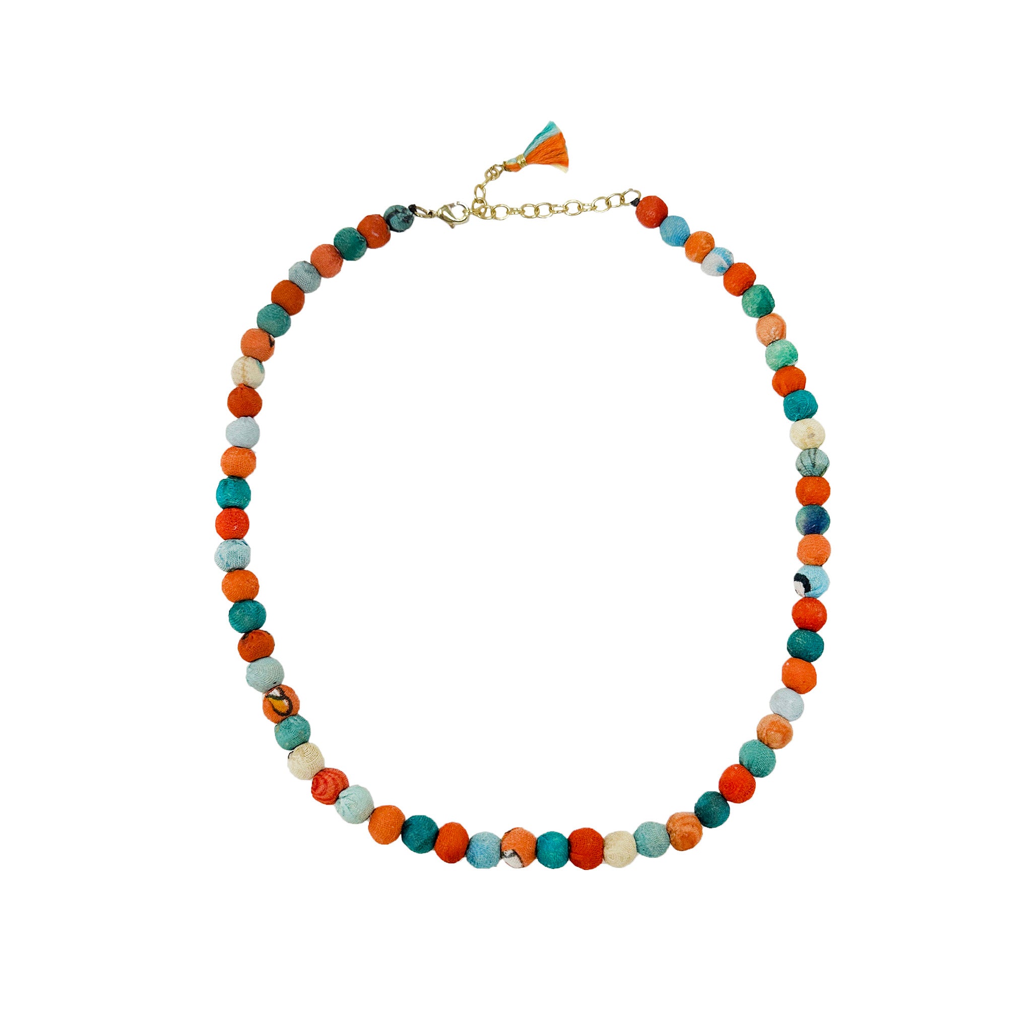 A simple strand of beads forms The Kantha Capri Classic Necklace and adds a delicate burst of color to any outfit. It's thoughtfully crafted from reclaimed Kantha & Sari textiles that have been hand-sorted, so each piece is slightly different.