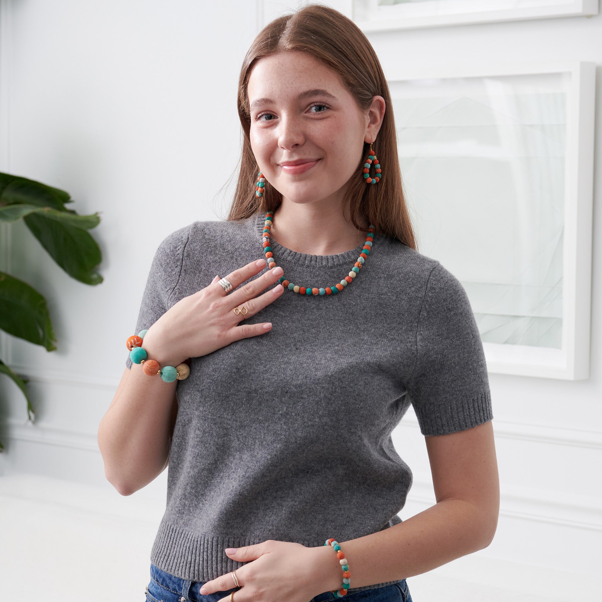 Inspired by the sparkling blue waters and sunkissed landscape of the remote island in Italy, the Kantha Capri Collection features best-selling styles in shades of turquoise, coral, and cream.