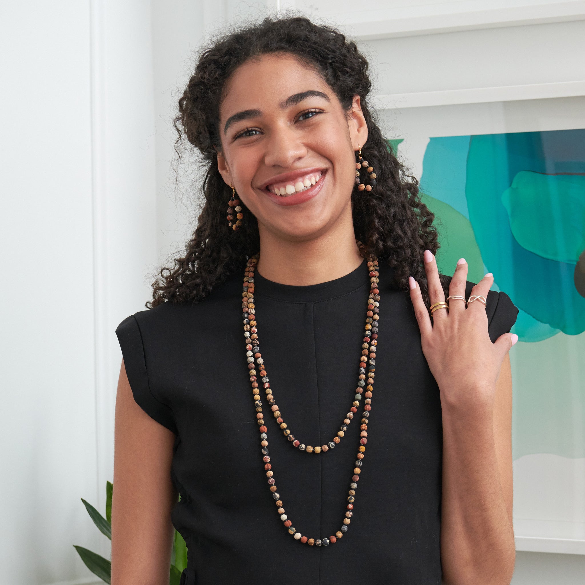 Your favorite necklace silhouette has been reimagined in warm neutral tones! Inspired by a windswept desert landscape, the Kantha Desertscape Collection features best-selling styles in tans, browns and burnt sienna hues.