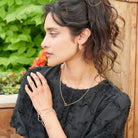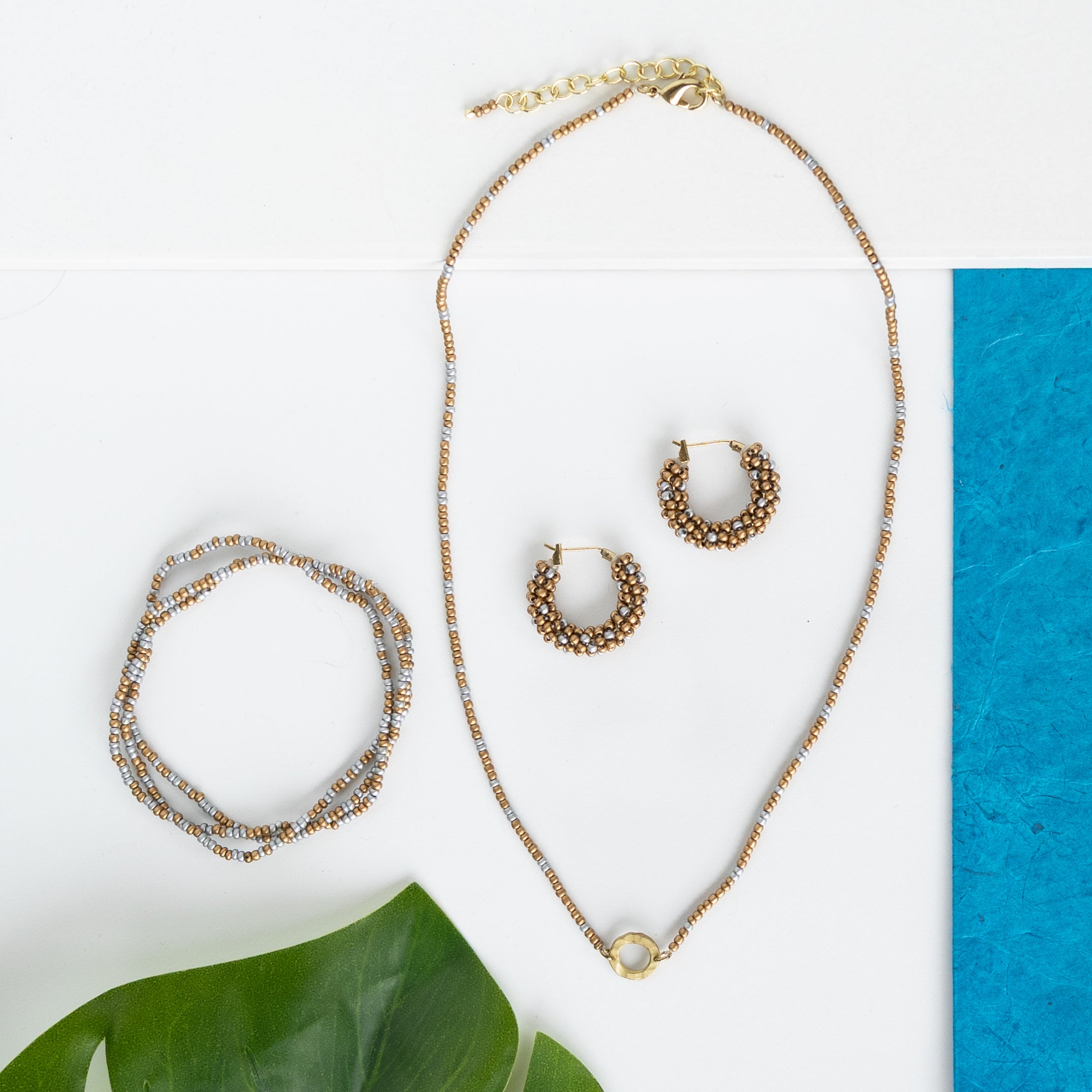 A single strand of teeny tiny matte gold-colored seed beads is highlighted with matte silver beads to create a shimmering, luminous necklace that styles beautifully with absolutely everything.