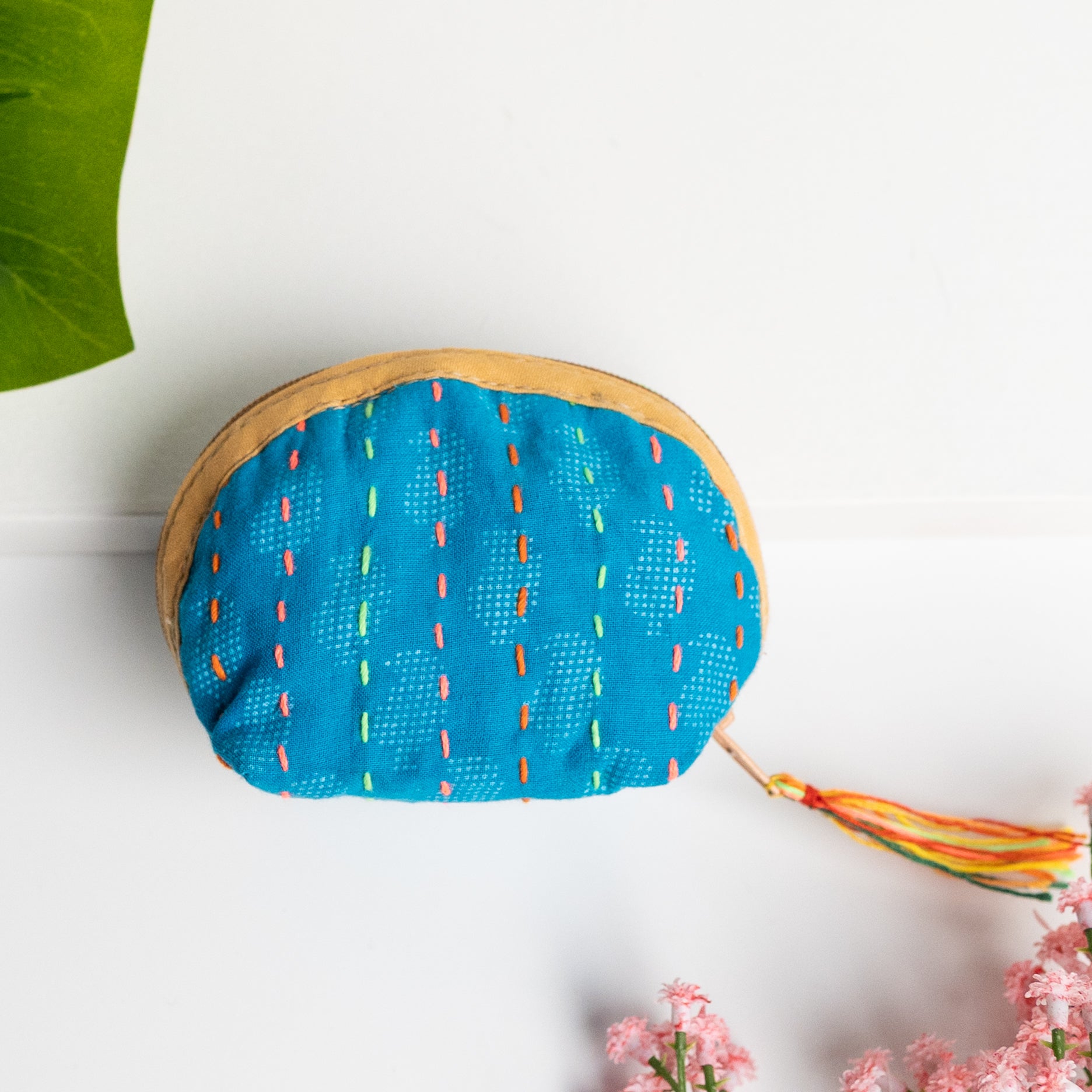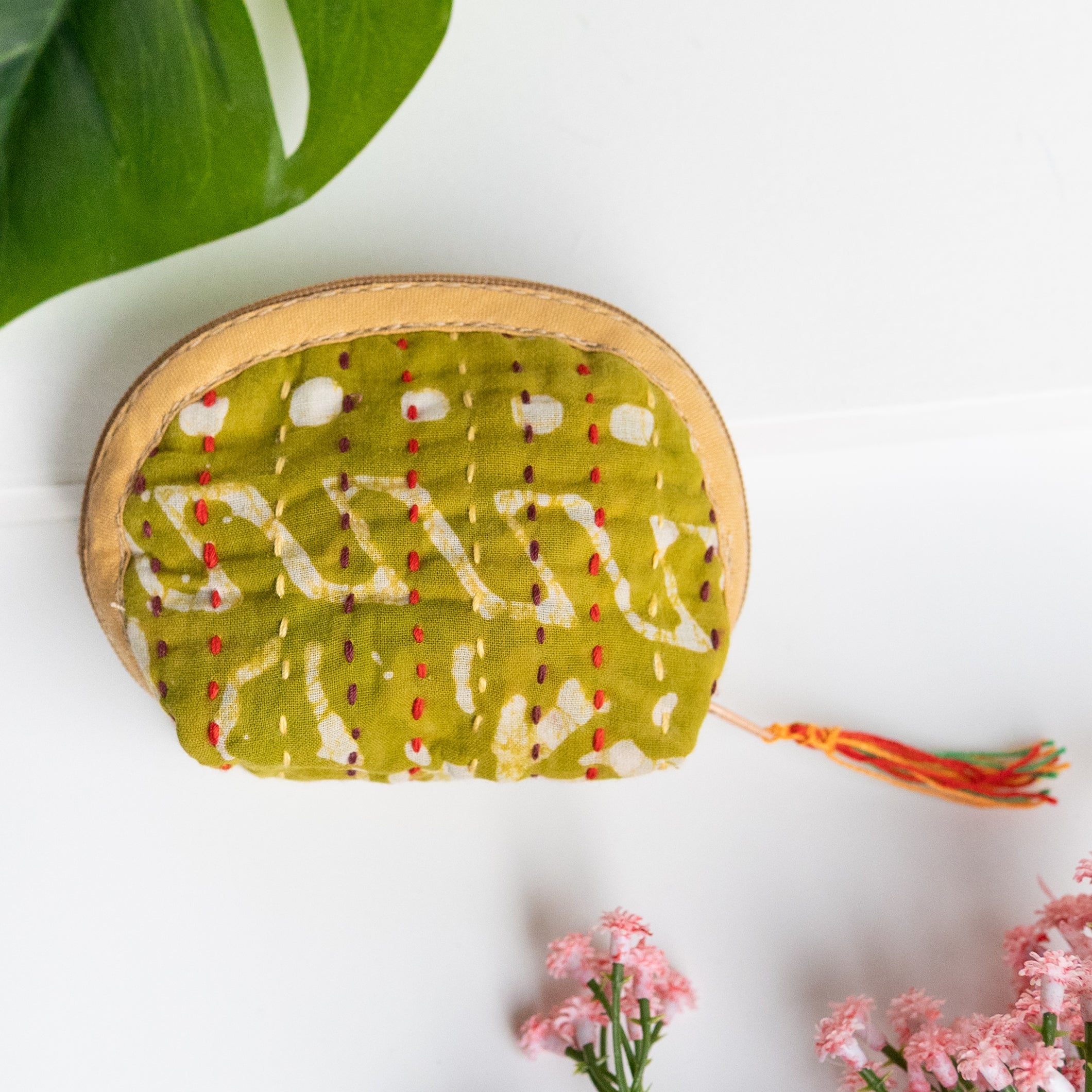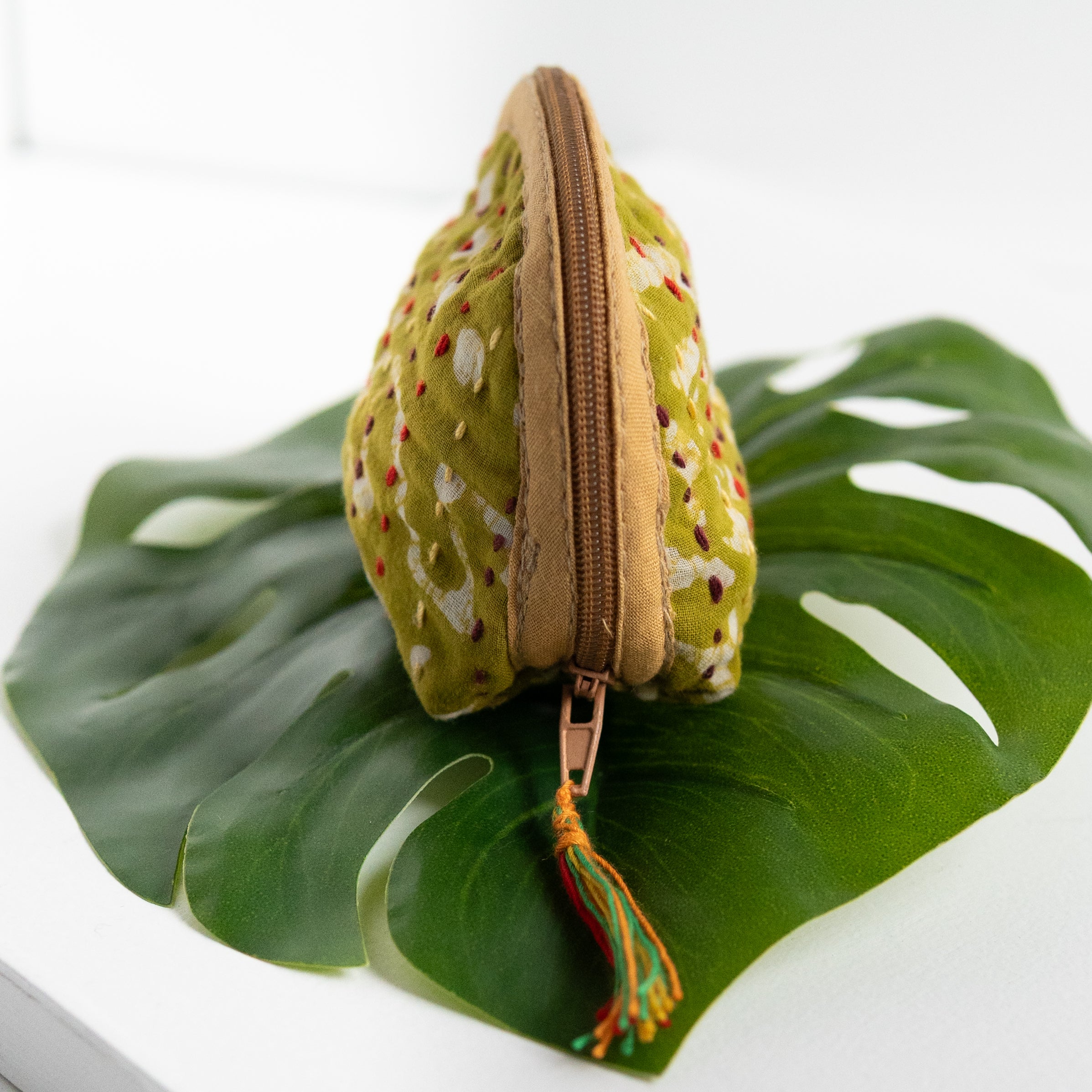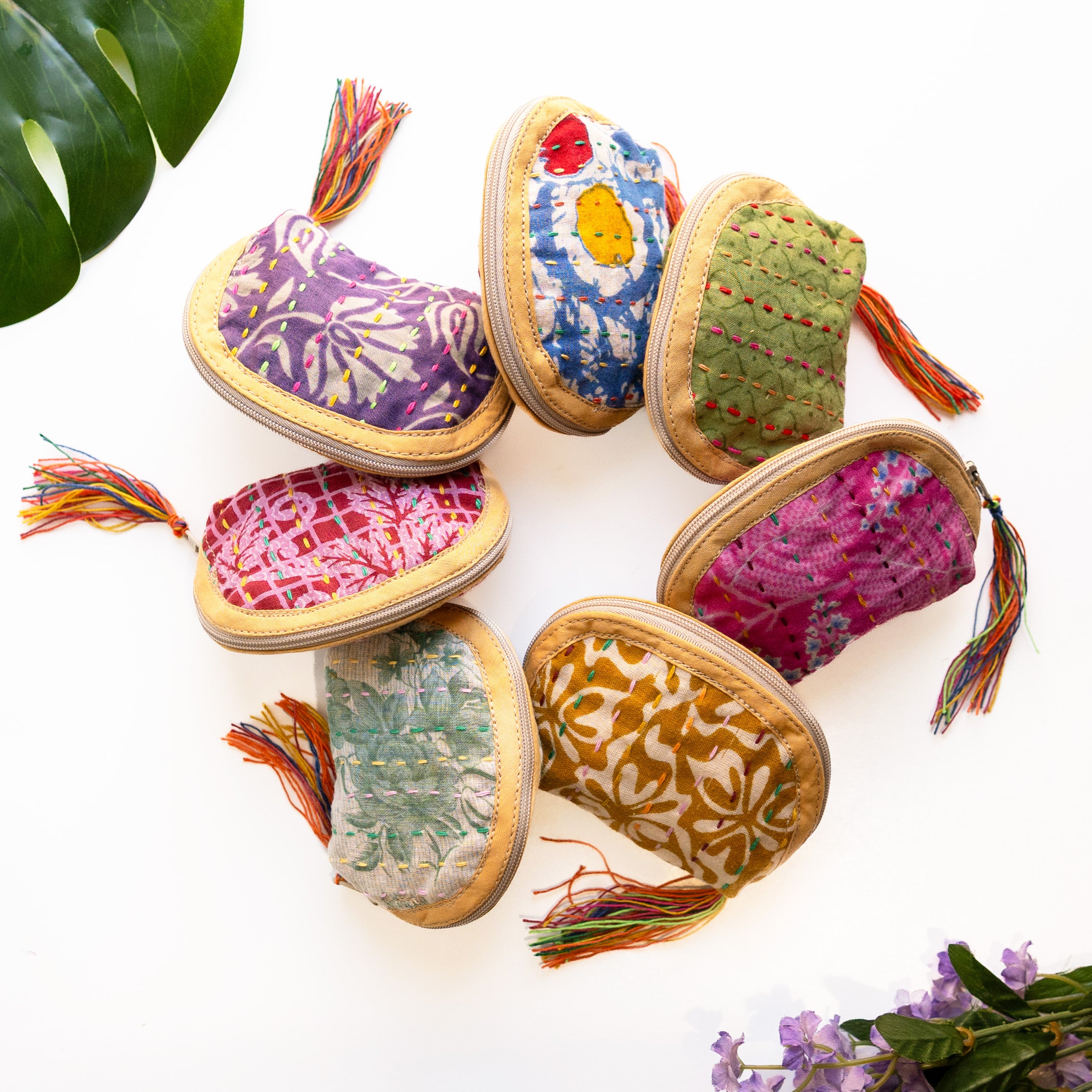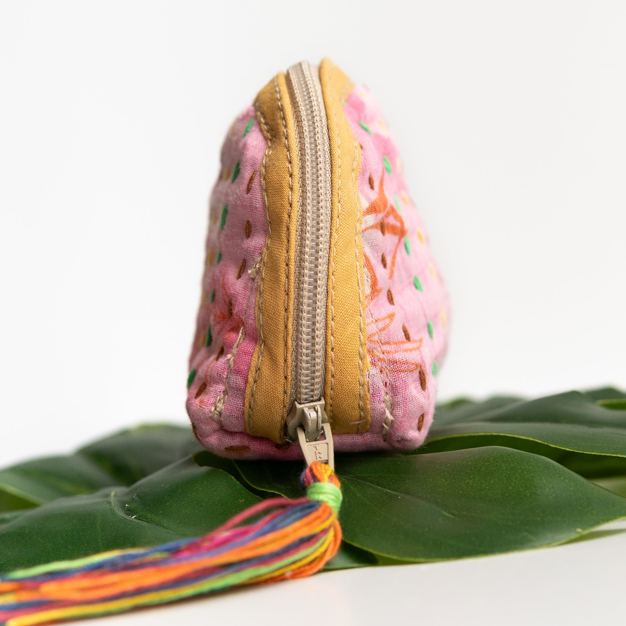 Our classic pouch just got tinier! This tiny bag is handmade from upcycled Kantha quilts and is finished with a decorative tassel on the zipper. This stash bag is perfect for organizing small cosmetics, headphones, or charging cords.