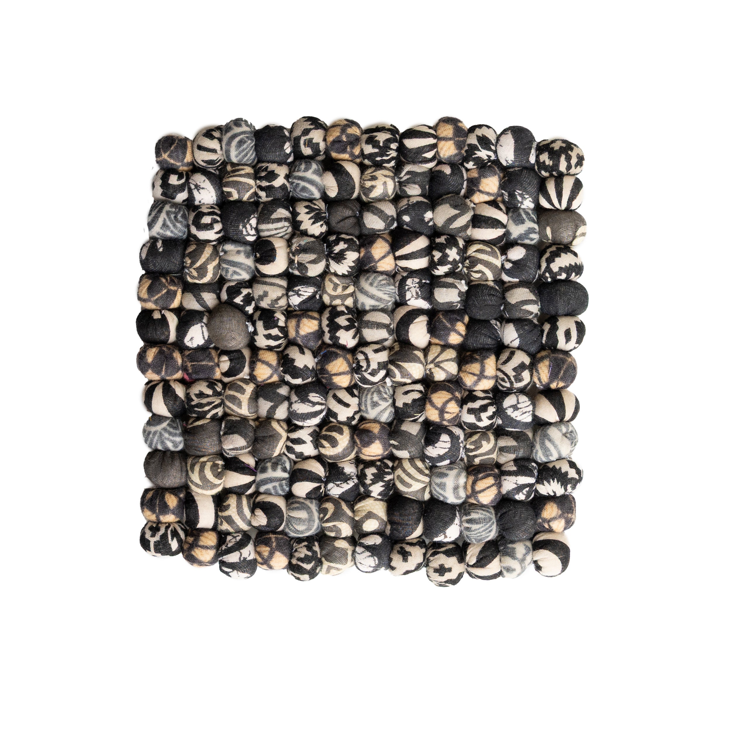 Your favorite trivet is now available in a new colorway! The Sari Home Noir Trivet will add a monochromatic touch to your home while protecting your surfaces. Every one of these handmade pieces starts with upcycled Sari textiles crafted into balls and filled with soft cotton. Vibrant colors and patterns vary with each unique design.