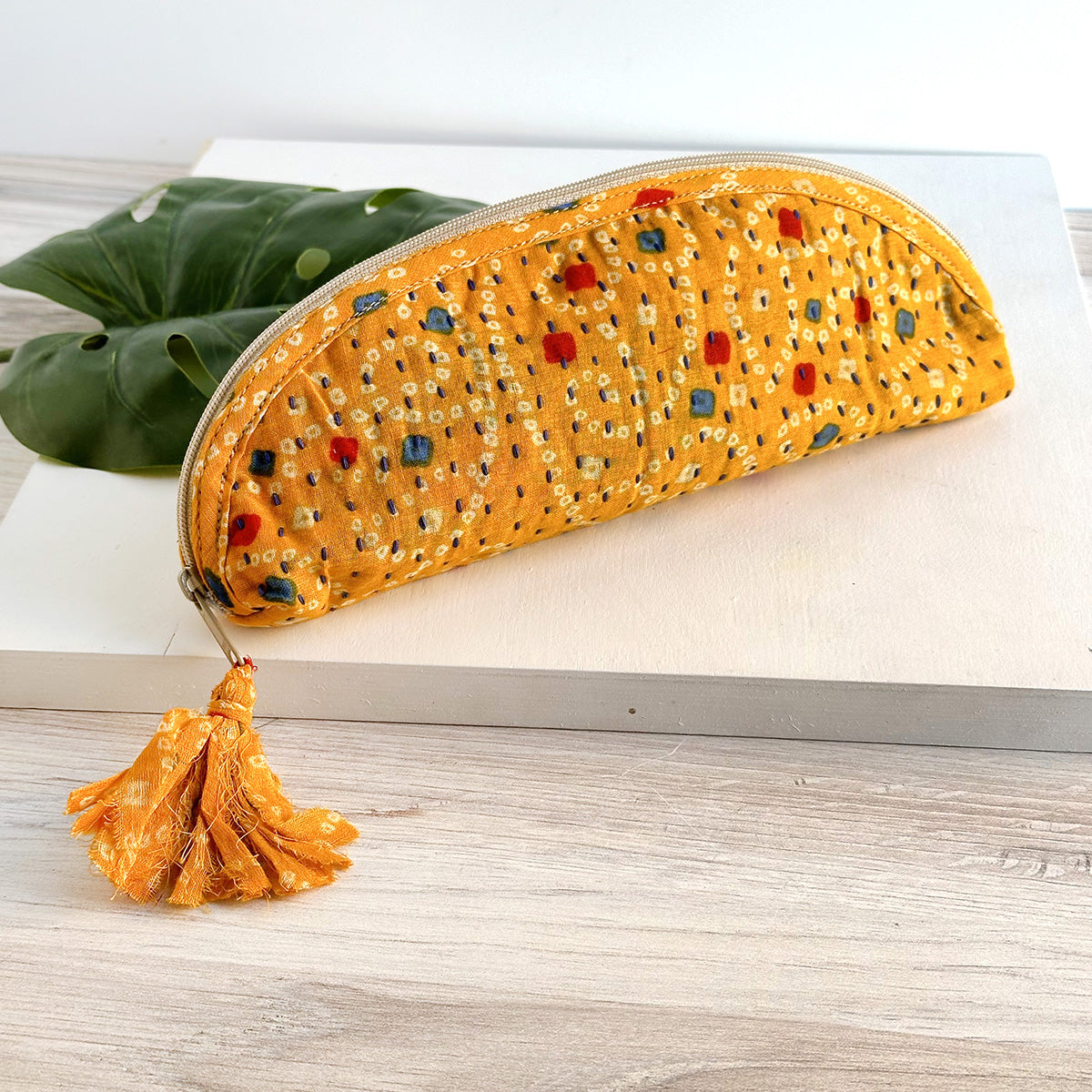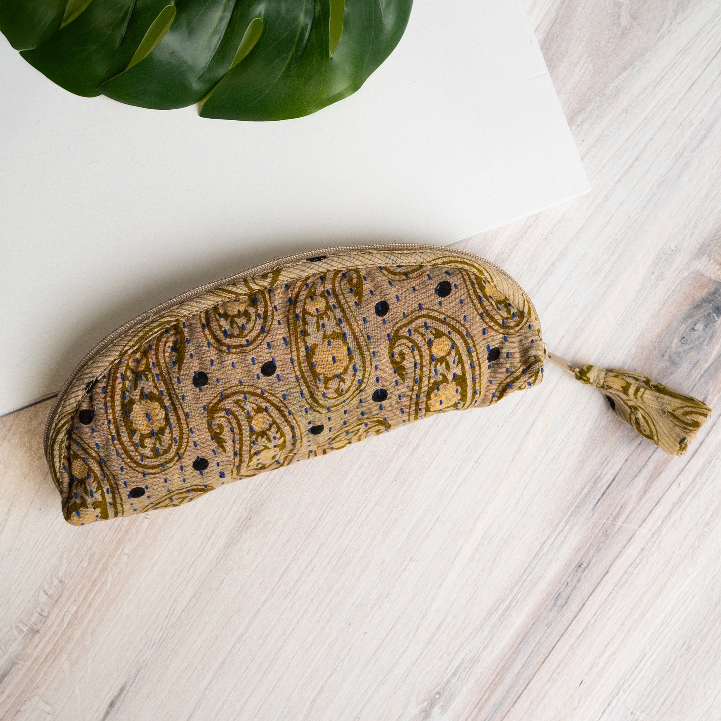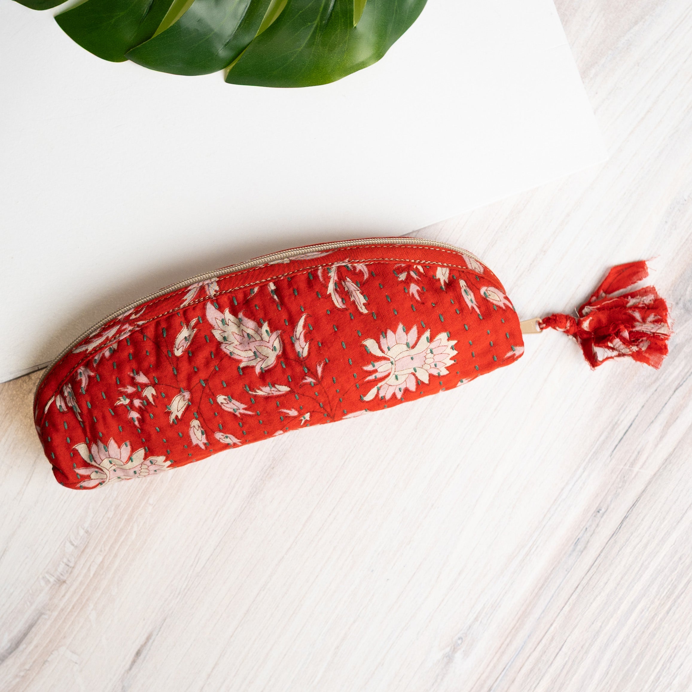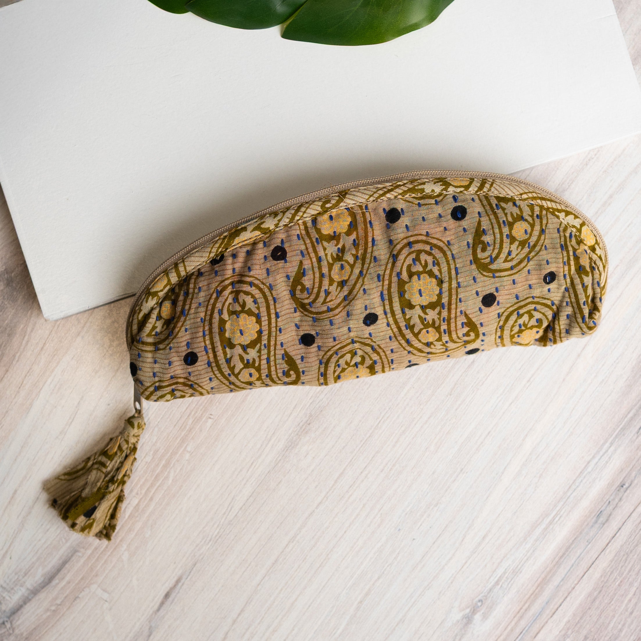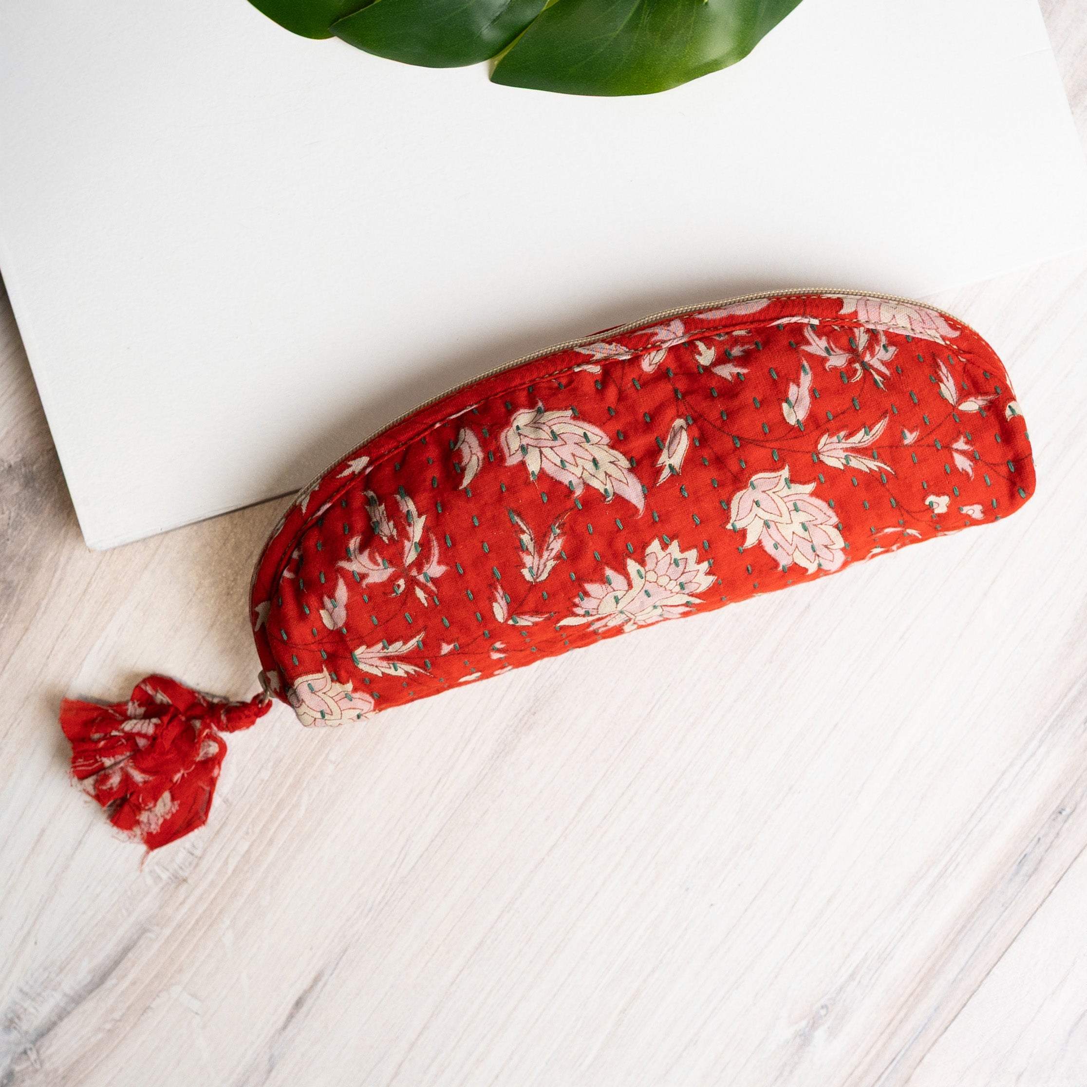 Keep your everyday essentials organized in style with the help of this Linear Pouch. Handmade from upcycled Kantha quilts, each piece is made from repurposed textiles so colors and patterns are all one-of-a-kind and will vary.
