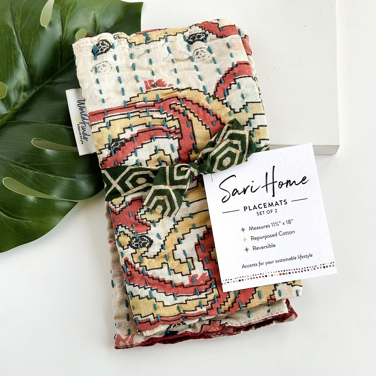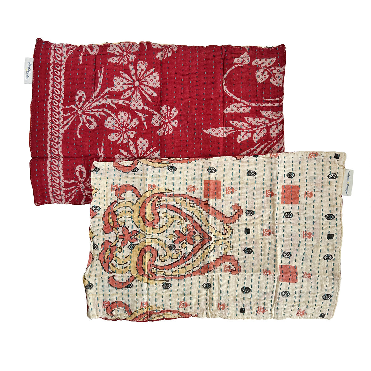Thoughtfully crafted from repurposed Kantha & Sari textiles; each set is one-of-a-kind with its own colors and patterns.
