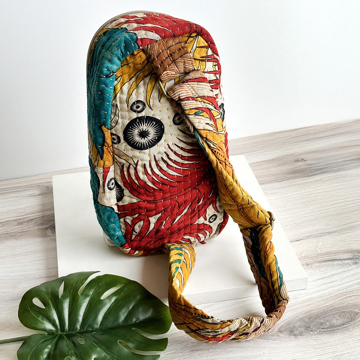 Thoughtfully crafted from repurposed Kantha & Sari textiles; each piece is one-of-a-kind with its own colors and patterns.