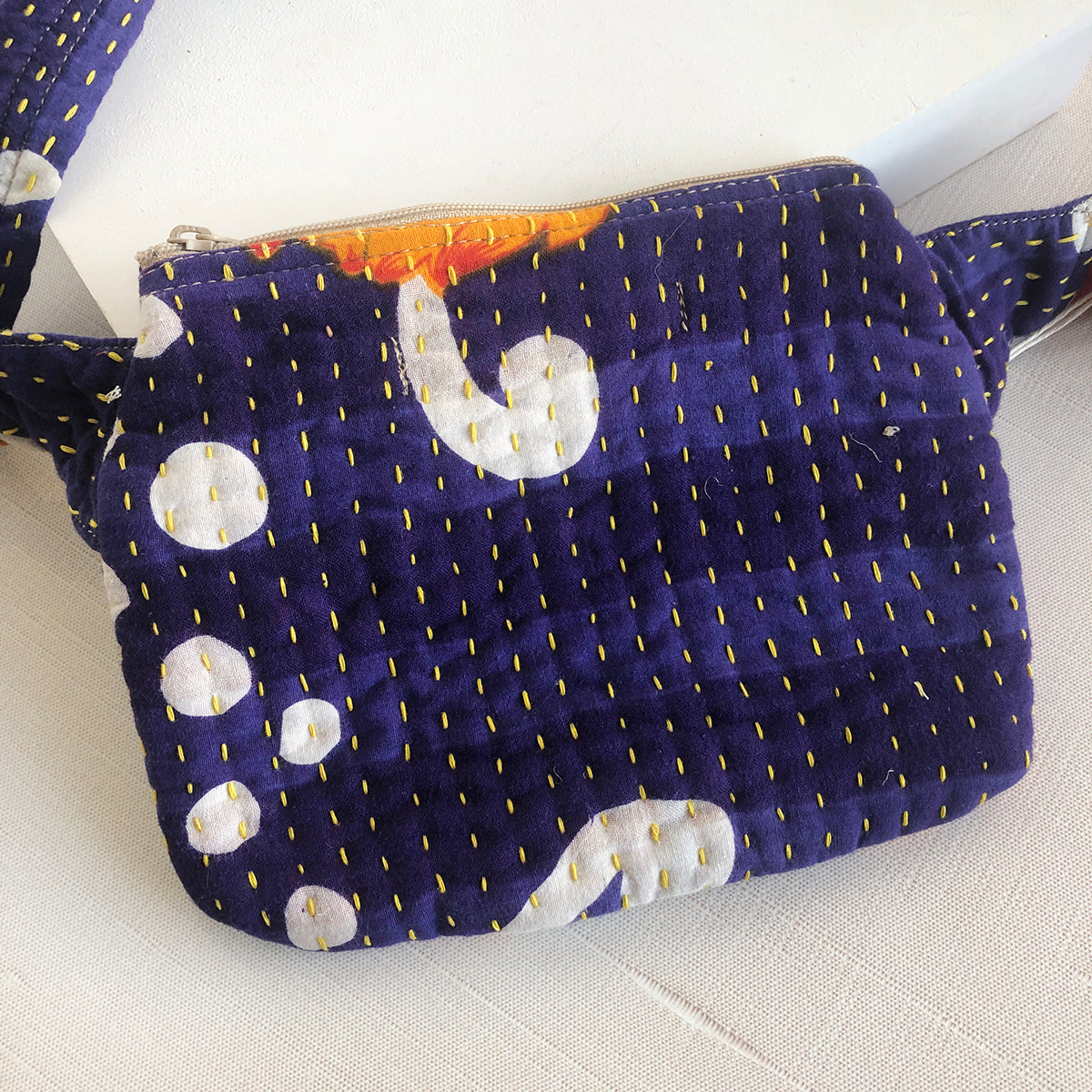 Thoughtfully crafted from repurposed Kantha & Sari textiles, the colors & patterns on the outside & inner lining of each bag will vary from bag-to-bag.
