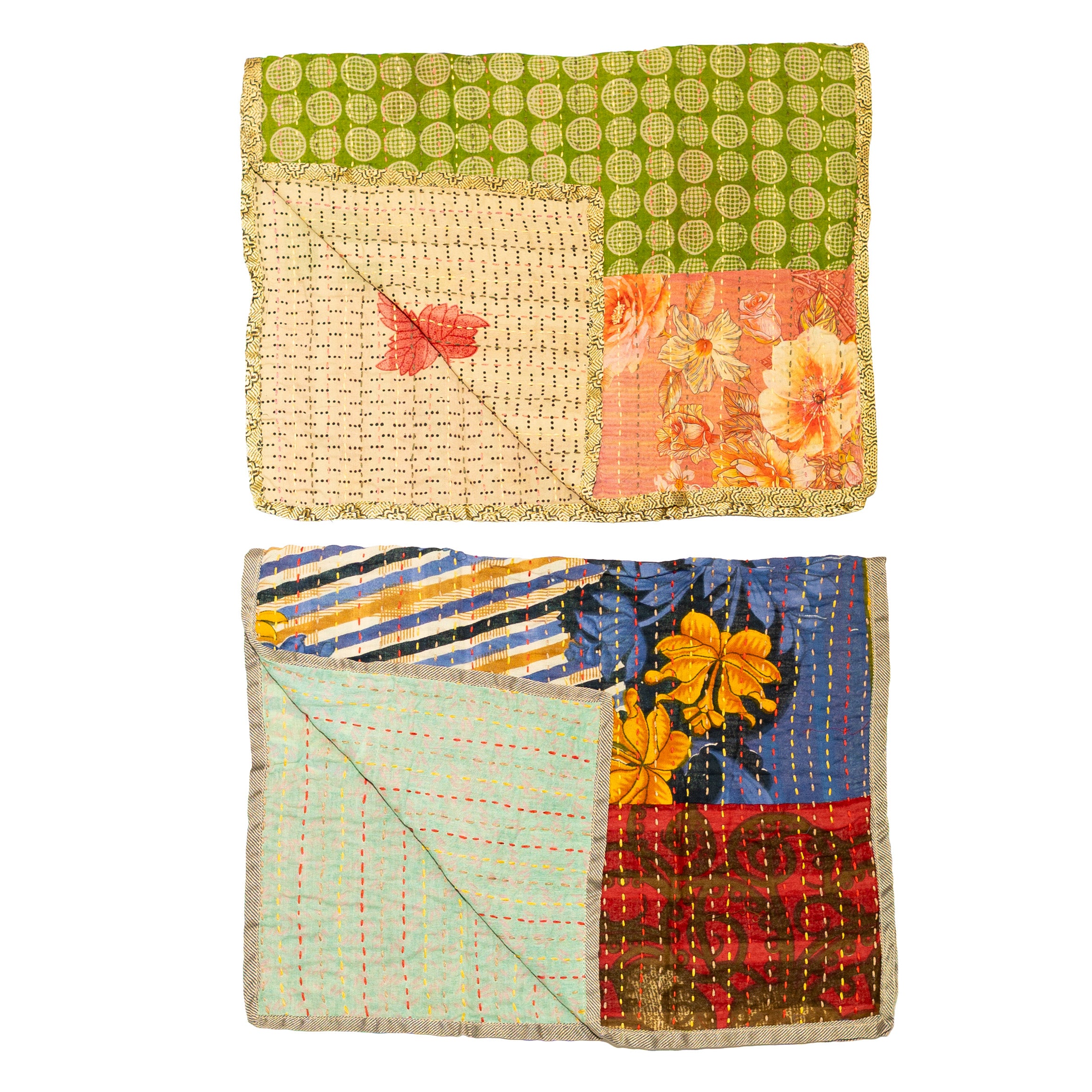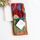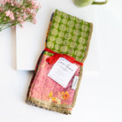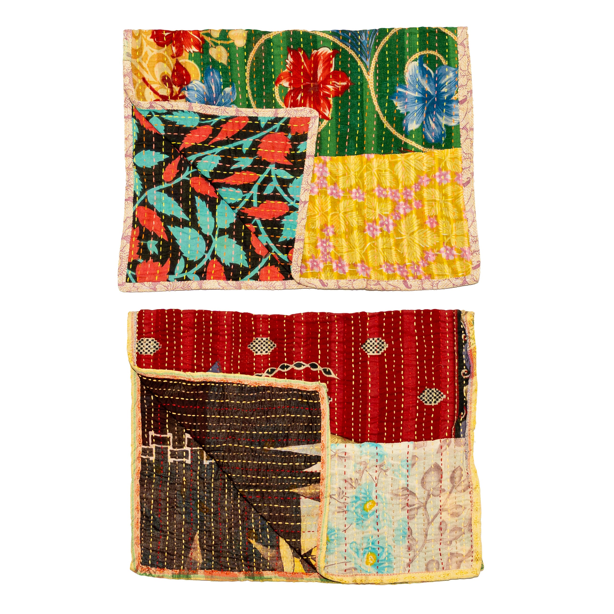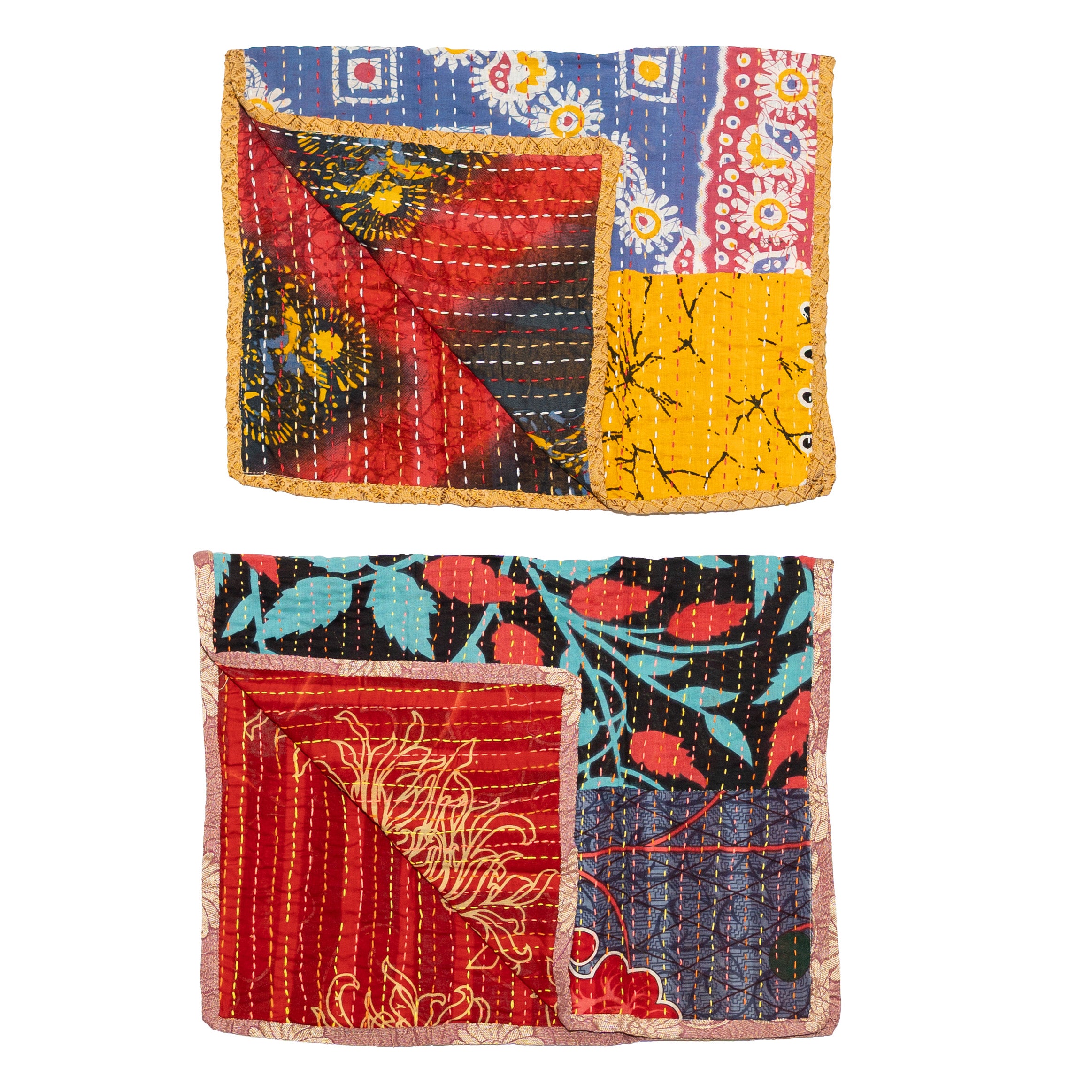 Liven up your kitchen with these unique, handmade Kantha Tea Towels. Featuring one-of-a-kind colors and patterns, each towel is crafted from repurposed Kantha quilts - a single pattern on one side and a patchwork of 3 patterns on the other. Contrast edging adds the perfect finishing touch.