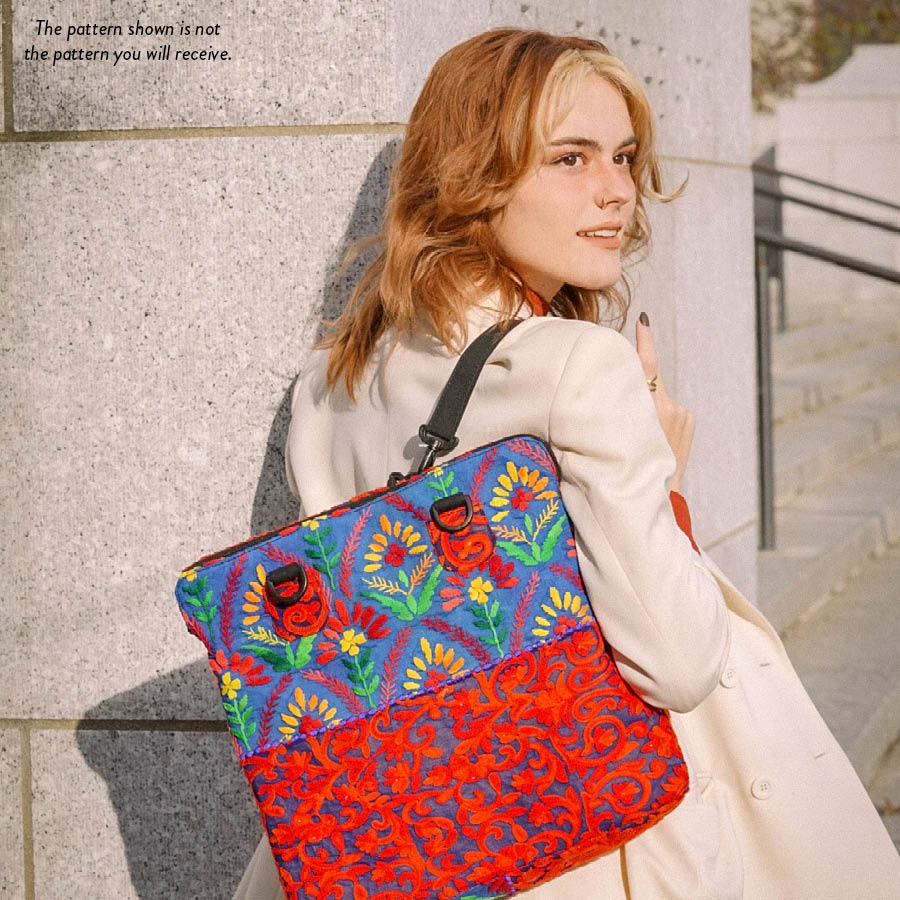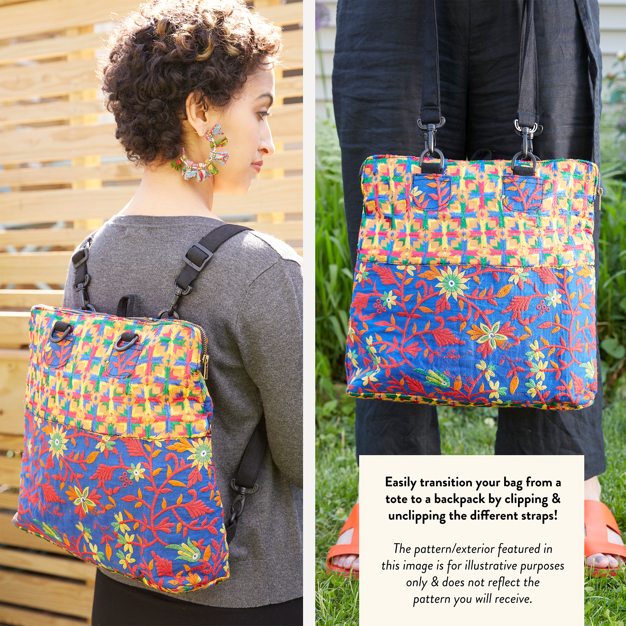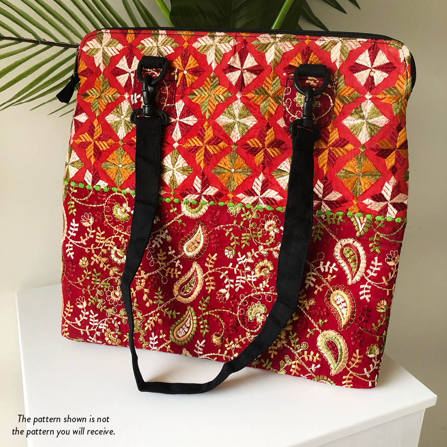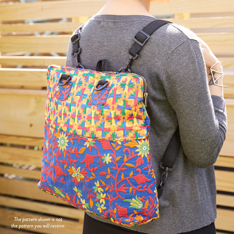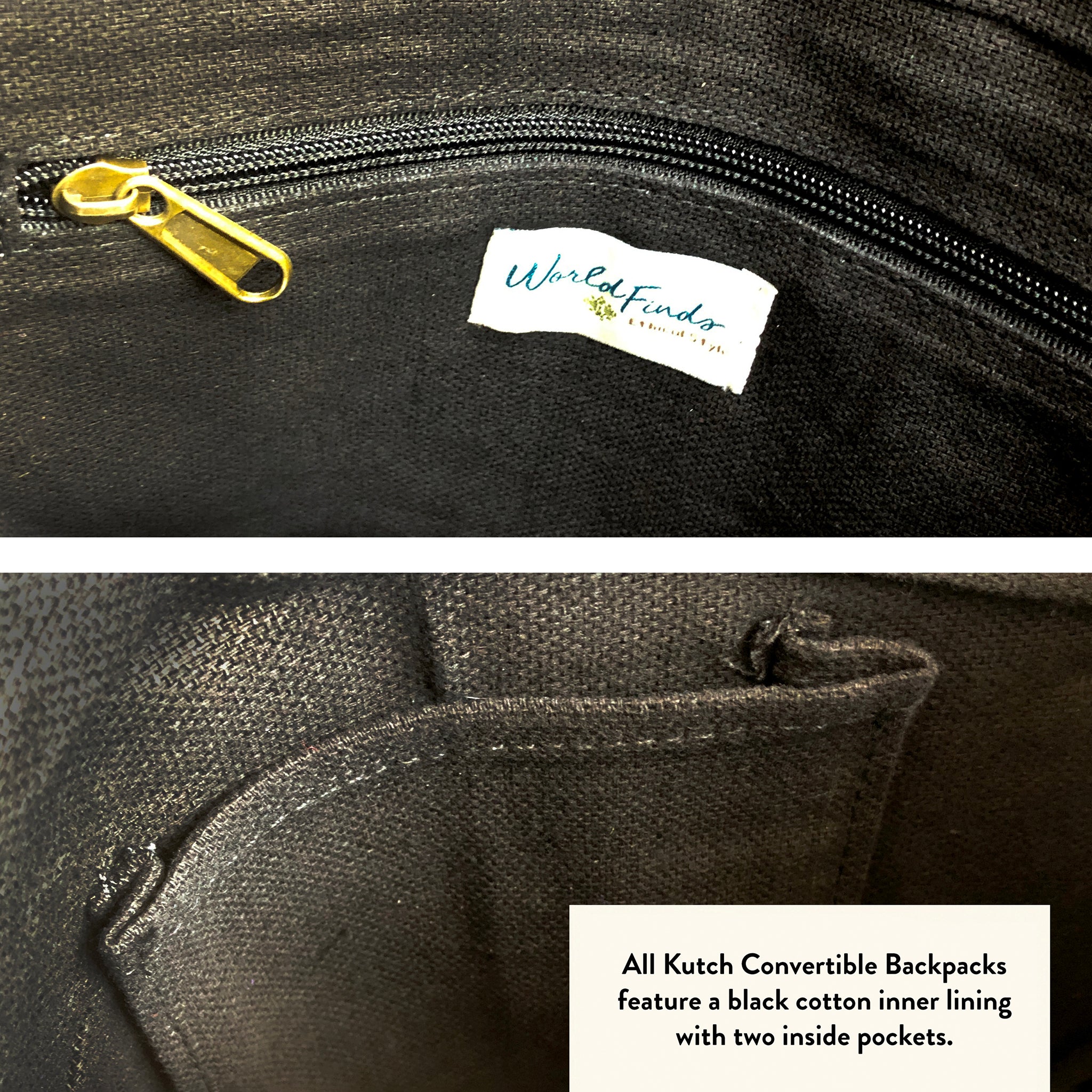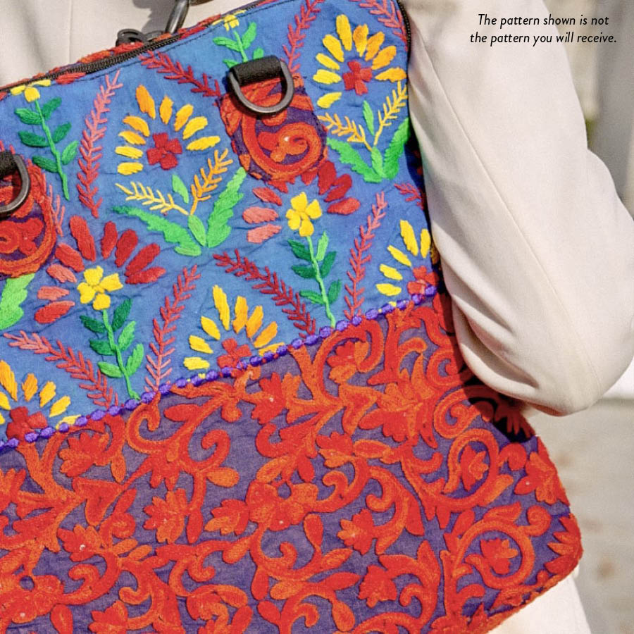 The colorful, richly textured Kutch fabric is hand-selected and sewn together, so each bag is one-of-a-kind and totally unique.